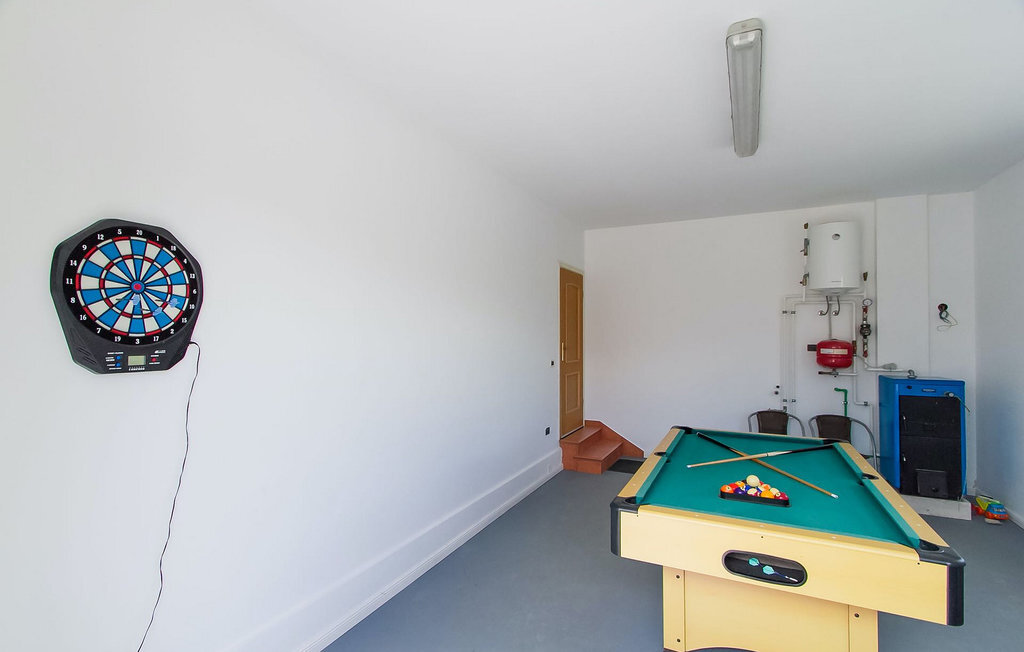 Au rez-de-chaussée, le salon vous permettra de vous détendre et de passer du temps avec vos proches. Il est directement relié à une cuisine entièrement équipée avec un coin repas. Vous y trouverez une chambre à coucher avec un lit double, ainsi qu'une salle de bain avec douche et baignoire. À cet étage, vous serez également surpris par une salle de divertissement avec billard et fléchettes, où vous pourrez vous amuser.