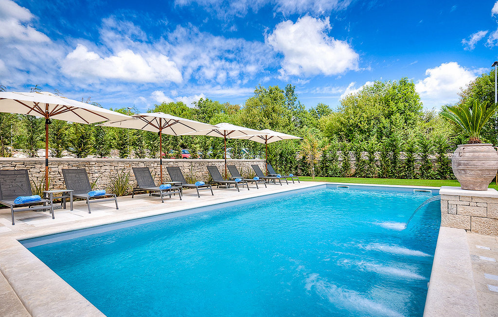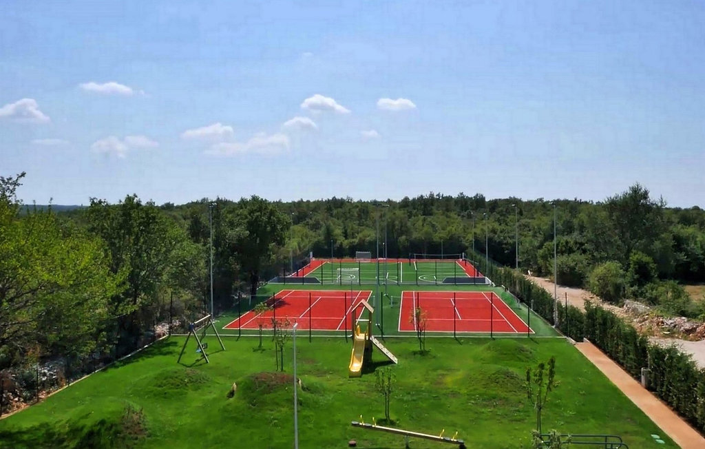 Cette villa de rêve, avec la villa Elli, la villa Nevia et la villa Elena, fait partie d'un projet de luxe avec 5600 m2 de terrain privé, qui offre aux hôtes de ces 4 villas un jardin bio avec des légumes de saison, un fitness en plein air, 2 courts de tennis, 2 terrains de pétanque, ainsi que des terrains de sport pour le handball, le football, le basket-ball et le volley-ball. Pour une véritable expérience de l'Istrie, on peut également observer sur la propriété 3 boscarins, des bovins à longues cornes blancs et gris, symbole de la région.