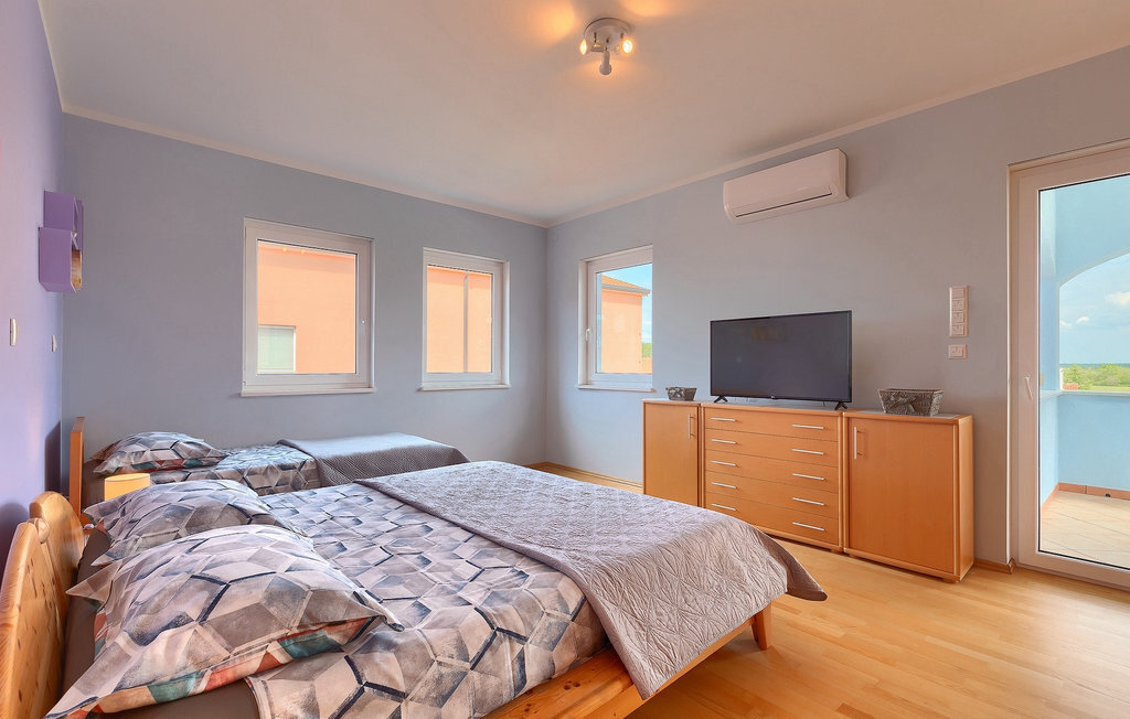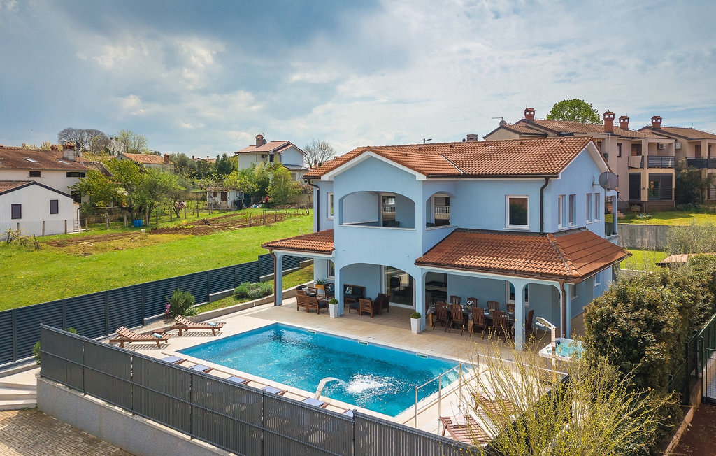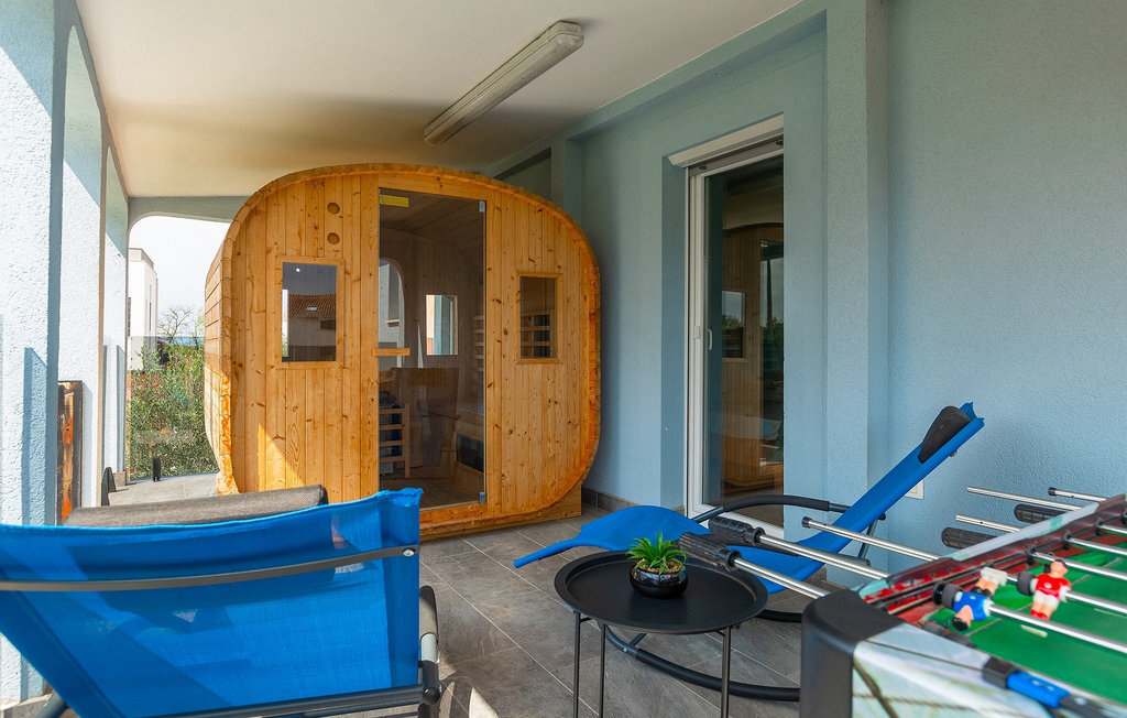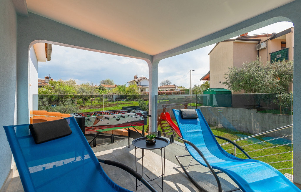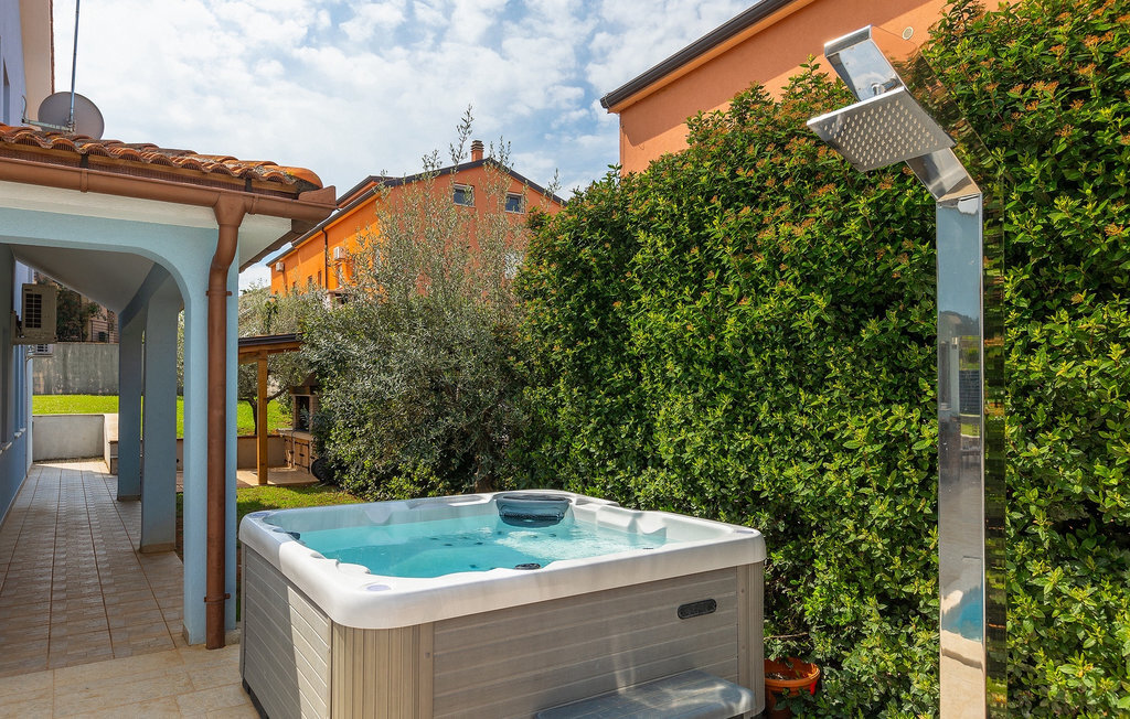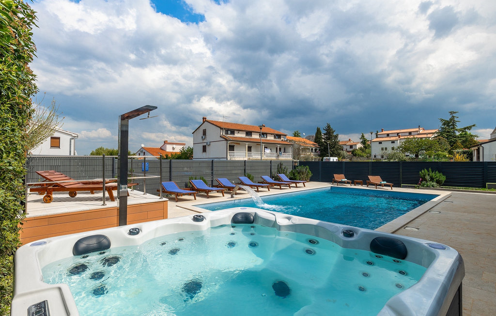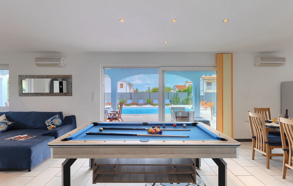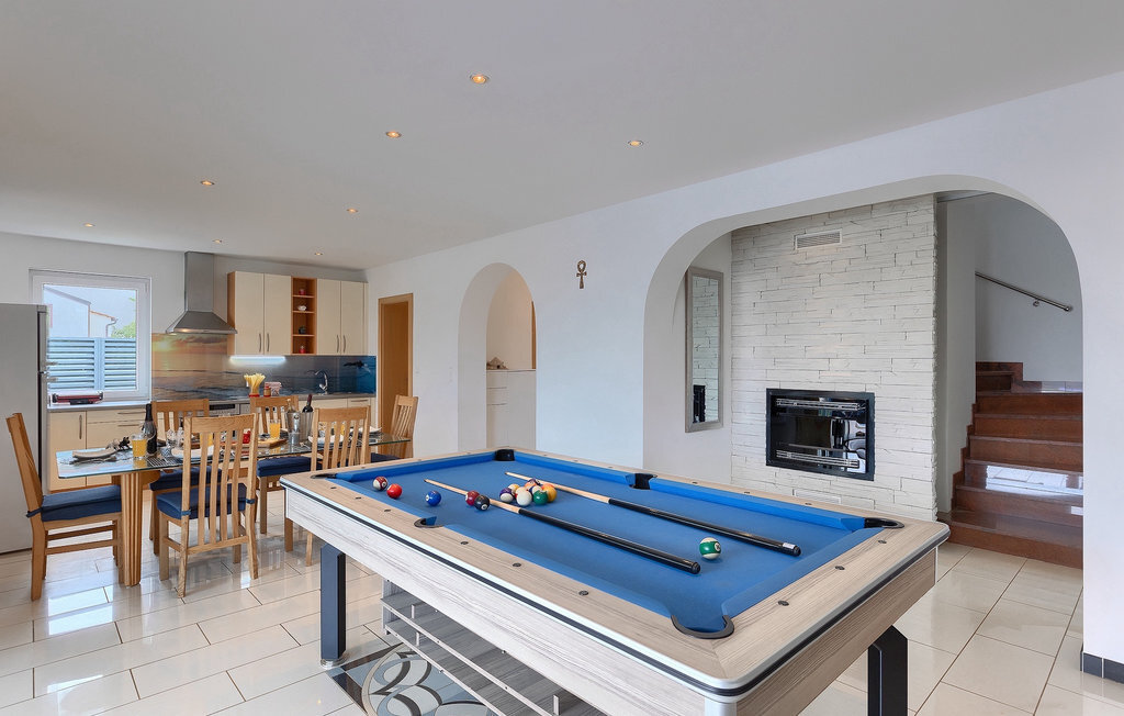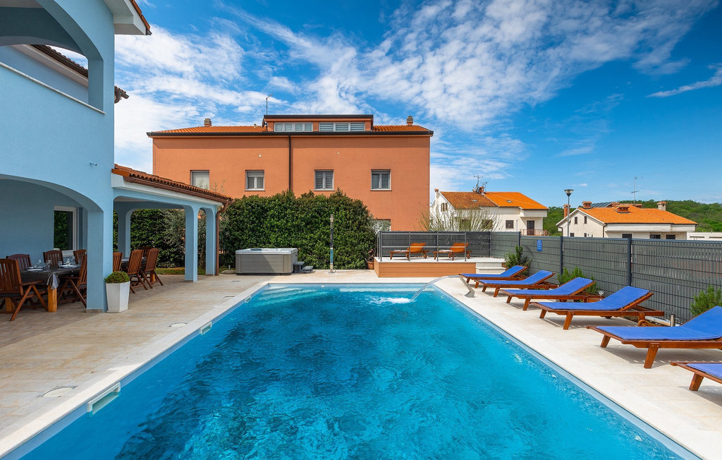Si vous choisissez la Villa Deep, vous ne serez pas déçu ! Cette belle villa dispose de 4 chambres au total et peut accueillir jusqu'à 10 personnes, ce qui la rend idéale pour des vacances relaxantes en famille. Au rez-de-chaussée se trouvent un salon spacieux avec une table de billard et une cuisine entièrement équipée avec un coin repas. Une des chambres, qui dispose d'une salle de bain privée, se trouve également au rez-de-chaussée. Les trois autres chambres se trouvent au premier étage, d'où vous avez une vue imprenable sur les environs. Le rez-de-chaussée a un accès direct à la terrasse, qui se trouve à côté de la piscine accueillante. La Villa Deep est climatisée, dispose du WiFi, d'une télévision dans chaque chambre et d'une aire de jeux pour les plus jeunes. Pour des moments de détente en famille ou entre amis, il y a un sauna finlandais et un jacuzzi, ainsi qu'un espace salon récemment rénové au bord de la piscine, où vous pourrez profiter de la chaude brise d'été tout en lisant votre livre préféré.La magnifique Villa Deep est située dans un village calme et pittoresque appelé Musalez, près de Porec - l'une des principales stations balnéaires d'Istrie. Les premières plages sont à 4 km de la villa. C'est là que se trouvent les plages de pierres et de galets, récompensées par des drapeaux bleus pour leur qualité, et la mer Adriatique turquoise. À Porec, vous trouverez toutes sortes d'activités, des restaurants, des bars et des clubs, mais la ville est surtout connue pour son riche patrimoine culturel. Porec, autrefois une colonie romaine, a atteint son apogée sous le règne de l'empereur byzantin Justinien. L'étonnante basilique d'Euphrasius, protégée par l'UNESCO, est la meilleure preuve de la gloire de cette époque. Les villes médiévales de Motovun et de Groznjan ainsi que les villes côtières de Rovinj et de Vrsar sont des lieux d'intérêt. Un peu plus loin, les îles Brijuni, l'amphithéâtre romain de Pula et Venise sont facilement accessibles depuis cette région.
