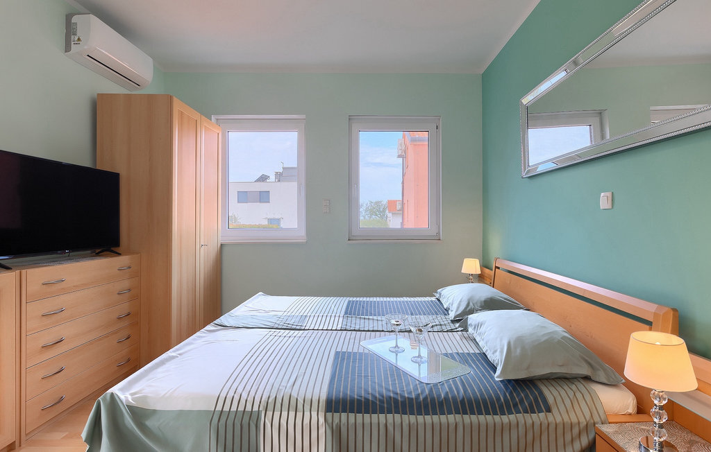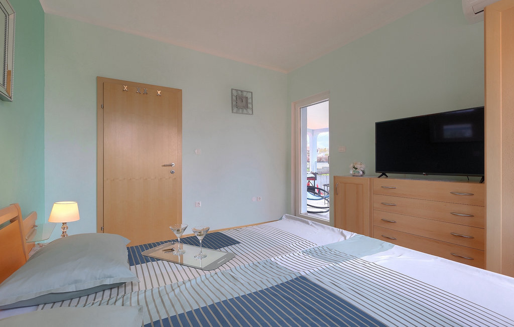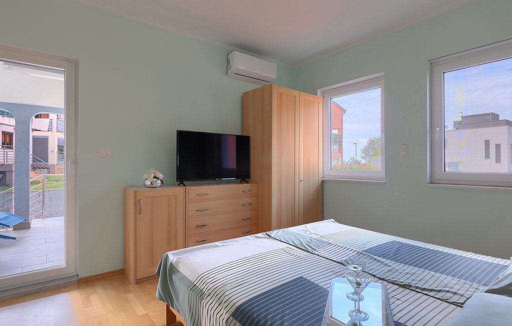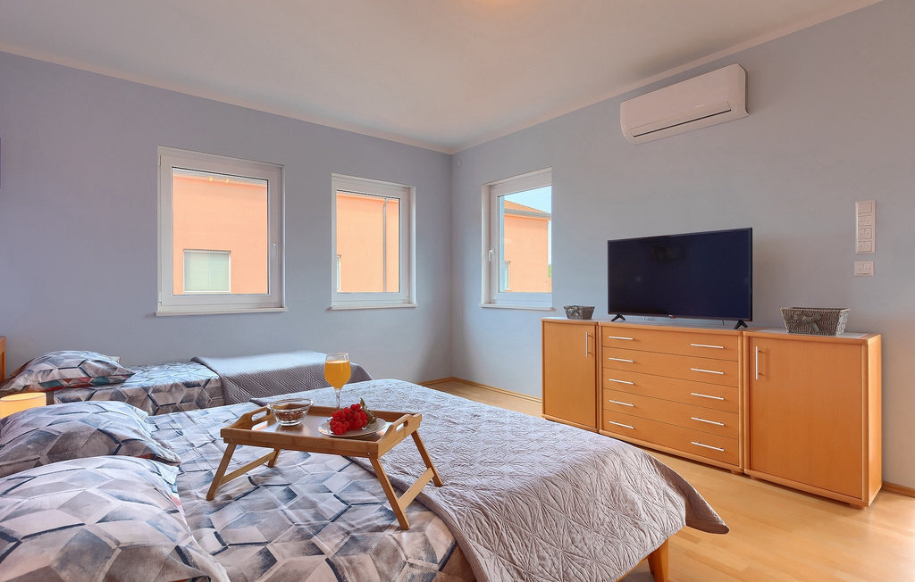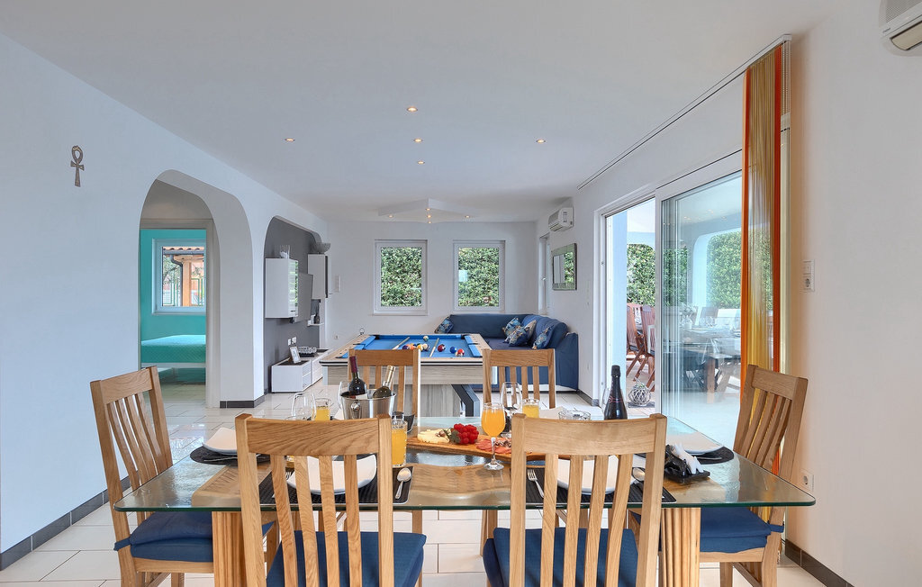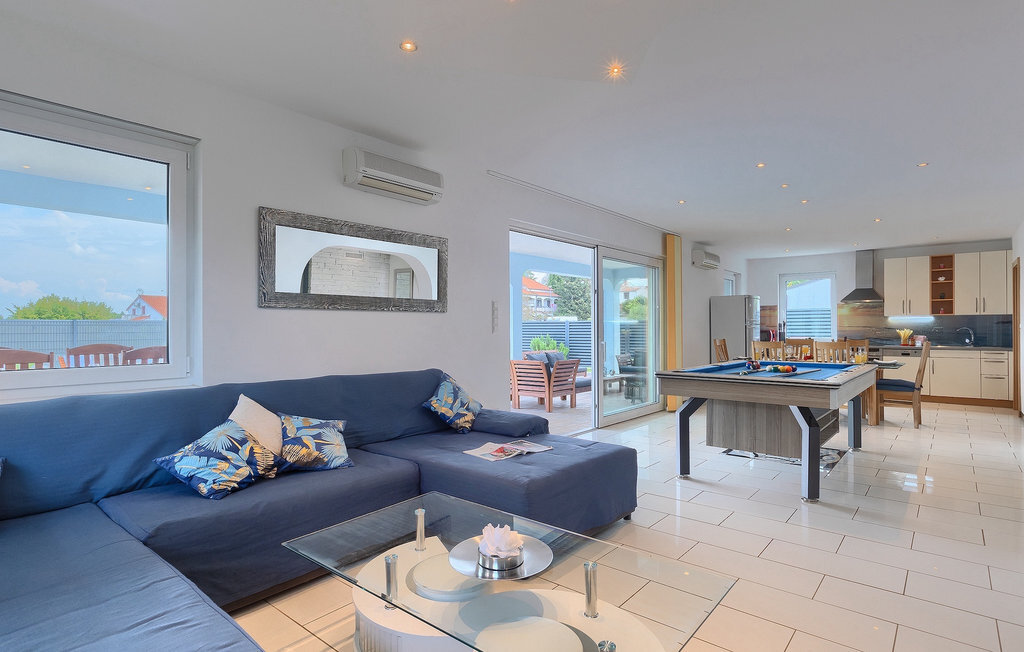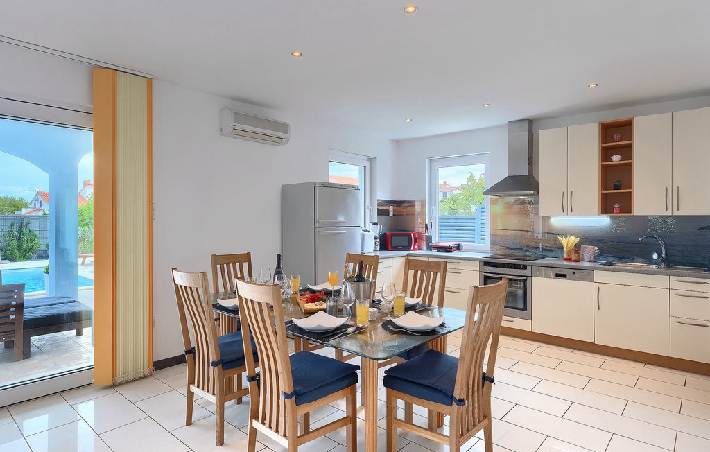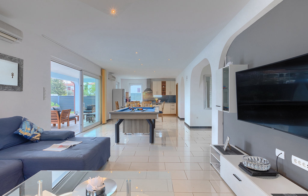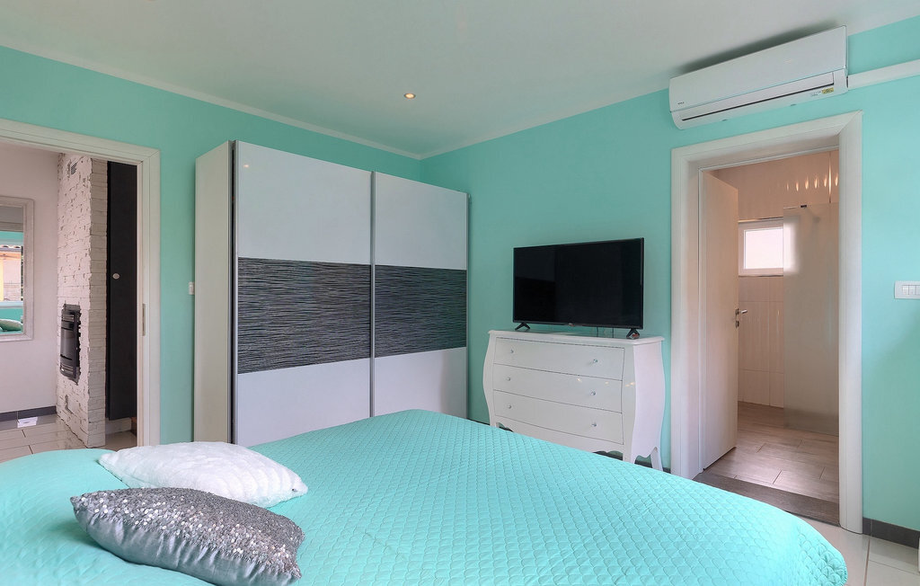 Si vous choisissez la Villa Deep, vous ne serez pas déçu ! Cette belle villa dispose de 4 chambres au total et peut accueillir jusqu'à 10 personnes, ce qui la rend idéale pour des vacances relaxantes en famille. Au rez-de-chaussée se trouvent un salon spacieux avec une table de billard et une cuisine entièrement équipée avec un coin repas. Une des chambres, qui dispose d'une salle de bain privée, se trouve également au rez-de-chaussée. Les trois autres chambres se trouvent au premier étage, d'où vous avez une vue imprenable sur les environs. Le rez-de-chaussée a un accès direct à la terrasse, qui se trouve à côté de la piscine accueillante. La Villa Deep est climatisée, dispose du WiFi, d'une télévision dans chaque chambre et d'une aire de jeux pour les plus jeunes. Pour des moments de détente en famille ou entre amis, il y a un sauna finlandais et un jacuzzi, ainsi qu'un espace salon récemment rénové au bord de la piscine, où vous pourrez profiter de la chaude brise d'été tout en lisant votre livre préféré.La magnifique Villa Deep est située dans un village calme et pittoresque appelé Musalez, près de Porec - l'une des principales stations balnéaires d'Istrie. Les premières plages sont à 4 km de la villa. C'est là que se trouvent les plages de pierres et de galets, récompensées par des drapeaux bleus pour leur qualité, et la mer Adriatique turquoise. À Porec, vous trouverez toutes sortes d'activités, des restaurants, des bars et des clubs, mais la ville est surtout connue pour son riche patrimoine culturel. Porec, autrefois une colonie romaine, a atteint son apogée sous le règne de l'empereur byzantin Justinien. L'étonnante basilique d'Euphrasius, protégée par l'UNESCO, est la meilleure preuve de la gloire de cette époque. Les villes médiévales de Motovun et de Groznjan ainsi que les villes côtières de Rovinj et de Vrsar sont des lieux d'intérêt. Un peu plus loin, les îles Brijuni, l'amphithéâtre romain de Pula et Venise sont facilement accessibles depuis cette région.