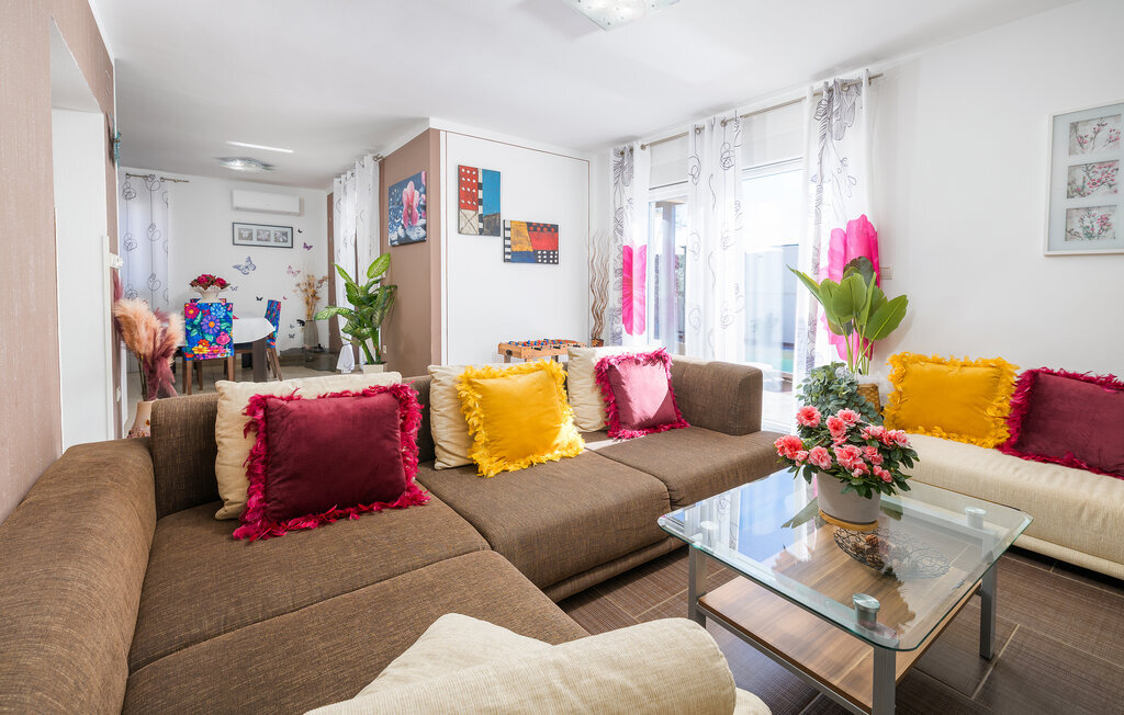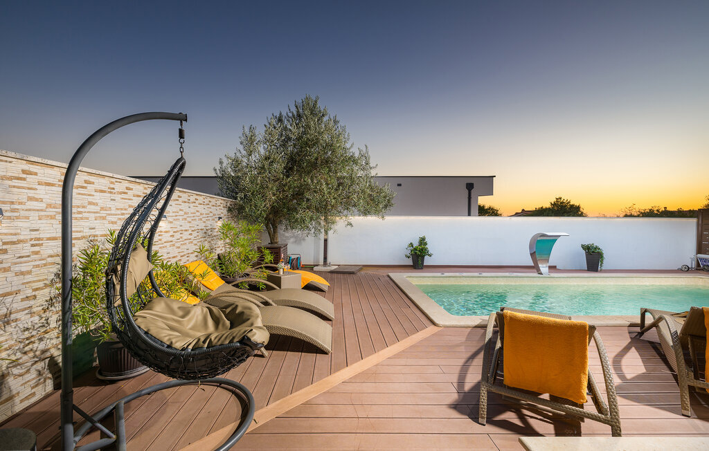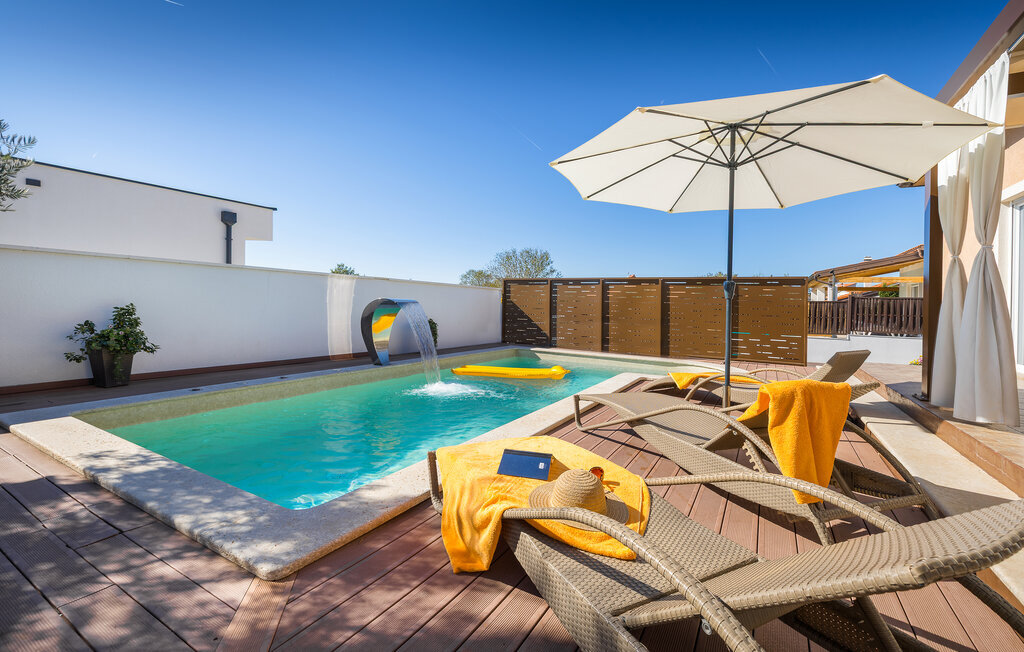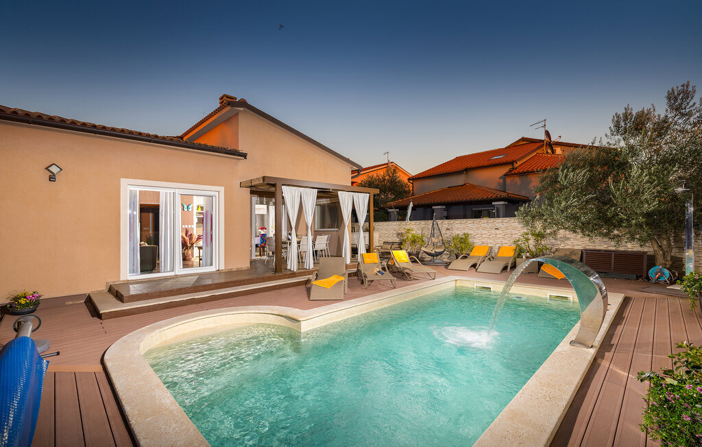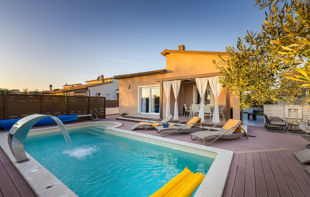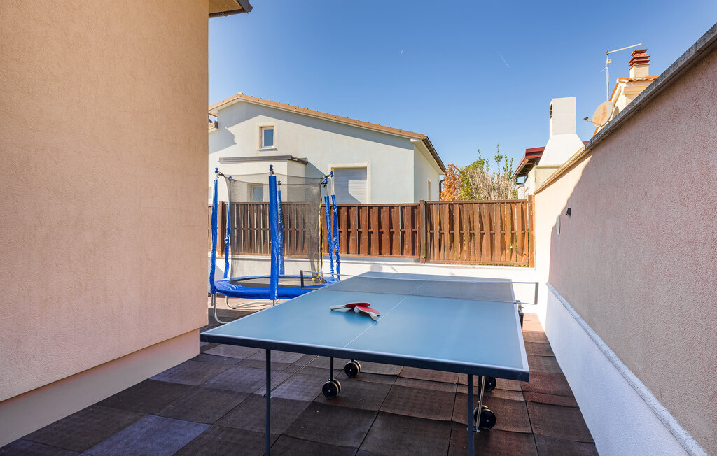 La charmante Villa Magnolia, située à la périphérie de Pula, est la résidence de vacances idéale pour les familles qui recherchent le calme et la détente sans pour autant être trop éloignées de l'action. Le point fort de la villa est la piscine rafraîchissante avec jets à contre-courant et hydromassage. Ici, toute la famille s'amusera et passera probablement les meilleurs moments de ses vacances. Détendez-vous sur l'une des chaises longues et profitez du soleil croate. Toute la famille peut se réunir autour de la table à manger sur la terrasse couverte pour savourer des repas fraîchement préparés sur le barbecue au charbon de bois lors des douces soirées d'été. Une table de baby-foot, une table de tennis de table et un trampoline pour les enfants sont également à votre disposition à l'extérieur. Si vous entrez à l'intérieur depuis la terrasse, vous découvrirez un salon ouvert. Tout est aménagé et décoré avec soin. Un salon confortable et une cuisine entièrement équipée avec une table à manger sont idéaux pour que votre famille se sente comme à la maison. 3 chambres à coucher colorées avec des lits doubles confortables peuvent accueillir jusqu'à 6 personnes. La villa entièrement climatisée dispose en outre d'une belle salle de bain avec baignoire. Mais Pula ou le parc national de Brijuni ainsi que de nombreuses plages de rêve sont également facilement accessibles. Réservez la Villa Magnolia et passez des vacances inoubliables à la pointe sud de l'Istrie.La Villa Magnolia se trouve dans la partie sud-ouest de l'Istrie, à seulement 6 km du centre touristique de Pula. Nous la recommandons aux familles avec enfants et aux hôtes qui préfèrent le calme à l'agitation des grandes villes. Outre la baignade et les bains de soleil, vous pouvez également passer votre temps à faire du vélo, car de nombreuses pistes cyclables istriennes passent par Sisan ou à proximité.