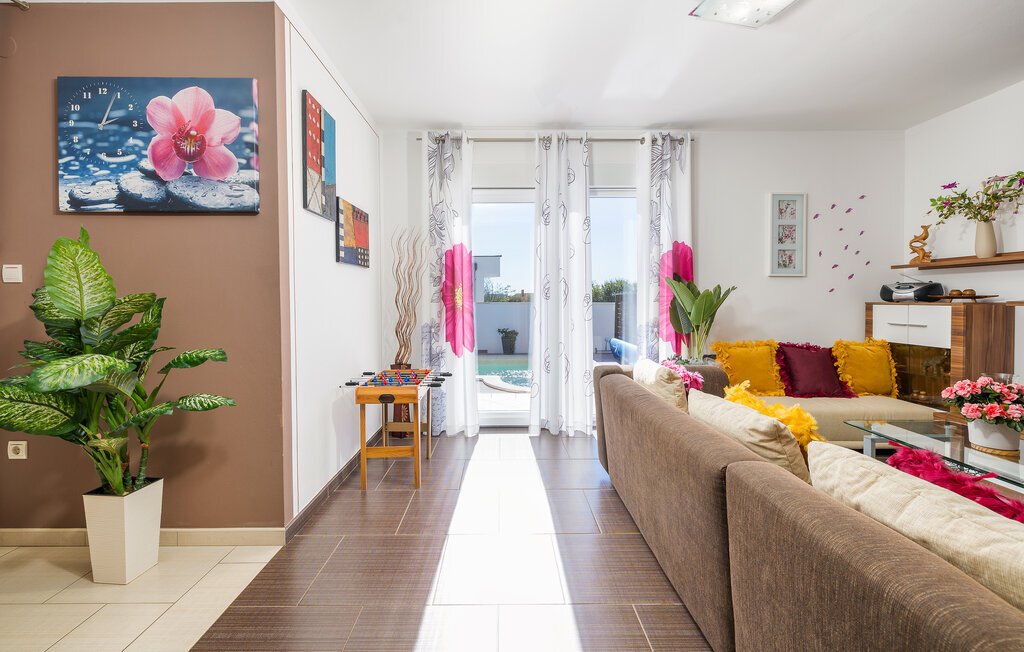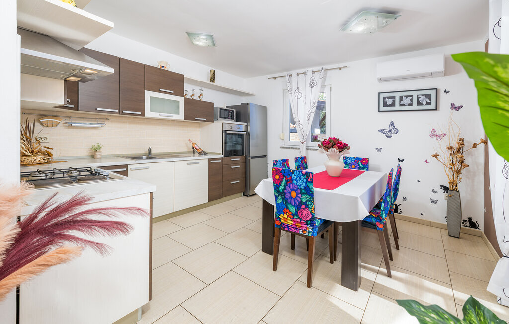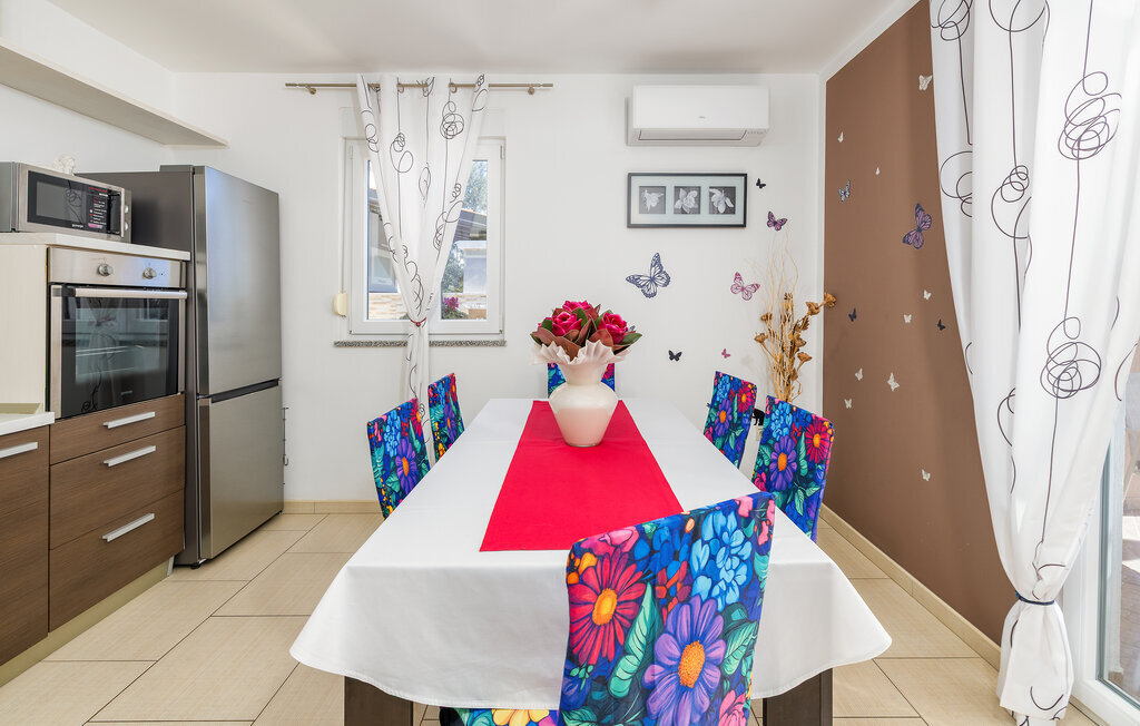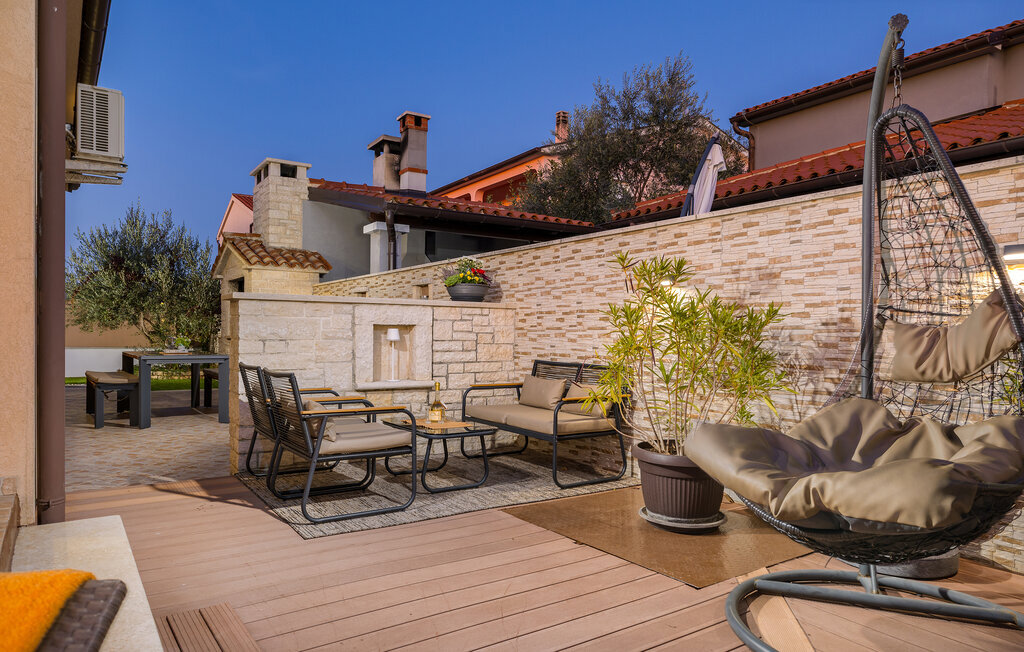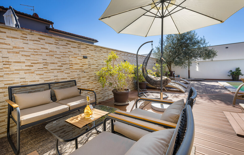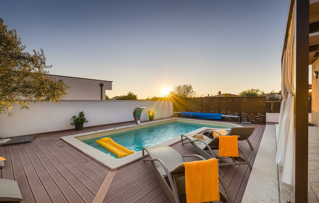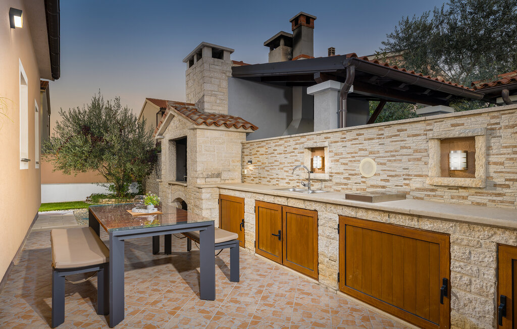 La charmante Villa Magnolia, située à la périphérie de Pula, est la résidence de vacances idéale pour les familles qui recherchent le calme et la détente sans pour autant être trop éloignées de l'action. Le point fort de la villa est la piscine rafraîchissante avec jets à contre-courant et hydromassage. Ici, toute la famille s'amusera et passera probablement les meilleurs moments de ses vacances. Détendez-vous sur l'une des chaises longues et profitez du soleil croate. Toute la famille peut se réunir autour de la table à manger sur la terrasse couverte pour savourer des repas fraîchement préparés sur le barbecue au charbon de bois lors des douces soirées d'été. Une table de baby-foot, une table de tennis de table et un trampoline pour les enfants sont également à votre disposition à l'extérieur. Si vous entrez à l'intérieur depuis la terrasse, vous découvrirez un salon ouvert. Tout est aménagé et décoré avec soin. Un salon confortable et une cuisine entièrement équipée avec une table à manger sont idéaux pour que votre famille se sente comme à la maison. 3 chambres à coucher colorées avec des lits doubles confortables peuvent accueillir jusqu'à 6 personnes. La villa entièrement climatisée dispose en outre d'une belle salle de bain avec baignoire. Mais Pula ou le parc national de Brijuni ainsi que de nombreuses plages de rêve sont également facilement accessibles. Réservez la Villa Magnolia et passez des vacances inoubliables à la pointe sud de l'Istrie.La Villa Magnolia se trouve dans la partie sud-ouest de l'Istrie, à seulement 6 km du centre touristique de Pula. Nous la recommandons aux familles avec enfants et aux hôtes qui préfèrent le calme à l'agitation des grandes villes. Outre la baignade et les bains de soleil, vous pouvez également passer votre temps à faire du vélo, car de nombreuses pistes cyclables istriennes passent par Sisan ou à proximité.