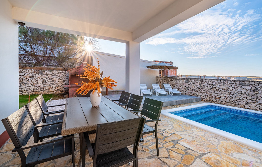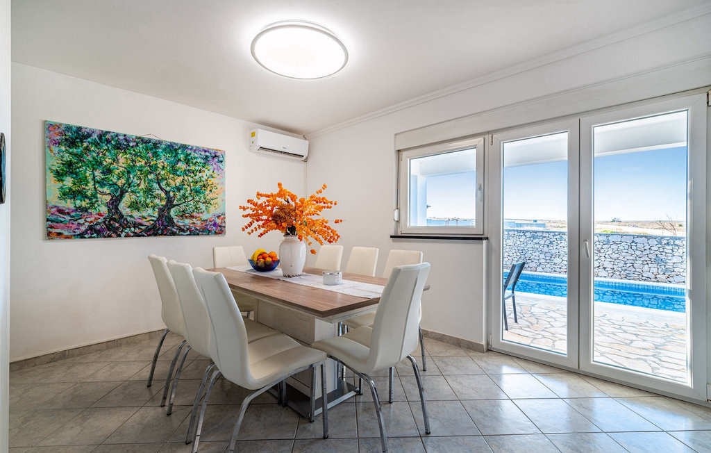 La villa Opera est le choix idéal si vous avez envie de passer des vacances reposantes avec vos proches. Elle est située dans un endroit calme et exceptionnel, à seulement 100 mètres de la mer, dans le village de Razanac. Elle peut accueillir jusqu'à 10 personnes et est donc idéale pour les familles ou les groupes d'amis. L'extérieur de la villa offre un espace piscine privé. Un barbecue est également à votre disposition pour préparer de bons petits plats que vous pourrez ensuite déguster à l'extérieur, dans la salle à manger couverte. Les enfants peuvent profiter d'une petite aire de jeux. Au rez-de-chaussée se trouve un salon, une salle à manger et un coin cuisine ouverts avec accès à la terrasse. Il y a également une chambre à coucher et une salle de bain à cet étage. Au premier étage se trouvent trois autres chambres à coucher avec accès aux deux grands balcons. C'est l'endroit idéal pour profiter de la vue fantastique sur la mer. Réservez la Villa Opera et passez des vacances de rêve en Croatie!La Villa Opera se trouve dans le petit village idyllique de Razanac en Dalmatie. Cette localité est une destination touristique très appréciée car elle offre, outre de belles plages, un paysage pittoresque des montagnes Velebit. Razanac offre une multitude de possibilités d'excursions. La célèbre ville de Zadar se trouve à une courte distance en voiture. La ville antique est riche en patrimoine historique et est une combinaison parfaite d'attractions touristiques et de vacances reposantes. N'oubliez pas de visiter le symbole de la ville - l'orgue de mer et d'écouter ses sons harmonieux. Quelques-uns des plus beaux parcs nationaux de Croatie se trouvent également à proximité. Nous vous recommandons de visiter le très particulier parc national de Plitvice. Le paysage de rêve composé d'innombrables lacs, de cascades et de forêts vaut vraiment le détour.