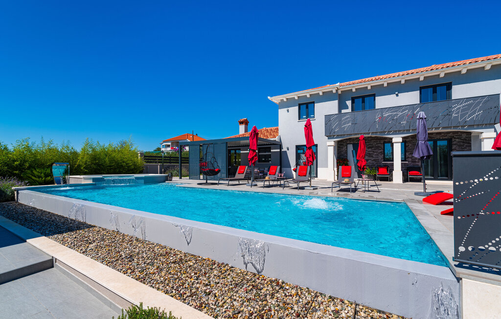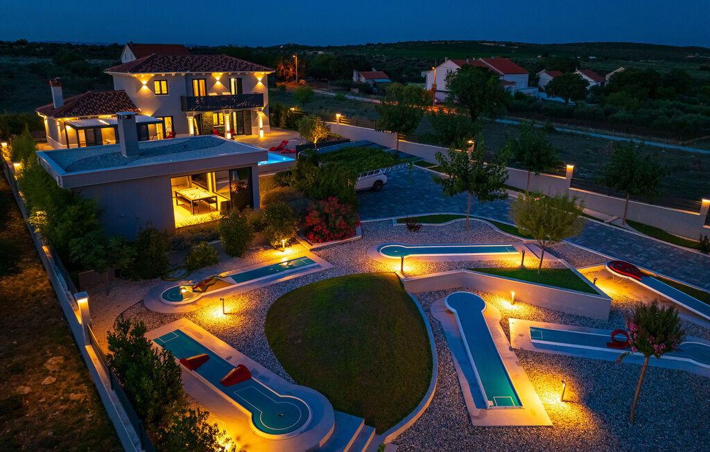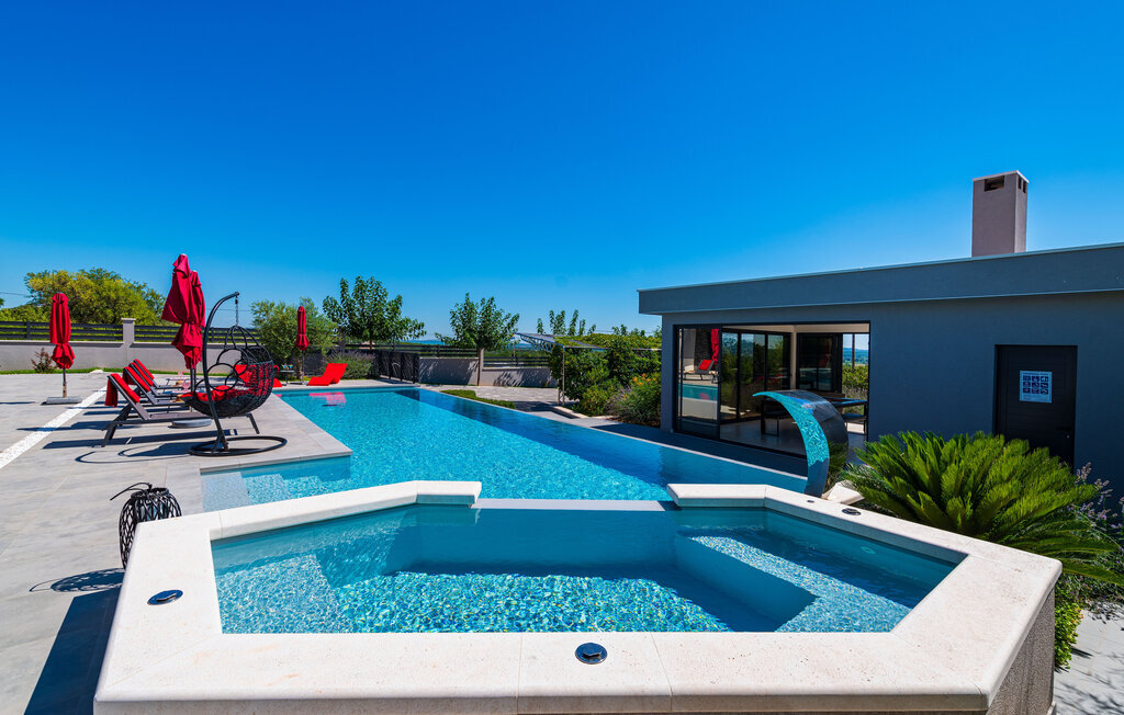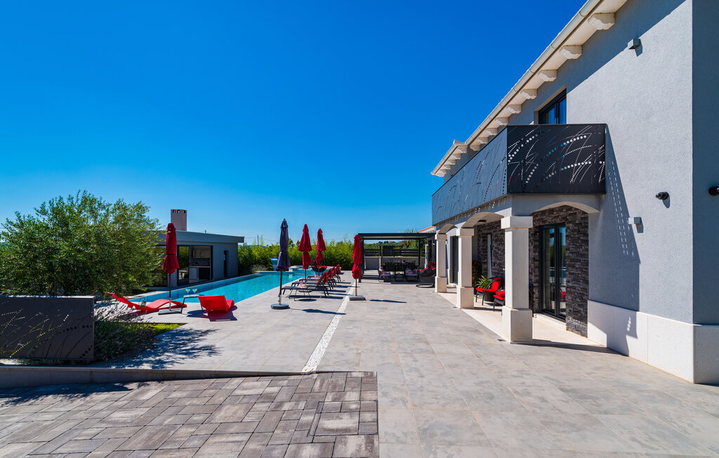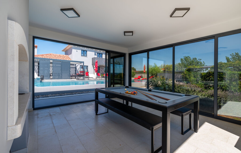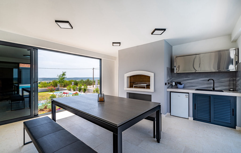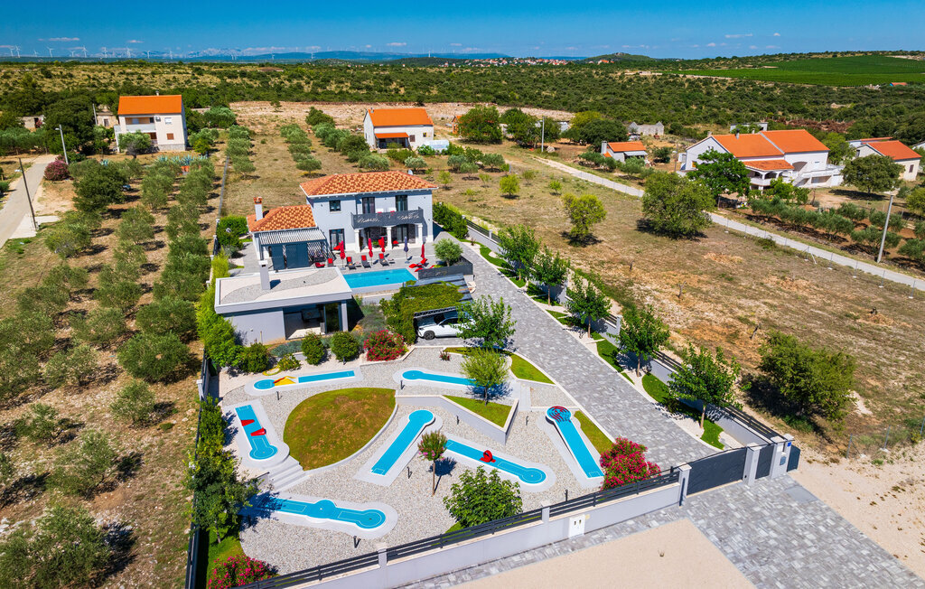Vous recherchez le calme, la détente et des vacances pleines d'aventures avec vos proches ? Alors cette propriété de rêve va vous enchanter. La villa Casa Grigia est située dans un cadre idyllique à proximité de la ville côtière de Biograd na Moru. Avec son offre de divertissement variée et son environnement pittoresque, la villa est sans aucun doute une villa de vacances unique. Vous pourrez profiter des journées d'été les plus chaudes en toute décontraction, car une magnifique piscine rafraîchissante avec hydromassage constitue le centre de la propriété. Autour de la piscine, vous trouverez des chaises longues où vous pourrez vous détendre avec une boisson rafraîchissante. Si vous aimez jouer au minigolf, un terrain de minigolf privé est à votre disposition. La propriété séparée de 40m2 avec barbecue, coin repas et table de billard est également à votre disposition pour vous réunir avec vos proches et passer des soirées inoubliables. Profitez de l'occasion pour préparer de délicieux repas autour du barbecue. En pénétrant à l'intérieur de la villa depuis l'extérieur, vous découvrirez un espace de vie ouvert, aménagé avec goût, avec une table à manger et une cuisine entièrement équipée. La villa peut accueillir 6 personnes au total avec 3 chambres à coucher confortables. L'une des chambres à coucher se trouve au rez-de-chaussée, 3 autres chambres à coucher se trouvent au premier étage. Chacune des chambres à coucher chic dispose de sa propre salle de bain moderne, de la climatisation et d'une télévision. Vous êtes impatients de passer vos vacances à la Villa Casa Grigia!La Villa Casa Grigia est située dans un petit village du nom de Tinj, près de la ville côtière de Biograd na Moru. La "ville blanche au bord de la mer" offre des plages et des baies de rêve, de nombreux restaurants et tavernes où vous pourrez déguster l'excellente cuisine dalmate, ainsi que le Fun Park Mirnovec, si vous souhaitez des activités supplémentaires pour votre famille. L'emplacement de la villa est un excellent point de départ pour des excursions. Les villes côtières de Zadar et Sibenik, toutes deux à une courte distance en voiture, vous invitent à une excursion d'une journée avec leur riche histoire et leurs nombreuses curiosités. Zadar est une ville historique et offre une combinaison de visites touristiques, de gastronomie et de plages. La vieille ville, qui se trouve sur une presqu'île séparée de la nouvelle ville, est très particulière. Les "orgues de mer" et la place "Salutation au soleil" sont bien connues. qui se trouvent directement sur la promenade. Réservez la villa Casa Grigia et laissez-vous séduire par la Dalmatie !
