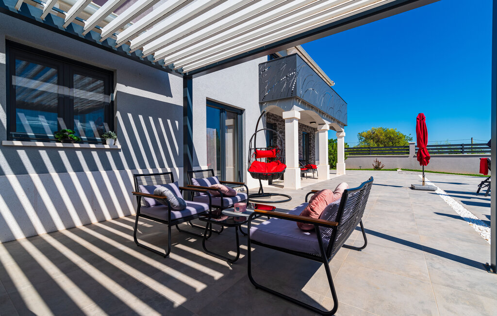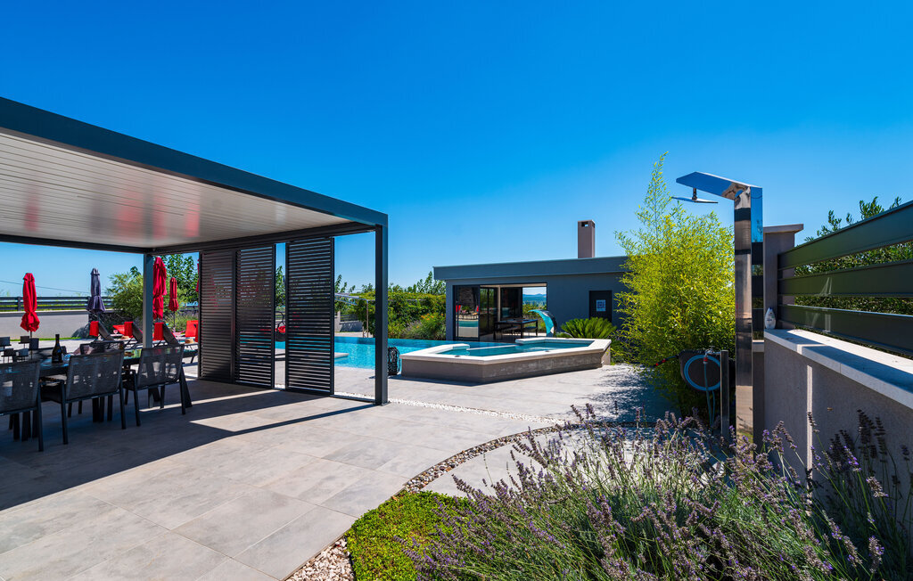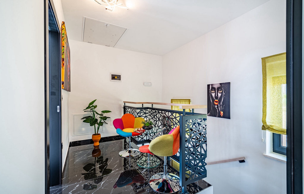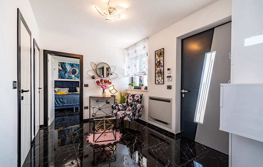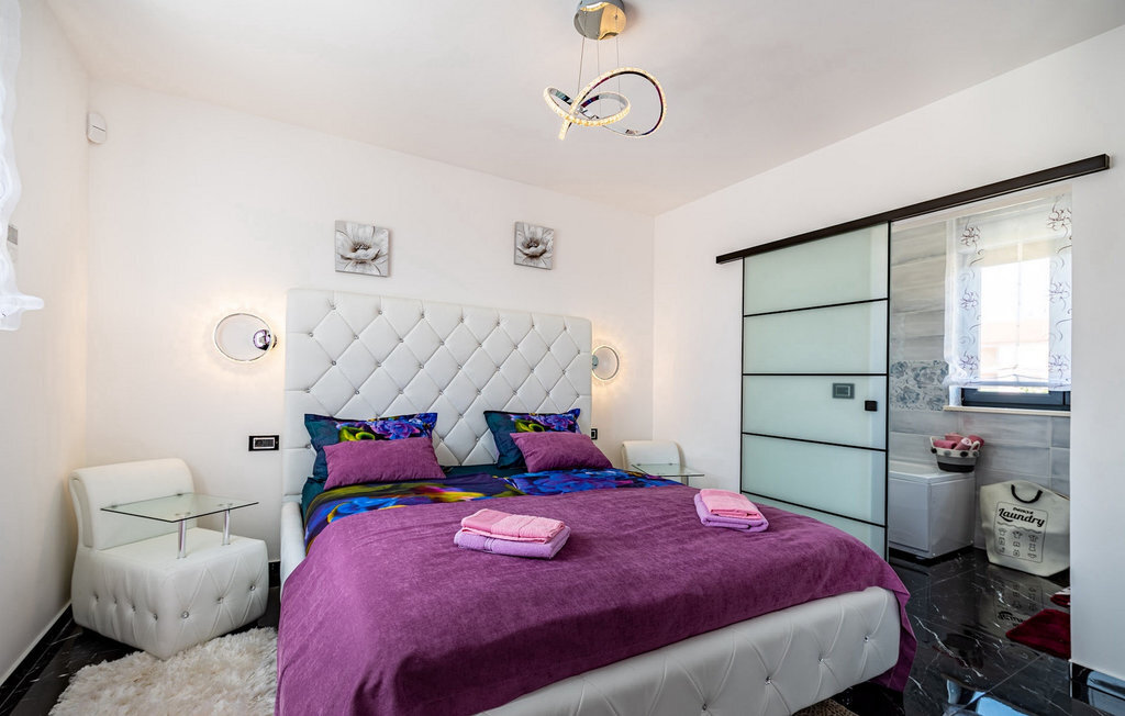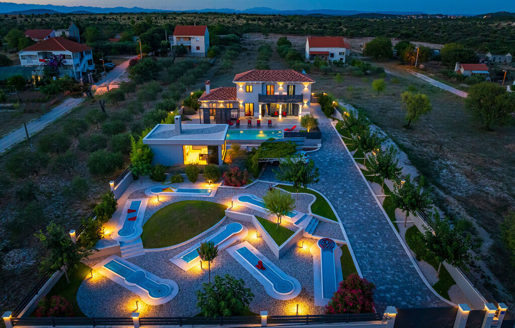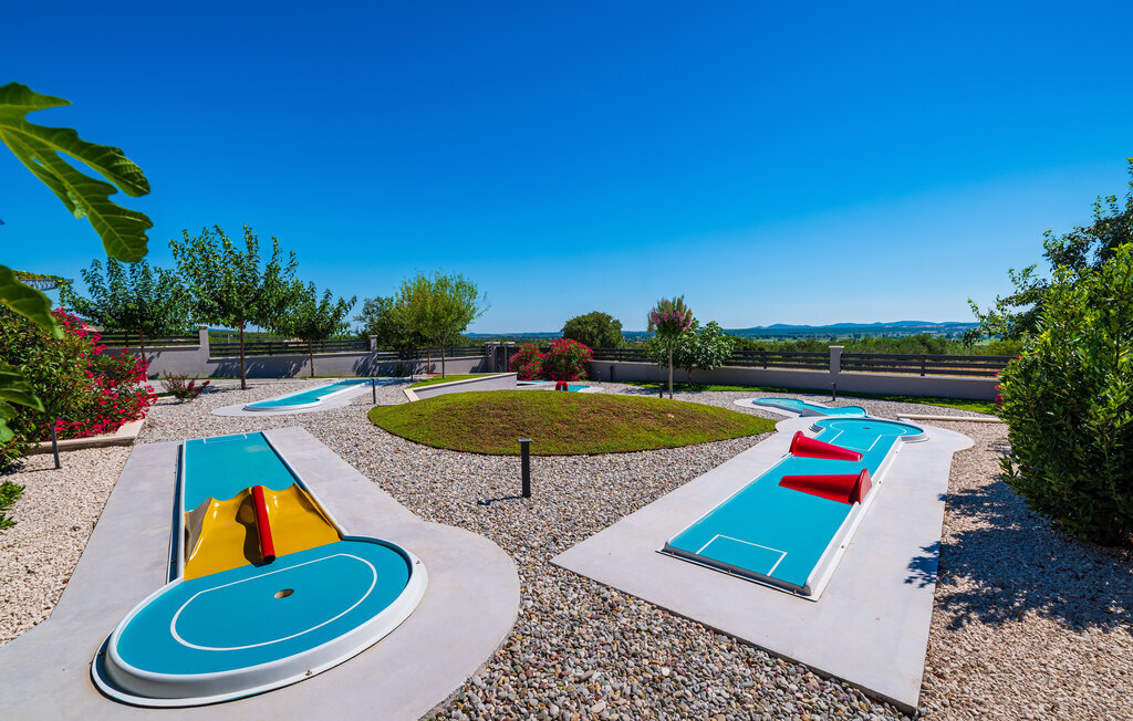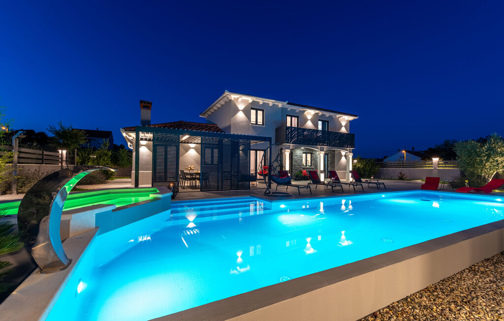 Vous recherchez le calme, la détente et des vacances pleines d'aventures avec vos proches ? Alors cette propriété de rêve va vous enchanter. La villa Casa Grigia est située dans un cadre idyllique à proximité de la ville côtière de Biograd na Moru. Avec son offre de divertissement variée et son environnement pittoresque, la villa est sans aucun doute une villa de vacances unique. Vous pourrez profiter des journées d'été les plus chaudes en toute décontraction, car une magnifique piscine rafraîchissante avec hydromassage constitue le centre de la propriété. Autour de la piscine, vous trouverez des chaises longues où vous pourrez vous détendre avec une boisson rafraîchissante. Si vous aimez jouer au minigolf, un terrain de minigolf privé est à votre disposition. La propriété séparée de 40m2 avec barbecue, coin repas et table de billard est également à votre disposition pour vous réunir avec vos proches et passer des soirées inoubliables. Profitez de l'occasion pour préparer de délicieux repas autour du barbecue. En pénétrant à l'intérieur de la villa depuis l'extérieur, vous découvrirez un espace de vie ouvert, aménagé avec goût, avec une table à manger et une cuisine entièrement équipée. La villa peut accueillir 6 personnes au total avec 3 chambres à coucher confortables. L'une des chambres à coucher se trouve au rez-de-chaussée, 3 autres chambres à coucher se trouvent au premier étage. Chacune des chambres à coucher chic dispose de sa propre salle de bain moderne, de la climatisation et d'une télévision. Vous êtes impatients de passer vos vacances à la Villa Casa Grigia!La Villa Casa Grigia est située dans un petit village du nom de Tinj, près de la ville côtière de Biograd na Moru. La "ville blanche au bord de la mer" offre des plages et des baies de rêve, de nombreux restaurants et tavernes où vous pourrez déguster l'excellente cuisine dalmate, ainsi que le Fun Park Mirnovec, si vous souhaitez des activités supplémentaires pour votre famille. L'emplacement de la villa est un excellent point de départ pour des excursions. Les villes côtières de Zadar et Sibenik, toutes deux à une courte distance en voiture, vous invitent à une excursion d'une journée avec leur riche histoire et leurs nombreuses curiosités. Zadar est une ville historique et offre une combinaison de visites touristiques, de gastronomie et de plages. La vieille ville, qui se trouve sur une presqu'île séparée de la nouvelle ville, est très particulière. Les "orgues de mer" et la place "Salutation au soleil" sont bien connues. qui se trouvent directement sur la promenade. Réservez la villa Casa Grigia et laissez-vous séduire par la Dalmatie !