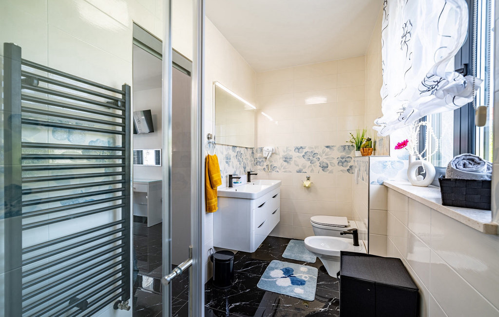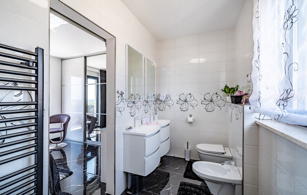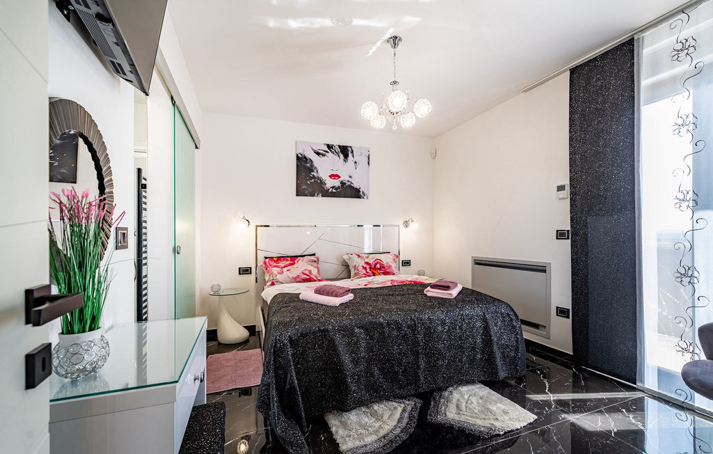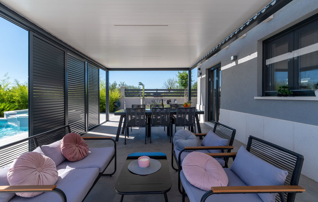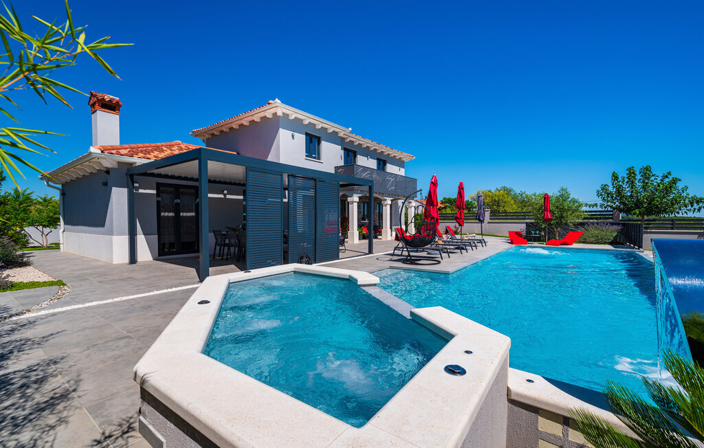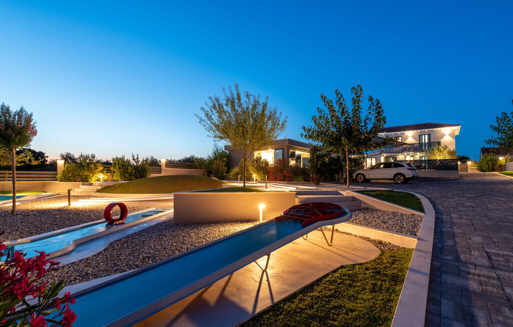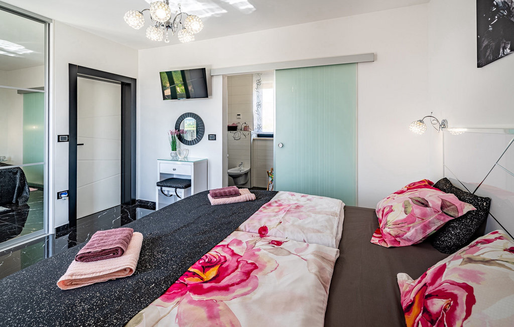 Vous recherchez le calme, la détente et des vacances pleines d'aventures avec vos proches ? Alors cette propriété de rêve va vous enchanter. La villa Casa Grigia est située dans un cadre idyllique à proximité de la ville côtière de Biograd na Moru. Avec son offre de divertissement variée et son environnement pittoresque, la villa est sans aucun doute une villa de vacances unique. Vous pourrez profiter des journées d'été les plus chaudes en toute décontraction, car une magnifique piscine rafraîchissante avec hydromassage constitue le centre de la propriété. Autour de la piscine, vous trouverez des chaises longues où vous pourrez vous détendre avec une boisson rafraîchissante. Si vous aimez jouer au minigolf, un terrain de minigolf privé est à votre disposition. La propriété séparée de 40m2 avec barbecue, coin repas et table de billard est également à votre disposition pour vous réunir avec vos proches et passer des soirées inoubliables. Profitez de l'occasion pour préparer de délicieux repas autour du barbecue. En pénétrant à l'intérieur de la villa depuis l'extérieur, vous découvrirez un espace de vie ouvert, aménagé avec goût, avec une table à manger et une cuisine entièrement équipée. La villa peut accueillir 6 personnes au total avec 3 chambres à coucher confortables. L'une des chambres à coucher se trouve au rez-de-chaussée, 3 autres chambres à coucher se trouvent au premier étage. Chacune des chambres à coucher chic dispose de sa propre salle de bain moderne, de la climatisation et d'une télévision. Vous êtes impatients de passer vos vacances à la Villa Casa Grigia!La Villa Casa Grigia est située dans un petit village du nom de Tinj, près de la ville côtière de Biograd na Moru. La "ville blanche au bord de la mer" offre des plages et des baies de rêve, de nombreux restaurants et tavernes où vous pourrez déguster l'excellente cuisine dalmate, ainsi que le Fun Park Mirnovec, si vous souhaitez des activités supplémentaires pour votre famille. L'emplacement de la villa est un excellent point de départ pour des excursions. Les villes côtières de Zadar et Sibenik, toutes deux à une courte distance en voiture, vous invitent à une excursion d'une journée avec leur riche histoire et leurs nombreuses curiosités. Zadar est une ville historique et offre une combinaison de visites touristiques, de gastronomie et de plages. La vieille ville, qui se trouve sur une presqu'île séparée de la nouvelle ville, est très particulière. Les "orgues de mer" et la place "Salutation au soleil" sont bien connues. qui se trouvent directement sur la promenade. Réservez la villa Casa Grigia et laissez-vous séduire par la Dalmatie !