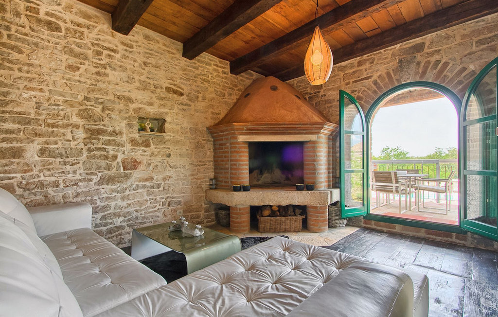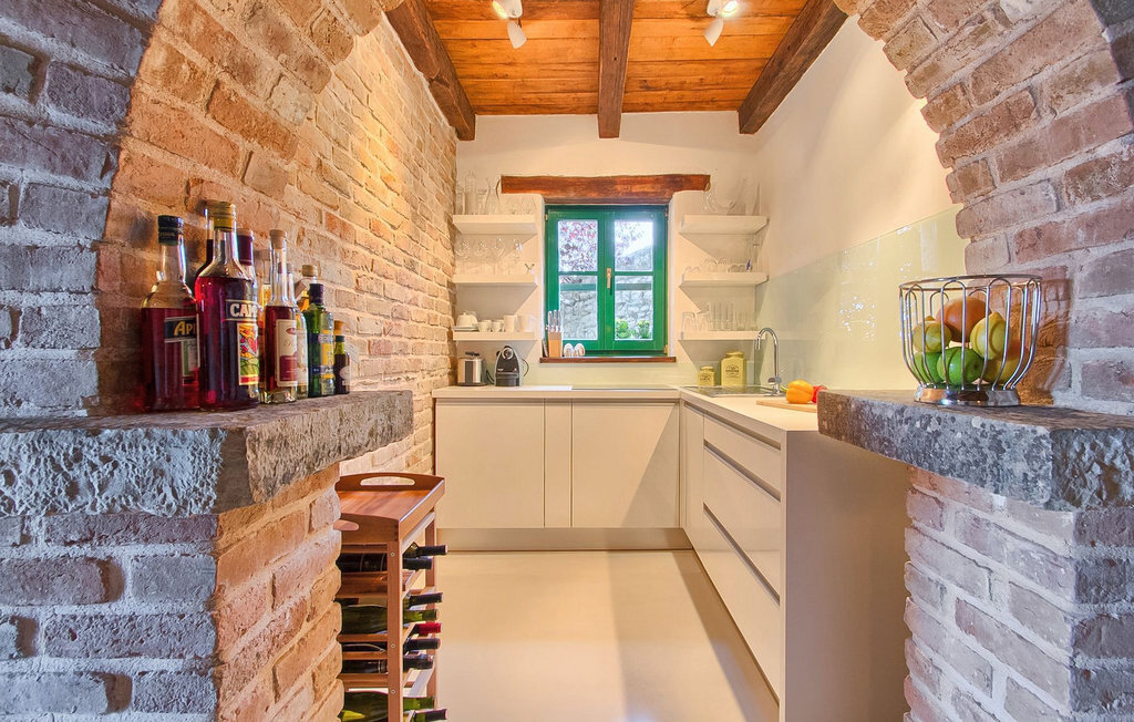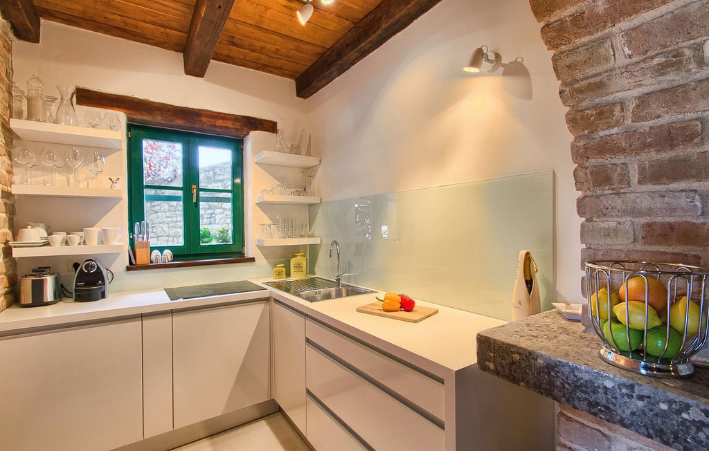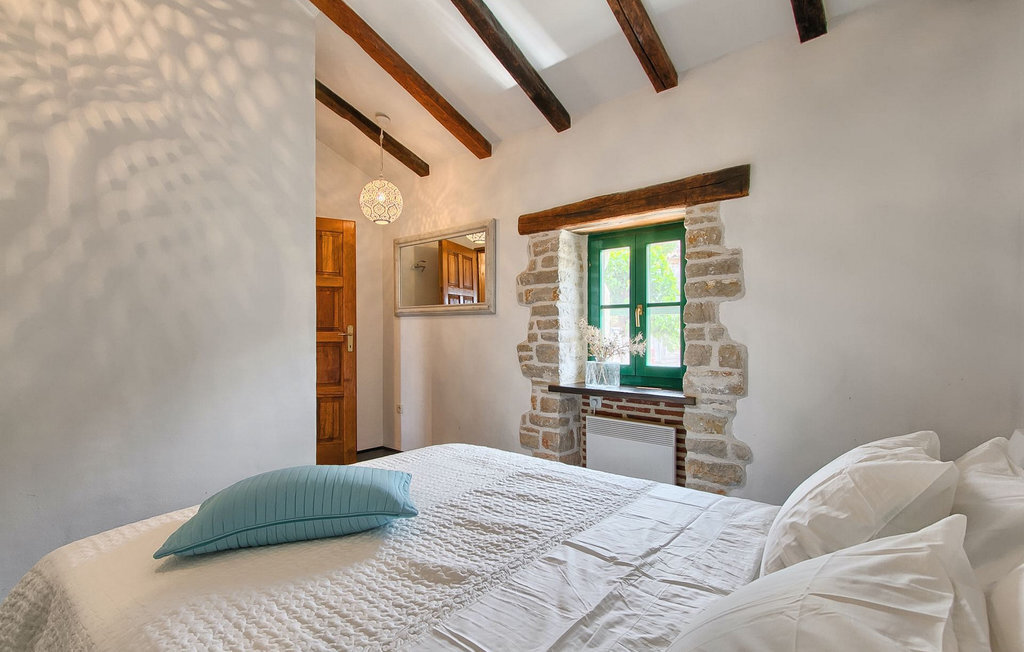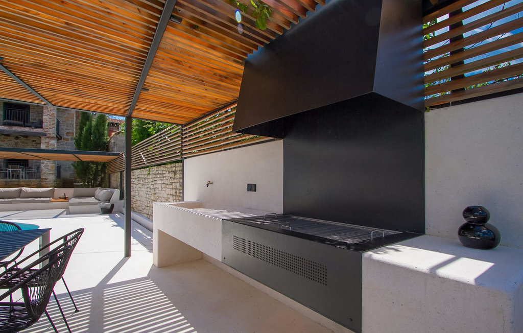 Au rez-de-chaussée, vous trouverez une cuisine entièrement équipée, une salle à manger et un salon avec cheminée. Au dernier étage se trouvent deux chambres à coucher avec lit double et une salle de bain. À l'extérieur, il y a une piscine et une douche extérieure, le tout entouré d'un beau jardin. Si vous souhaitez passer toute la journée à l'extérieur, vous avez à votre disposition une cuisine d'été supplémentaire avec barbecue et terrasse. Le grand canapé sur la terrasse est un endroit agréable et confortable où vous pouvez profiter du climat doux de l'Istrie tout en sirotant un cocktail rafraîchissant. Si vous n'avez pas envie d'aller faire les courses, il est bon de savoir qu'un magasin mobile (camionnette blanche avec des produits alimentaires) vient régulièrement au village. Il est possible d'y commander quelques aliments qui peuvent être livrés dès le lendemain.