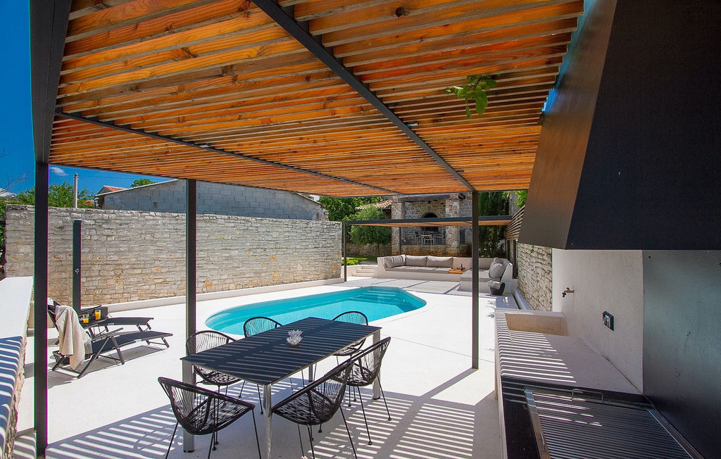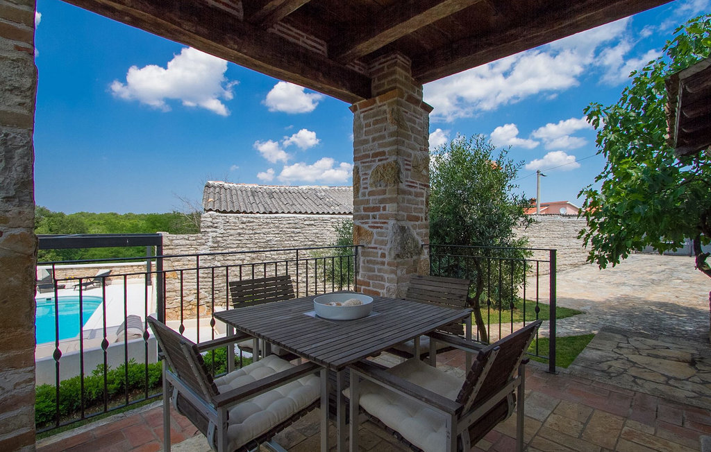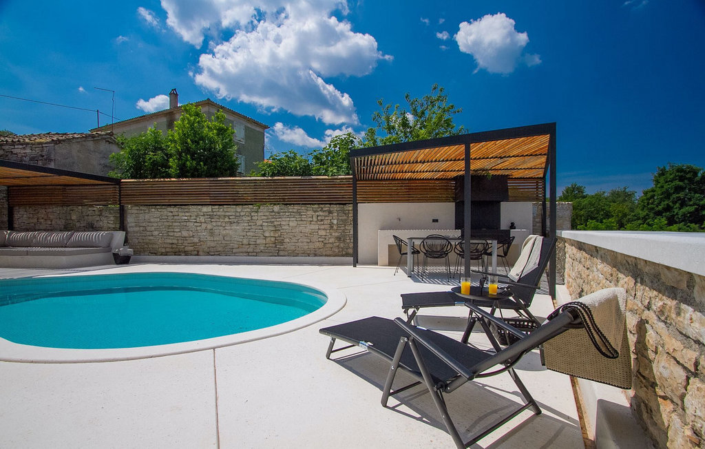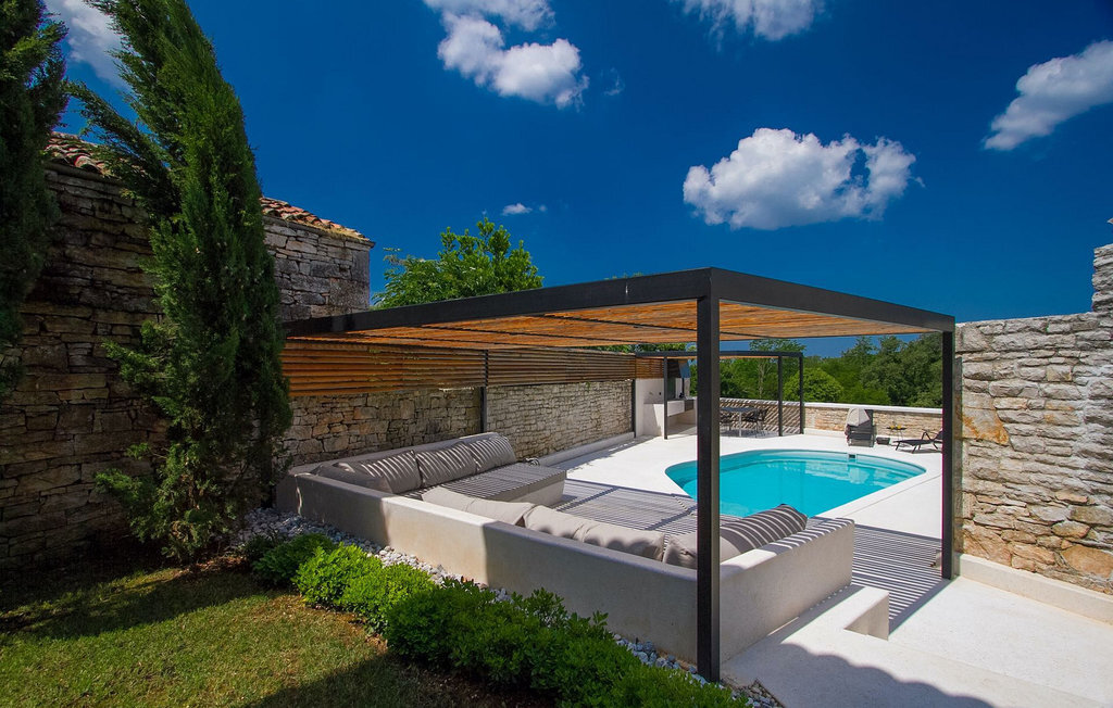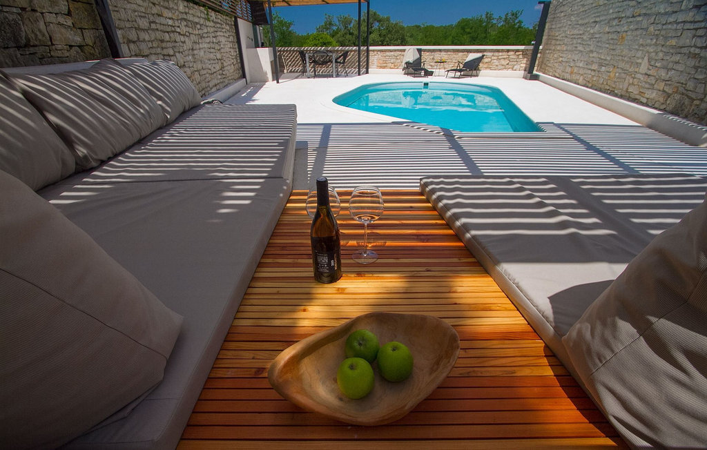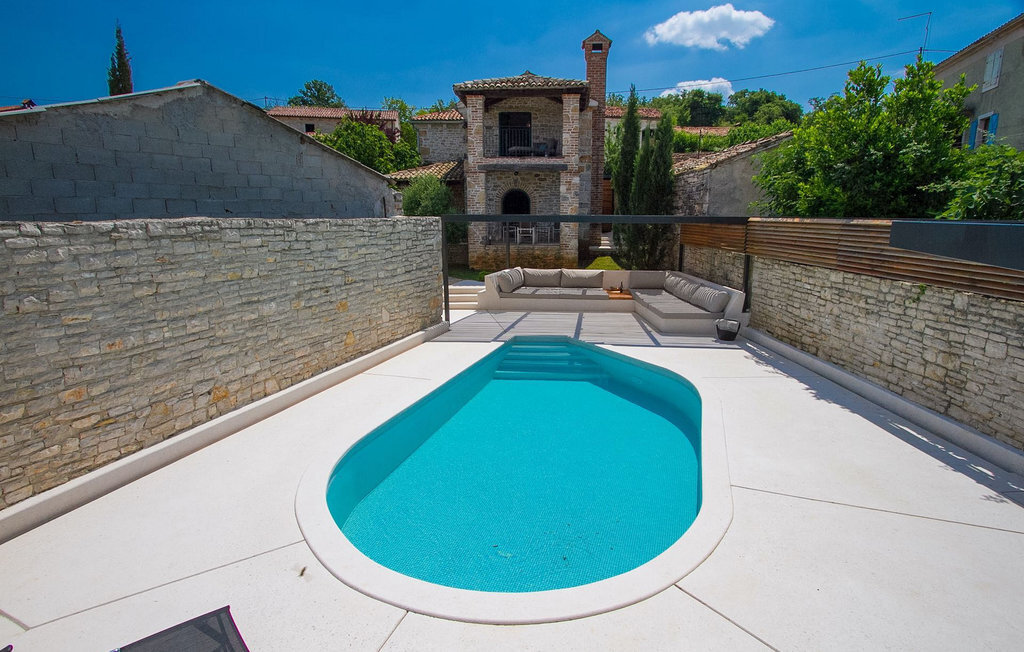 Au rez-de-chaussée, vous trouverez une cuisine entièrement équipée, une salle à manger et un salon avec cheminée. Au dernier étage se trouvent deux chambres à coucher avec lit double et une salle de bain. À l'extérieur, il y a une piscine et une douche extérieure, le tout entouré d'un beau jardin. Si vous souhaitez passer toute la journée à l'extérieur, vous avez à votre disposition une cuisine d'été supplémentaire avec barbecue et terrasse. Le grand canapé sur la terrasse est un endroit agréable et confortable où vous pouvez profiter du climat doux de l'Istrie tout en sirotant un cocktail rafraîchissant. Si vous n'avez pas envie d'aller faire les courses, il est bon de savoir qu'un magasin mobile (camionnette blanche avec des produits alimentaires) vient régulièrement au village. Il est possible d'y commander quelques aliments qui peuvent être livrés dès le lendemain.