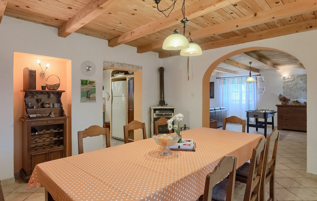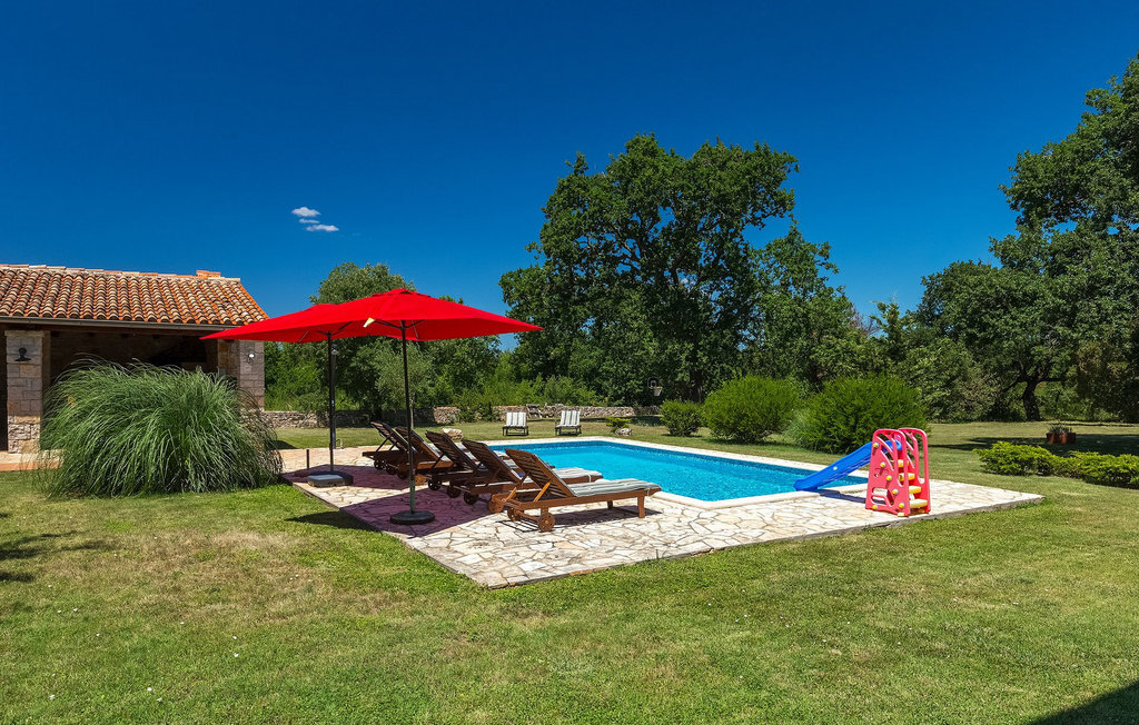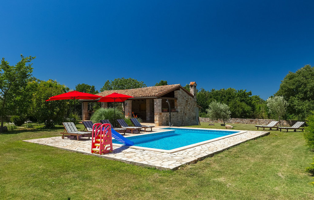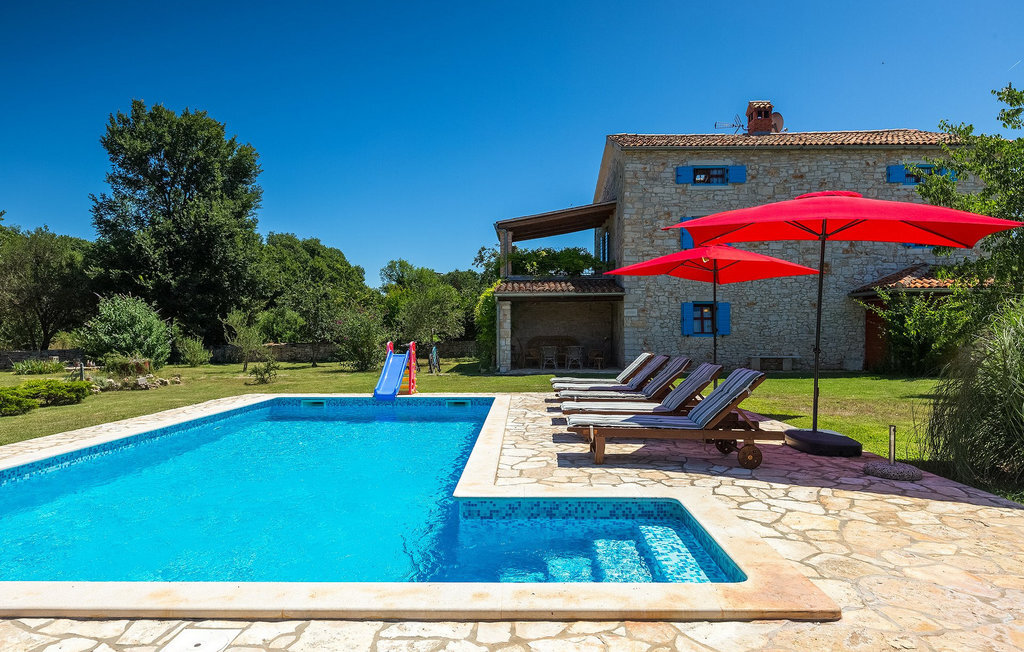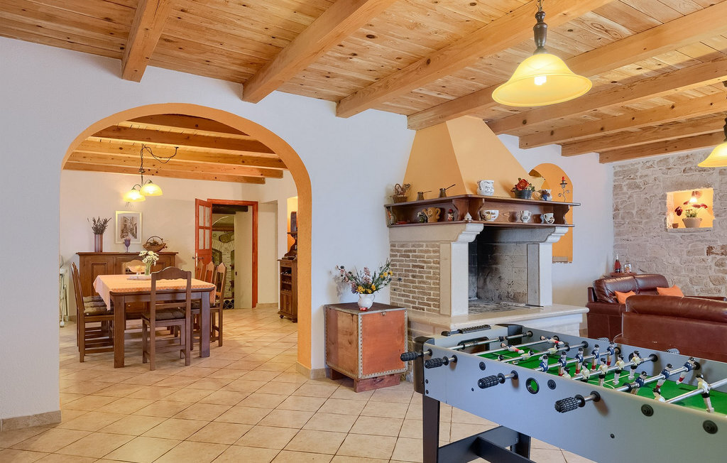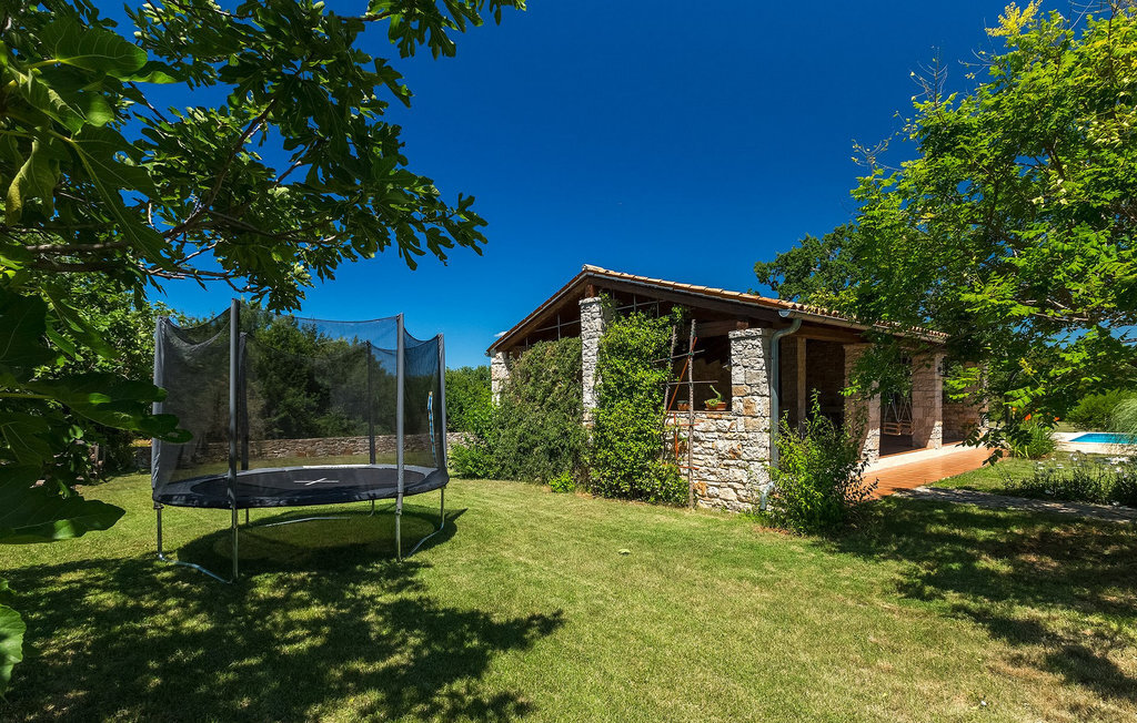 Cette ancienne villa rénovée avec une grande piscine située dans une immense cour intérieure verdoyante est l'endroit idéal pour des vacances pleines de calme et de détente dont vous rêvez. La villa Negrin dispose de quatre chambres et peut accueillir jusqu'à dix personnes. Au rez-de-chaussée de l'espace ouvert se trouve un grand salon avec cheminée, une cuisine entièrement équipée et une salle à manger pour dix personnes, idéale pour les repas de famille. Il y a également une cave à vin au rez-de-chaussée. Au premier étage se trouvent trois chambres à coucher, toutes trois climatisées et avec salle de bain privée, ainsi qu'une petite terrasse confortable où souffle toujours une brise agréable les chaudes journées d'été. L'ancien grenier a été transformé en une grande chambre à coucher principale, avec des briques et des poutres apparentes pour créer des effets visuels. Cette chambre est également climatisée et dispose d'une salle de bain privée. Dans la cour, il y a une grande piscine où vous pouvez nager et vous détendre lorsque les journées deviennent trop chaudes, ou vous pouvez prendre le soleil sur les chaises longues autour de la piscine avec une boisson fraîche à la main. La piscine dispose également d'un petit toboggan pour les plus petits. Si vous voyagez avec des enfants, cette villa est le choix parfait, car elle offre un jardin de 2000 m² avec une verdure luxuriante où les enfants peuvent jouer sans soucis. Pour qu'ils s'amusent en se détendant, il y a aussi un filet de badminton et de volley-ball, un trampoline, un panier de basket-ball, des balançoires et des fléchettes pour qu'ils puissent dépenser sans problème l'énergie excédentaire. Il y a aussi une grande salle à manger extérieure couverte avec un barbecue pour 12 personnes, où vous pouvez profiter de ces repas de famille, tandis que la brise porte le subtil parfum d'été de la mer toute proche. Tu ne te sens pas détendu maintenant ? Réserve dès maintenant la Villa Negrin et offre-toi les vacances que tu mérites.Gajana est un petit village situé dans la commune de Vodnjan, près de Pula et de Rovinj. Gajana est un village typiquement istrien de 20 maisons, entouré de champs et de forêts. À environ 6 km de Gajana se trouve la ville médiévale de Vodnjan, dans le centre de laquelle vous pouvez encore admirer l'architecture baroque, renaissance et gothique. Partout, on peut voir de nombreux détails de différentes époques, comme des portes en bois, des façades en pierre et des ornements en fer forgé sur les fontaines. Les vieilles rues typiques et étroites d'Istrie, pavées de pierres, mènent à l'église, qui possède le plus haut clocher de toute l'Istrie. Comme l'Istrie est bien desservie par les transports, vous pouvez prendre votre voiture à tout moment et partir en excursion. Après un court trajet de 20 à 40 minutes à travers une nature magnifique, vous atteindrez les grandes villes côtières de Pula, Rovinj et Porec. Ces trois endroits sont des villes antiques datant de l'époque romaine, où vous pourrez explorer de nombreux monuments historiques, comme l'amphithéâtre de Pula, la basilique euphrasienne de Porec ou l'église Sainte-Euphémie de Rovinj. Pour vous rafraîchir dans la mer bleue cristalline, rendez-vous sur les nombreuses plages des environs.