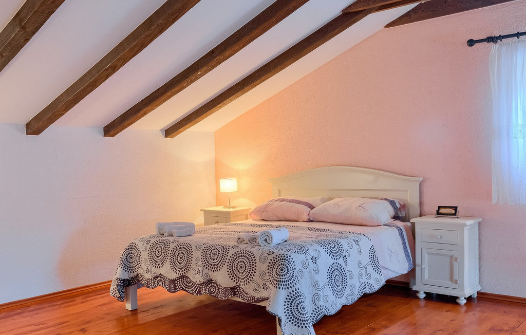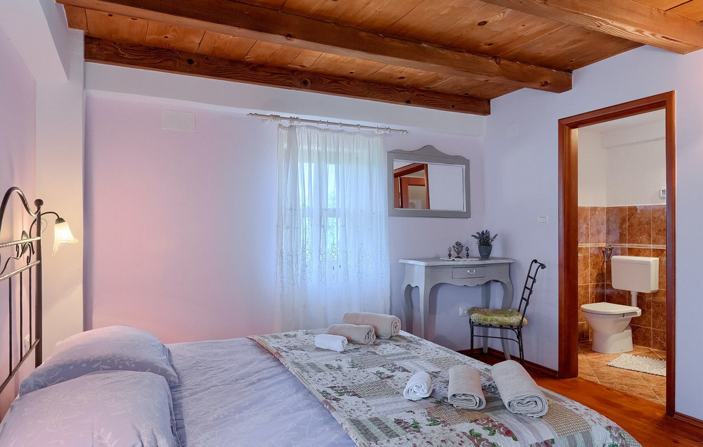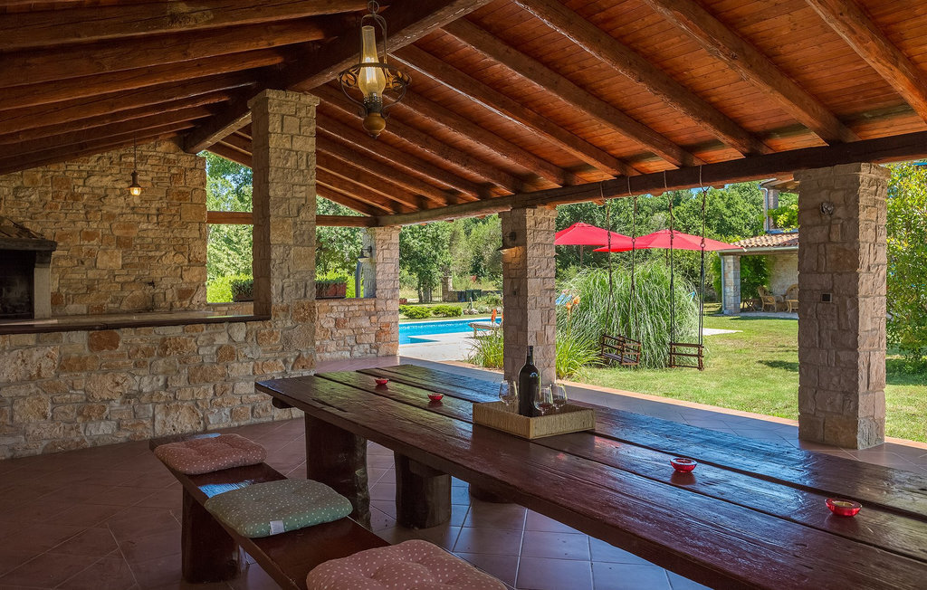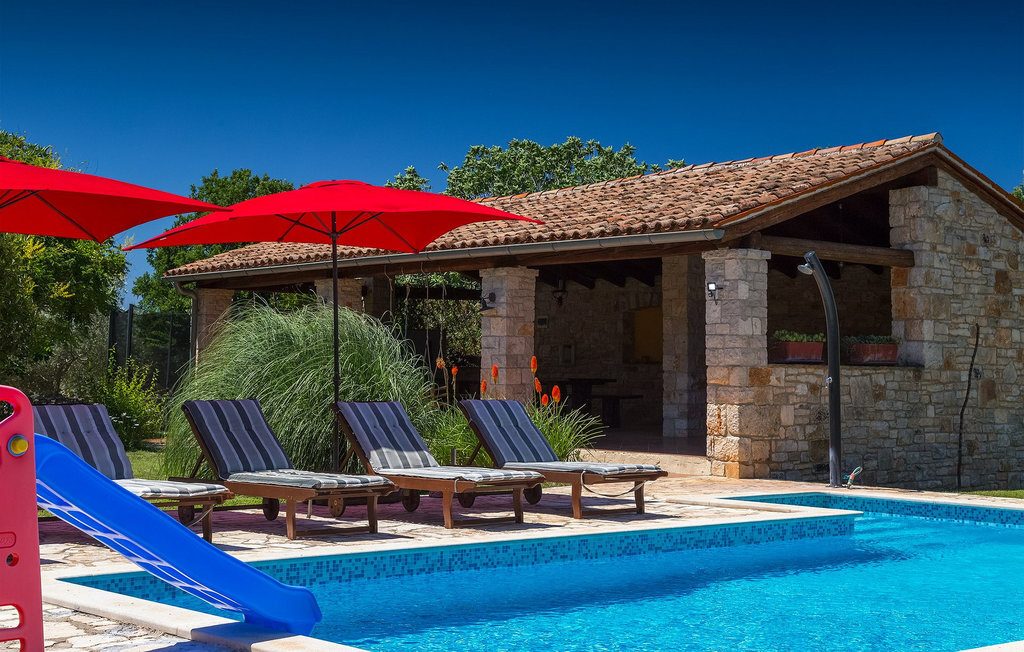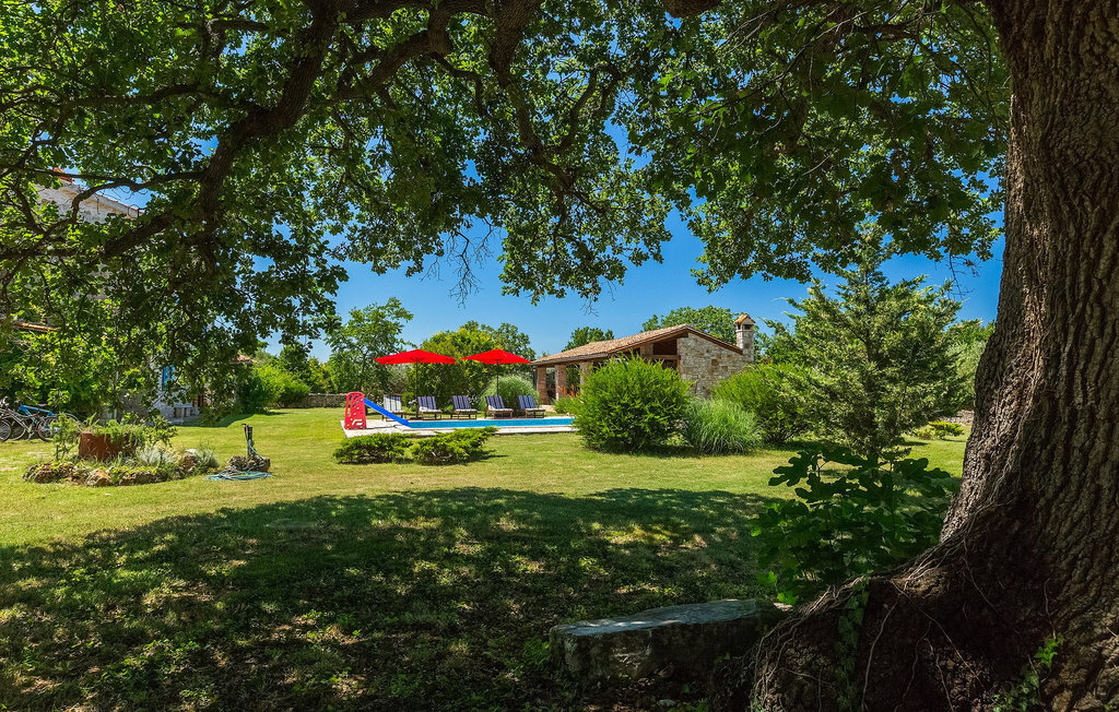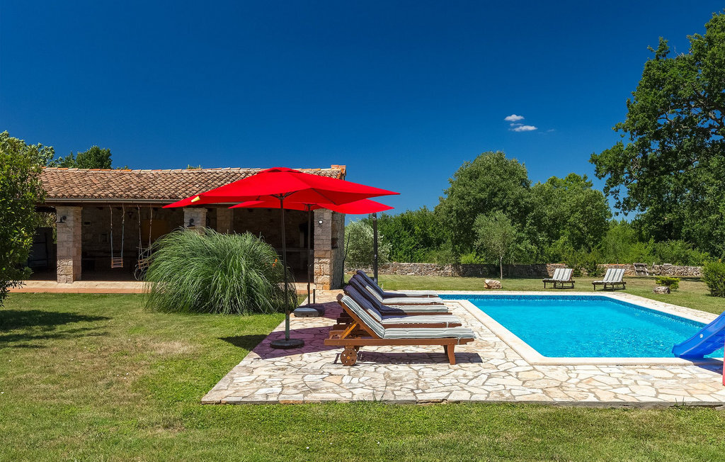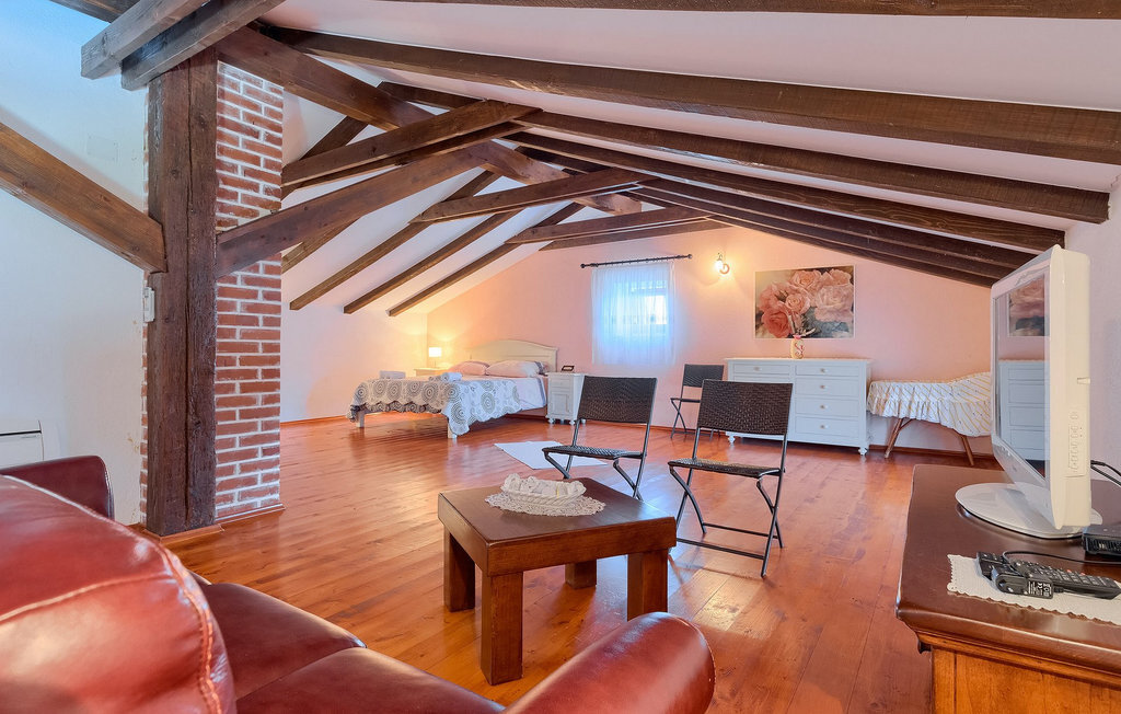 Cette ancienne villa rénovée avec une grande piscine située dans une immense cour intérieure verdoyante est l'endroit idéal pour des vacances pleines de calme et de détente dont vous rêvez. La villa Negrin dispose de quatre chambres et peut accueillir jusqu'à dix personnes. Au rez-de-chaussée de l'espace ouvert se trouve un grand salon avec cheminée, une cuisine entièrement équipée et une salle à manger pour dix personnes, idéale pour les repas de famille. Il y a également une cave à vin au rez-de-chaussée. Au premier étage se trouvent trois chambres à coucher, toutes trois climatisées et avec salle de bain privée, ainsi qu'une petite terrasse confortable où souffle toujours une brise agréable les chaudes journées d'été. L'ancien grenier a été transformé en une grande chambre à coucher principale, avec des briques et des poutres apparentes pour créer des effets visuels. Cette chambre est également climatisée et dispose d'une salle de bain privée. Dans la cour, il y a une grande piscine où vous pouvez nager et vous détendre lorsque les journées deviennent trop chaudes, ou vous pouvez prendre le soleil sur les chaises longues autour de la piscine avec une boisson fraîche à la main. La piscine dispose également d'un petit toboggan pour les plus petits. Si vous voyagez avec des enfants, cette villa est le choix parfait, car elle offre un jardin de 2000 m² avec une verdure luxuriante où les enfants peuvent jouer sans soucis. Pour qu'ils s'amusent en se détendant, il y a aussi un filet de badminton et de volley-ball, un trampoline, un panier de basket-ball, des balançoires et des fléchettes pour qu'ils puissent dépenser sans problème l'énergie excédentaire. Il y a aussi une grande salle à manger extérieure couverte avec un barbecue pour 12 personnes, où vous pouvez profiter de ces repas de famille, tandis que la brise porte le subtil parfum d'été de la mer toute proche. Tu ne te sens pas détendu maintenant ? Réserve dès maintenant la Villa Negrin et offre-toi les vacances que tu mérites.Gajana est un petit village situé dans la commune de Vodnjan, près de Pula et de Rovinj. Gajana est un village typiquement istrien de 20 maisons, entouré de champs et de forêts. À environ 6 km de Gajana se trouve la ville médiévale de Vodnjan, dans le centre de laquelle vous pouvez encore admirer l'architecture baroque, renaissance et gothique. Partout, on peut voir de nombreux détails de différentes époques, comme des portes en bois, des façades en pierre et des ornements en fer forgé sur les fontaines. Les vieilles rues typiques et étroites d'Istrie, pavées de pierres, mènent à l'église, qui possède le plus haut clocher de toute l'Istrie. Comme l'Istrie est bien desservie par les transports, vous pouvez prendre votre voiture à tout moment et partir en excursion. Après un court trajet de 20 à 40 minutes à travers une nature magnifique, vous atteindrez les grandes villes côtières de Pula, Rovinj et Porec. Ces trois endroits sont des villes antiques datant de l'époque romaine, où vous pourrez explorer de nombreux monuments historiques, comme l'amphithéâtre de Pula, la basilique euphrasienne de Porec ou l'église Sainte-Euphémie de Rovinj. Pour vous rafraîchir dans la mer bleue cristalline, rendez-vous sur les nombreuses plages des environs.