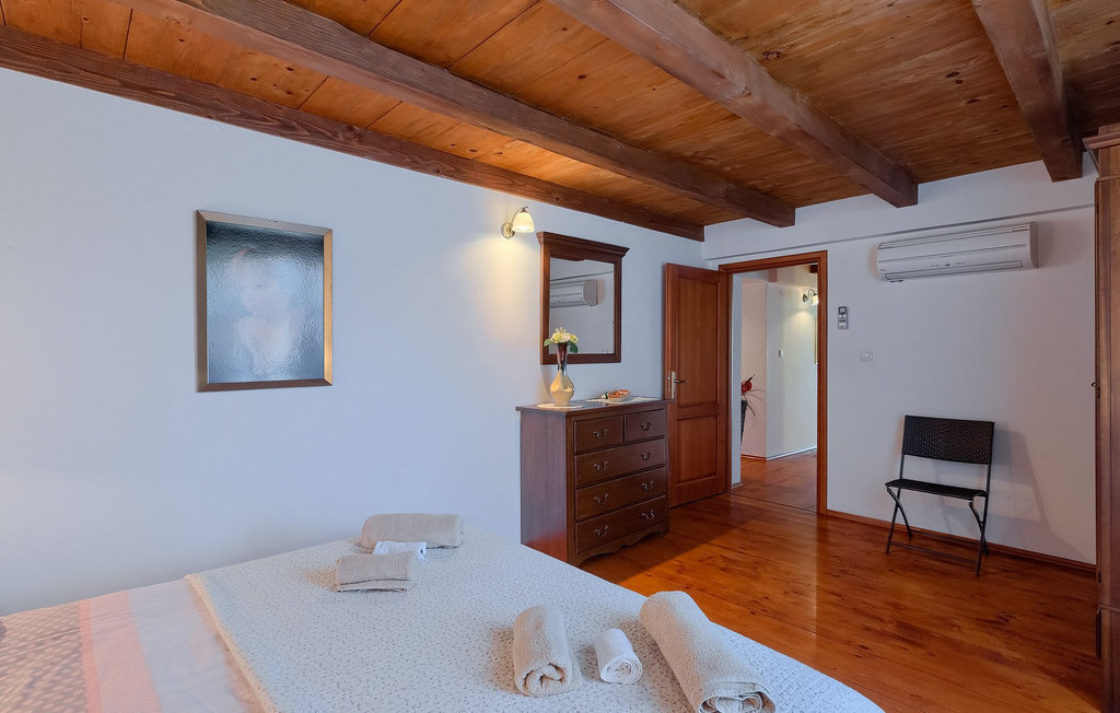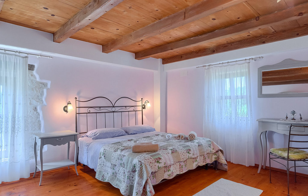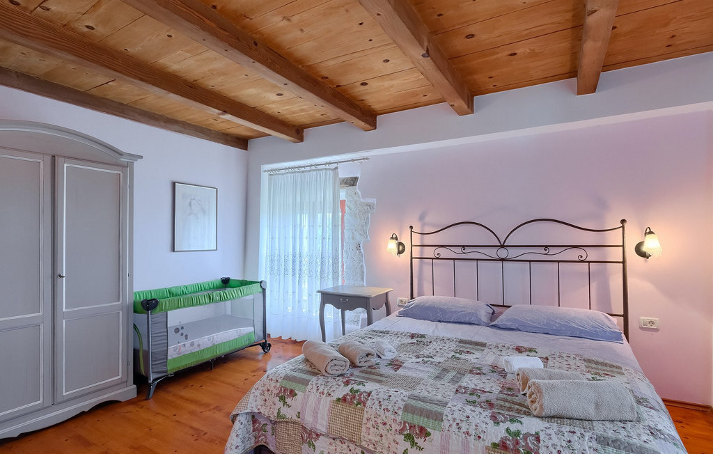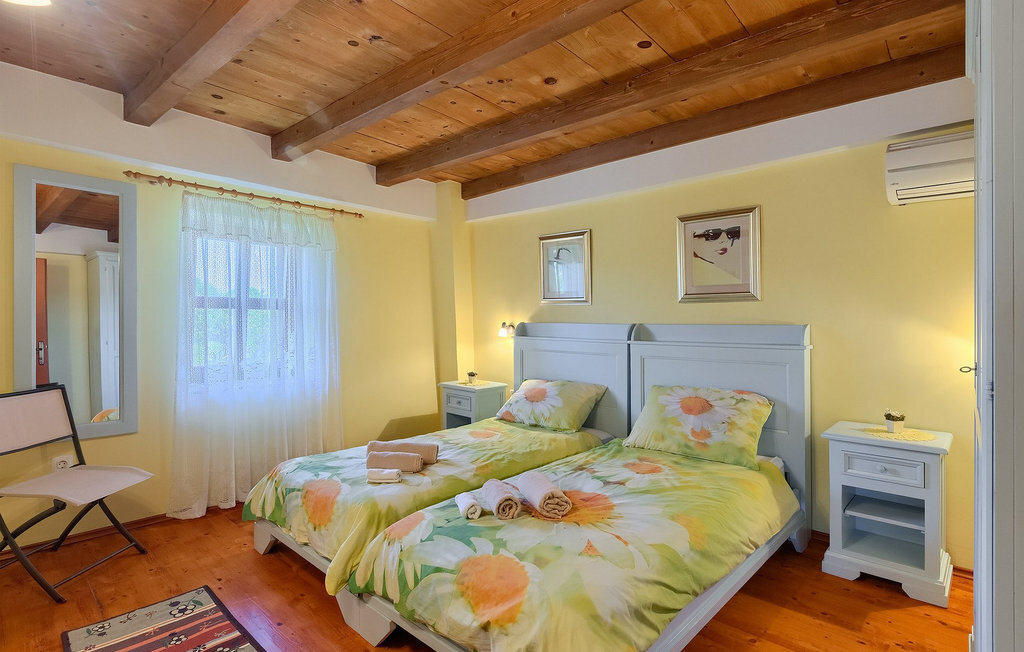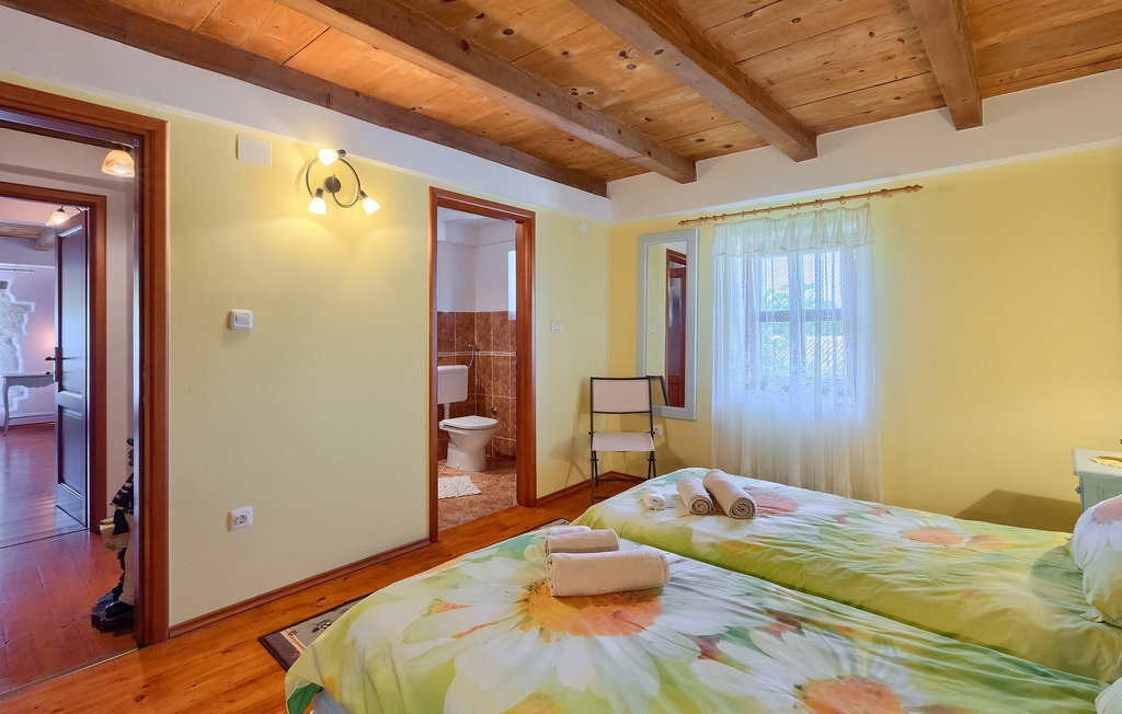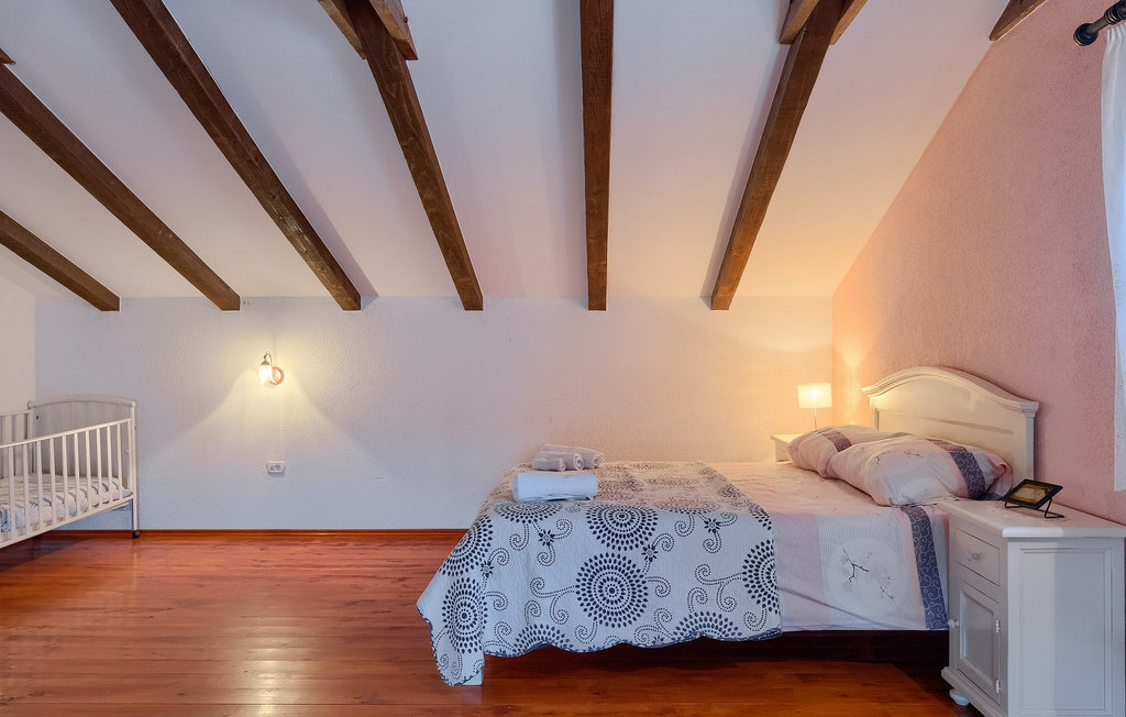 Cette ancienne villa rénovée avec une grande piscine située dans une immense cour intérieure verdoyante est l'endroit idéal pour des vacances pleines de calme et de détente dont vous rêvez. La villa Negrin dispose de quatre chambres et peut accueillir jusqu'à dix personnes. Au rez-de-chaussée de l'espace ouvert se trouve un grand salon avec cheminée, une cuisine entièrement équipée et une salle à manger pour dix personnes, idéale pour les repas de famille. Il y a également une cave à vin au rez-de-chaussée. Au premier étage se trouvent trois chambres à coucher, toutes trois climatisées et avec salle de bain privée, ainsi qu'une petite terrasse confortable où souffle toujours une brise agréable les chaudes journées d'été. L'ancien grenier a été transformé en une grande chambre à coucher principale, avec des briques et des poutres apparentes pour créer des effets visuels. Cette chambre est également climatisée et dispose d'une salle de bain privée. Dans la cour, il y a une grande piscine où vous pouvez nager et vous détendre lorsque les journées deviennent trop chaudes, ou vous pouvez prendre le soleil sur les chaises longues autour de la piscine avec une boisson fraîche à la main. La piscine dispose également d'un petit toboggan pour les plus petits. Si vous voyagez avec des enfants, cette villa est le choix parfait, car elle offre un jardin de 2000 m² avec une verdure luxuriante où les enfants peuvent jouer sans soucis. Pour qu'ils s'amusent en se détendant, il y a aussi un filet de badminton et de volley-ball, un trampoline, un panier de basket-ball, des balançoires et des fléchettes pour qu'ils puissent dépenser sans problème l'énergie excédentaire. Il y a aussi une grande salle à manger extérieure couverte avec un barbecue pour 12 personnes, où vous pouvez profiter de ces repas de famille, tandis que la brise porte le subtil parfum d'été de la mer toute proche. Tu ne te sens pas détendu maintenant ? Réserve dès maintenant la Villa Negrin et offre-toi les vacances que tu mérites.Gajana est un petit village situé dans la commune de Vodnjan, près de Pula et de Rovinj. Gajana est un village typiquement istrien de 20 maisons, entouré de champs et de forêts. À environ 6 km de Gajana se trouve la ville médiévale de Vodnjan, dans le centre de laquelle vous pouvez encore admirer l'architecture baroque, renaissance et gothique. Partout, on peut voir de nombreux détails de différentes époques, comme des portes en bois, des façades en pierre et des ornements en fer forgé sur les fontaines. Les vieilles rues typiques et étroites d'Istrie, pavées de pierres, mènent à l'église, qui possède le plus haut clocher de toute l'Istrie. Comme l'Istrie est bien desservie par les transports, vous pouvez prendre votre voiture à tout moment et partir en excursion. Après un court trajet de 20 à 40 minutes à travers une nature magnifique, vous atteindrez les grandes villes côtières de Pula, Rovinj et Porec. Ces trois endroits sont des villes antiques datant de l'époque romaine, où vous pourrez explorer de nombreux monuments historiques, comme l'amphithéâtre de Pula, la basilique euphrasienne de Porec ou l'église Sainte-Euphémie de Rovinj. Pour vous rafraîchir dans la mer bleue cristalline, rendez-vous sur les nombreuses plages des environs.
