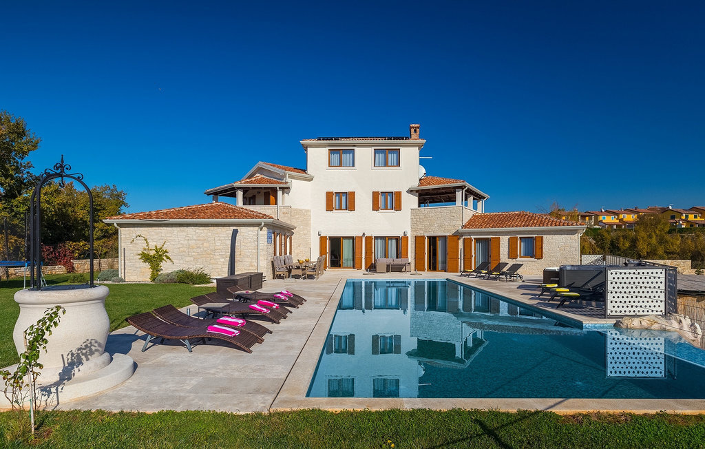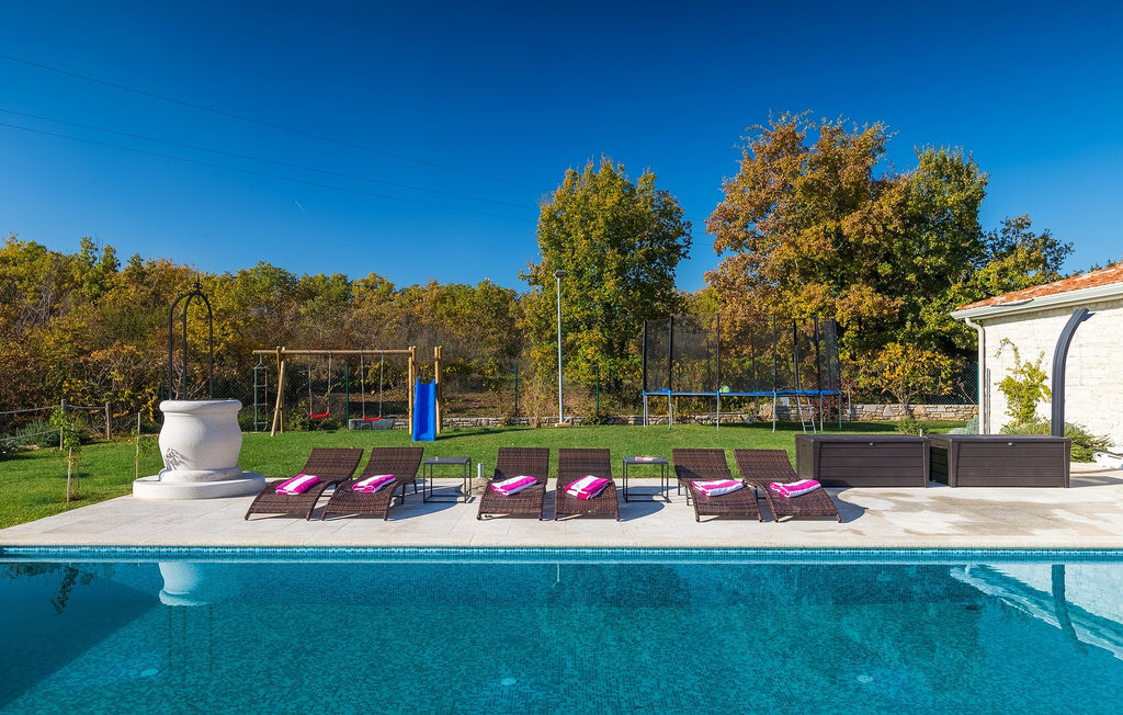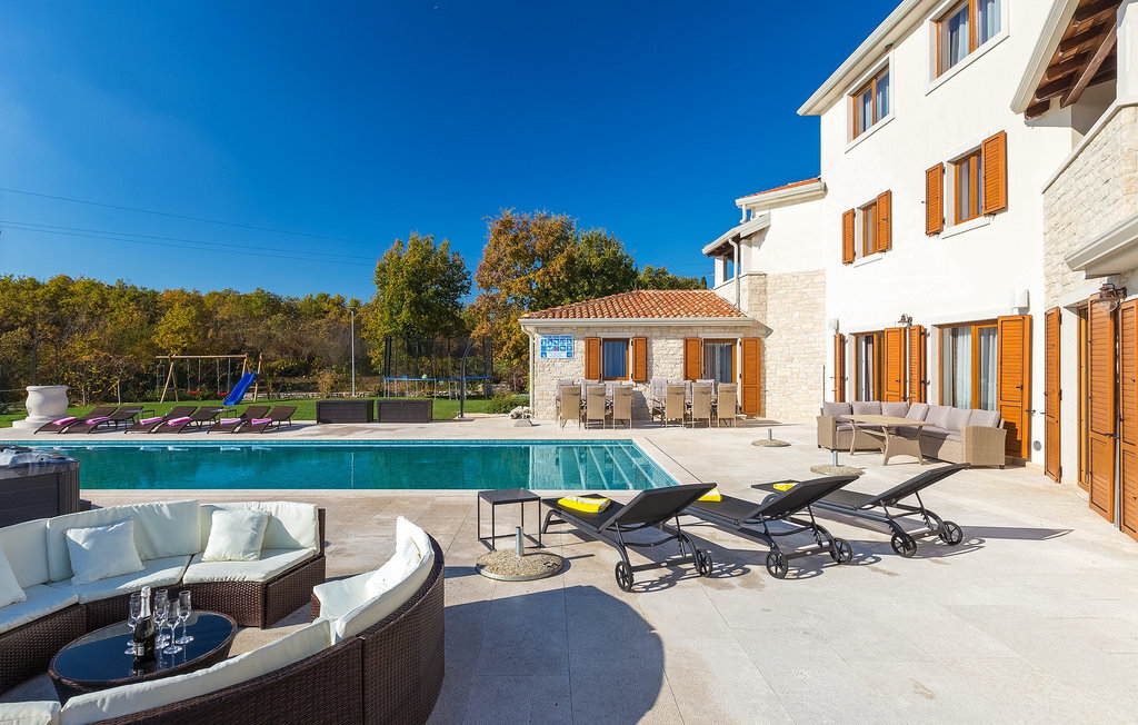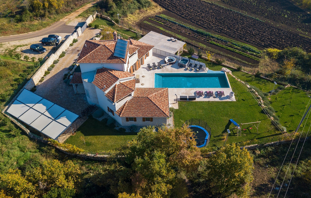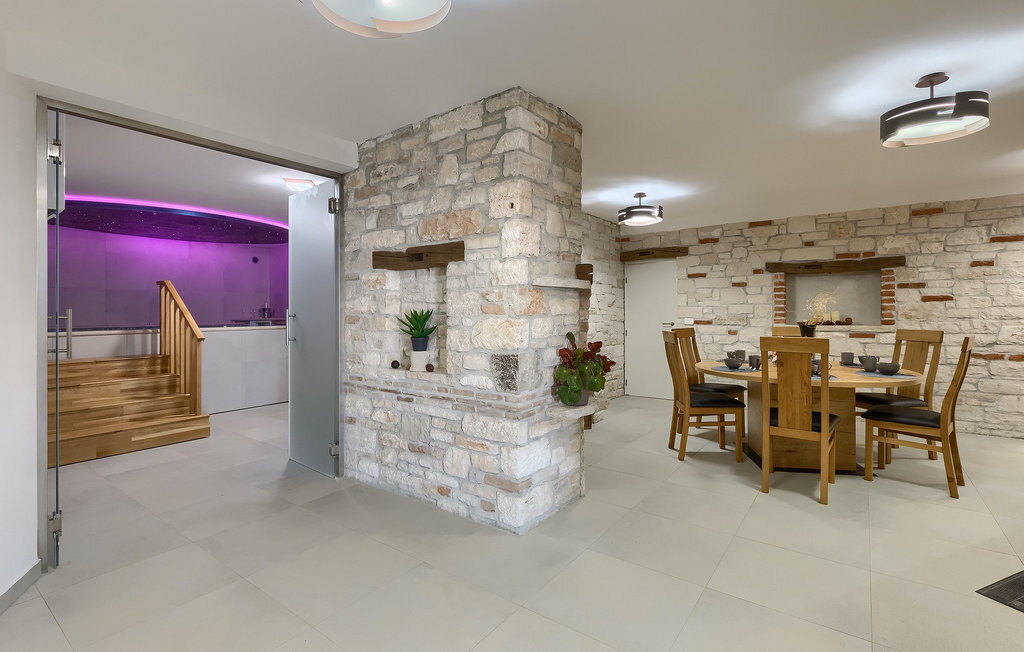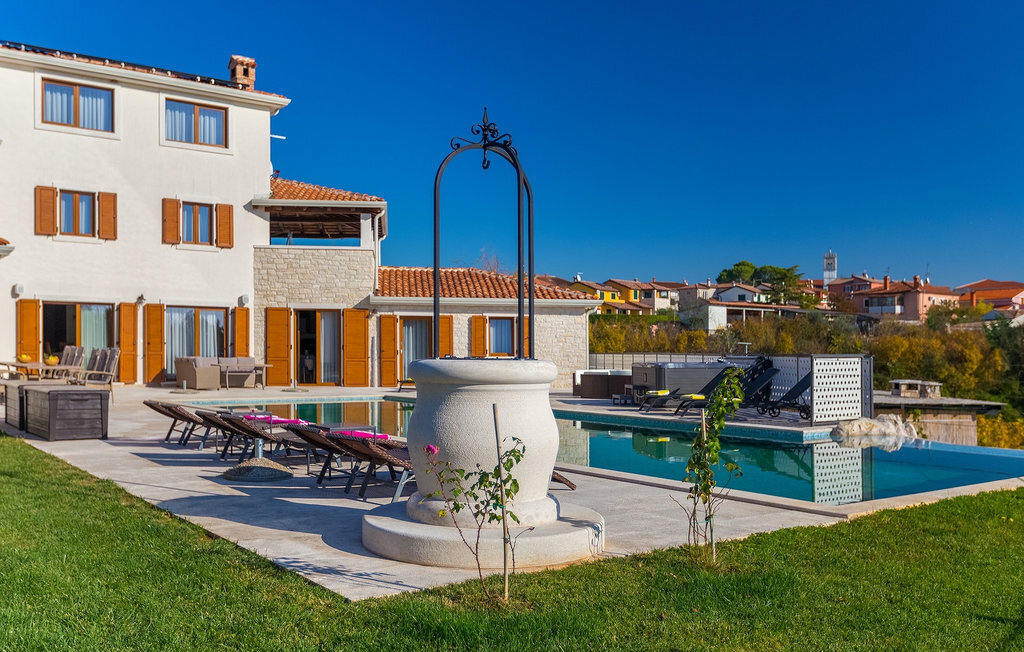 L'unique villa San Lorenzo est située dans le petit village de Nova Vas, près de la ville côtière de Novigrad. Cette villa est un choix parfait pour ceux qui souhaitent passer des vacances reposantes. La villa dispose de 6 chambres à coucher décorées avec soin et peut accueillir jusqu'à 14 personnes. Vous serez impressionné par l'aménagement intérieur de la villa. Le rez-de-chaussée ouvert se compose d'un salon lumineux avec cheminée, d'une cuisine entièrement équipée avec coin repas et de toilettes séparées. Le rez-de-chaussée comprend également trois chambres à coucher magnifiquement décorées, chacune avec sa propre salle de bain. Au premier étage se trouvent deux autres chambres à coucher confortables avec salle de bain privée. Le deuxième étage est réservé à la chambre principale avec sa propre salle de bain. Le sous-sol est la meilleure partie de la maison. On y trouve une taverne privée et une salle à manger avec un barbecue au charbon de bois, parfaite pour une réunion de famille. Si vous souhaitez vous détendre, il y a un espace bien-être avec une piscine chauffée, un sauna et une salle de sport privée. Devant la maison, vous trouverez une grande piscine, un jacuzzi extérieur et un solarium avec des chaises longues, l'endroit parfait pour passer les chaudes journées d'été tout en sirotant une boisson fraîche et rafraîchissante. À côté de la villa se trouve une aire de jeux pour enfants et un trampoline. La villa dispose de 8 vélos qui vous permettront de découvrir et d'explorer les environs. La Villa San Lorenzo est une villa élégante et spacieuse qui offre à ses hôtes tout ce dont ils peuvent rêver. REMARQUE : service de massage disponible sur demande (moyennant un supplément). L'hôtesse est à la disposition des hôtes dans la matinée. IMPORTANT : La Villa San Lorenzo n'est pas une maison de fête et les groupes de jeunes visiteurs ne sont pas autorisés.La Villa San Lorenzo se trouve dans le village istrien de Nova Vas, non loin de la ville côtière de Novigrad. Novigrad est une destination touristique populaire qui offre de nombreuses possibilités, notamment des restaurants et des bars de qualité. Promenez-vous dans les ruelles étroites de la ville et visitez les nombreuses galeries et boutiques qui vendent des souvenirs traditionnels. En plus de ses attractions culturelles, Novigrad possède de nombreuses plages de galets et de sable avec de nombreux bars de plage où vous pourrez profiter des chaudes journées d'été. Pour les plus jeunes, il y a non loin de la Villa San Lorenzo le plus grand parc aquatique d'Europe - Istralandia, que vous ne devriez pas manquer. Visitez la forêt de Motovun et cherchez des truffes blanches. Ensuite, goûtez aux plats traditionnels d'Istrie, comme le fuzi aux truffes, le pljukanci au gibier ou la soupe istrienne. Des magasins, des restaurants et des cafés se trouvent dans un rayon de 600 mètres de la Villa San Lorenzo.