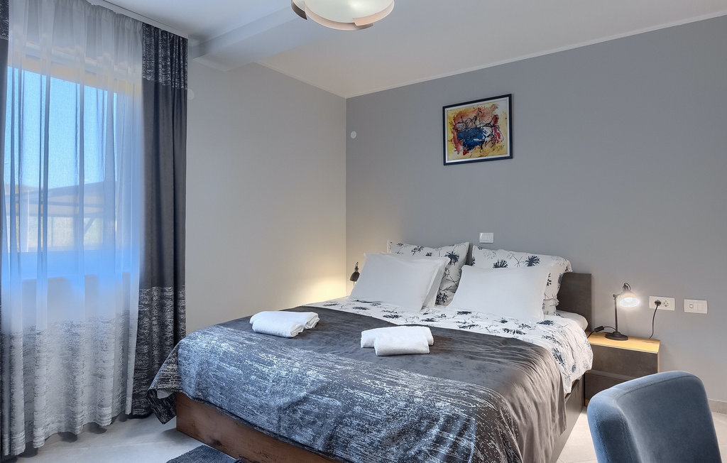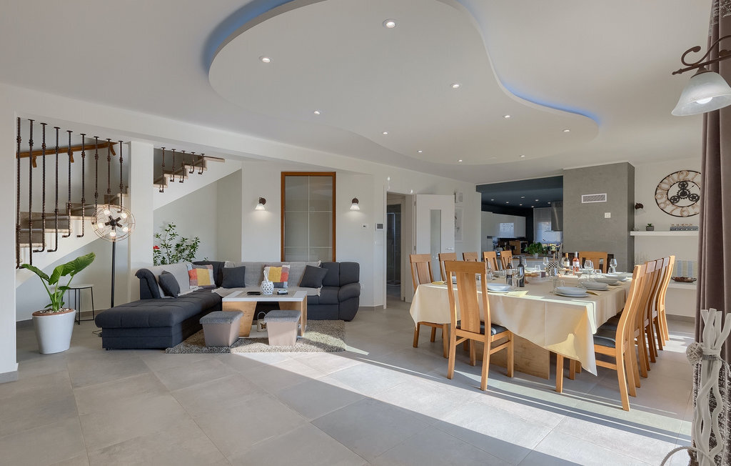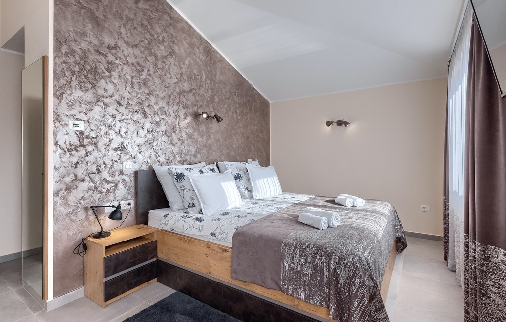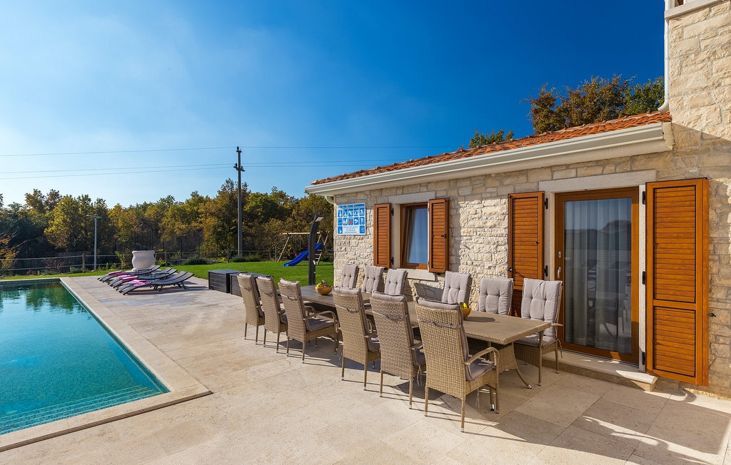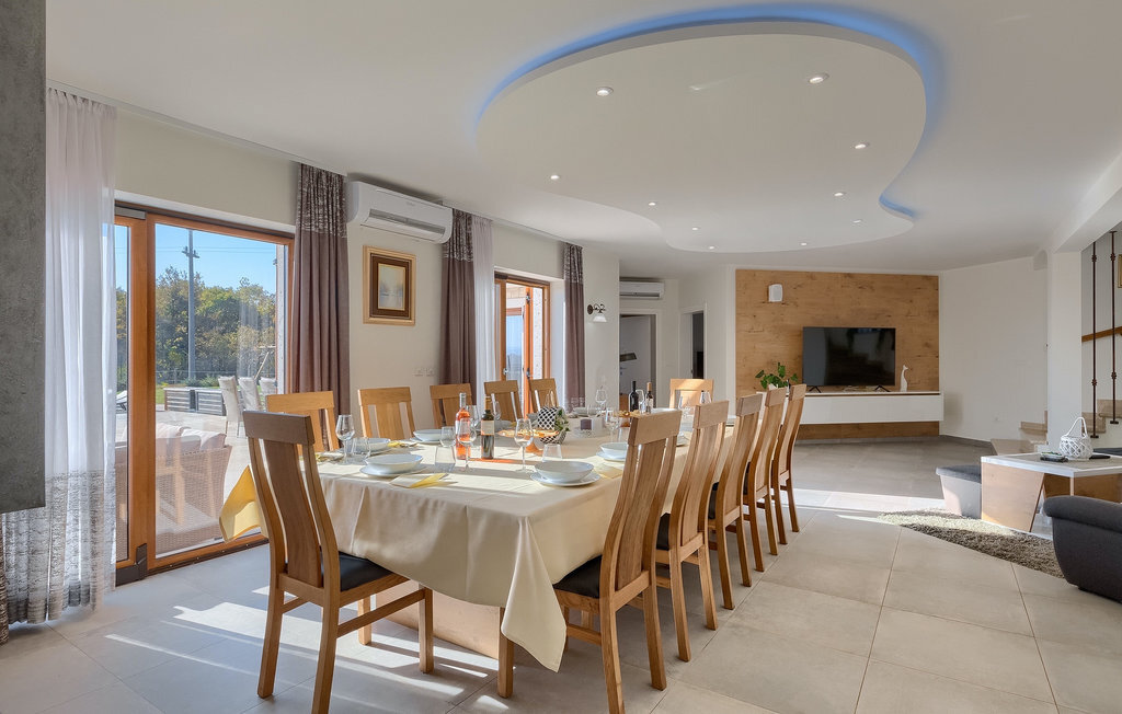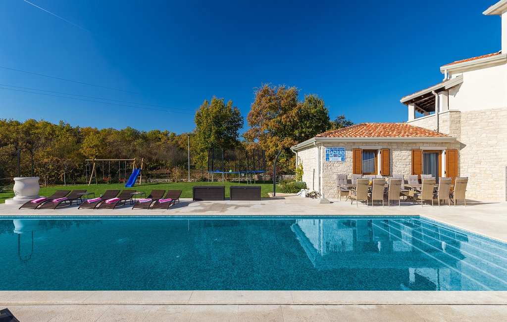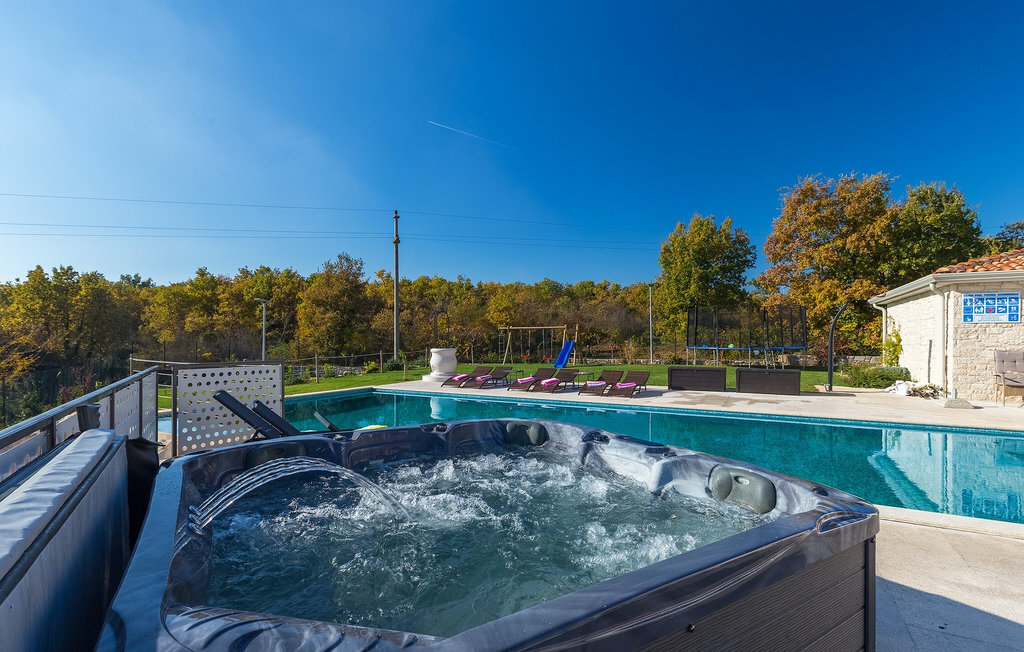 L'unique villa San Lorenzo est située dans le petit village de Nova Vas, près de la ville côtière de Novigrad. Cette villa est un choix parfait pour ceux qui souhaitent passer des vacances reposantes. La villa dispose de 6 chambres à coucher décorées avec soin et peut accueillir jusqu'à 14 personnes. Vous serez impressionné par l'aménagement intérieur de la villa. Le rez-de-chaussée ouvert se compose d'un salon lumineux avec cheminée, d'une cuisine entièrement équipée avec coin repas et de toilettes séparées. Le rez-de-chaussée comprend également trois chambres à coucher magnifiquement décorées, chacune avec sa propre salle de bain. Au premier étage se trouvent deux autres chambres à coucher confortables avec salle de bain privée. Le deuxième étage est réservé à la chambre principale avec sa propre salle de bain. Le sous-sol est la meilleure partie de la maison. On y trouve une taverne privée et une salle à manger avec un barbecue au charbon de bois, parfaite pour une réunion de famille. Si vous souhaitez vous détendre, il y a un espace bien-être avec une piscine chauffée, un sauna et une salle de sport privée. Devant la maison, vous trouverez une grande piscine, un jacuzzi extérieur et un solarium avec des chaises longues, l'endroit parfait pour passer les chaudes journées d'été tout en sirotant une boisson fraîche et rafraîchissante. À côté de la villa se trouve une aire de jeux pour enfants et un trampoline. La villa dispose de 8 vélos qui vous permettront de découvrir et d'explorer les environs. La Villa San Lorenzo est une villa élégante et spacieuse qui offre à ses hôtes tout ce dont ils peuvent rêver. REMARQUE : service de massage disponible sur demande (moyennant un supplément). L'hôtesse est à la disposition des hôtes dans la matinée. IMPORTANT : La Villa San Lorenzo n'est pas une maison de fête et les groupes de jeunes visiteurs ne sont pas autorisés.La Villa San Lorenzo se trouve dans le village istrien de Nova Vas, non loin de la ville côtière de Novigrad. Novigrad est une destination touristique populaire qui offre de nombreuses possibilités, notamment des restaurants et des bars de qualité. Promenez-vous dans les ruelles étroites de la ville et visitez les nombreuses galeries et boutiques qui vendent des souvenirs traditionnels. En plus de ses attractions culturelles, Novigrad possède de nombreuses plages de galets et de sable avec de nombreux bars de plage où vous pourrez profiter des chaudes journées d'été. Pour les plus jeunes, il y a non loin de la Villa San Lorenzo le plus grand parc aquatique d'Europe - Istralandia, que vous ne devriez pas manquer. Visitez la forêt de Motovun et cherchez des truffes blanches. Ensuite, goûtez aux plats traditionnels d'Istrie, comme le fuzi aux truffes, le pljukanci au gibier ou la soupe istrienne. Des magasins, des restaurants et des cafés se trouvent dans un rayon de 600 mètres de la Villa San Lorenzo.