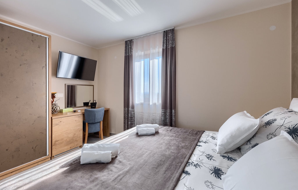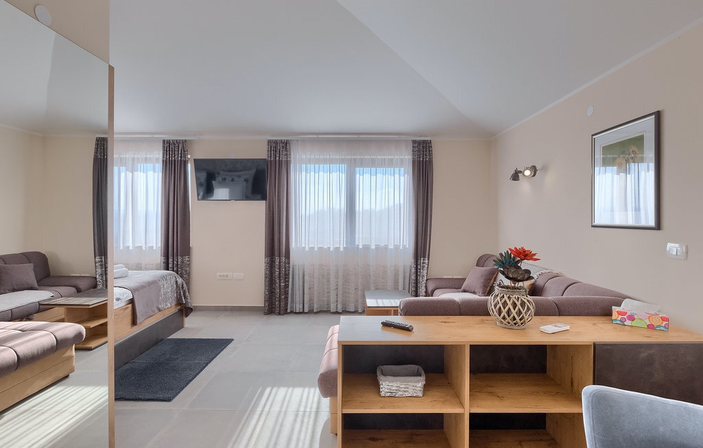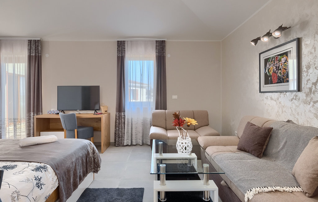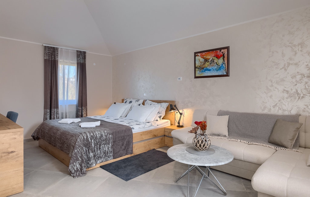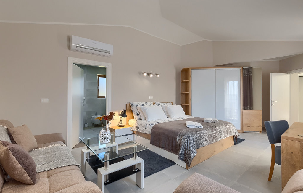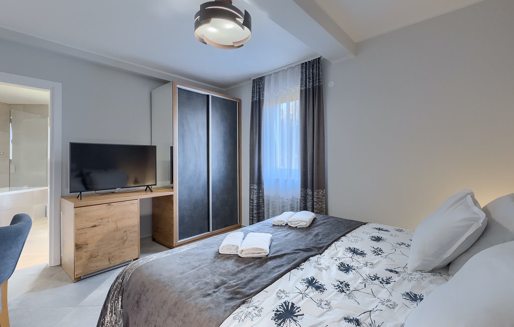 L'unique villa San Lorenzo est située dans le petit village de Nova Vas, près de la ville côtière de Novigrad. Cette villa est un choix parfait pour ceux qui souhaitent passer des vacances reposantes. La villa dispose de 6 chambres à coucher décorées avec soin et peut accueillir jusqu'à 14 personnes. Vous serez impressionné par l'aménagement intérieur de la villa. Le rez-de-chaussée ouvert se compose d'un salon lumineux avec cheminée, d'une cuisine entièrement équipée avec coin repas et de toilettes séparées. Le rez-de-chaussée comprend également trois chambres à coucher magnifiquement décorées, chacune avec sa propre salle de bain. Au premier étage se trouvent deux autres chambres à coucher confortables avec salle de bain privée. Le deuxième étage est réservé à la chambre principale avec sa propre salle de bain. Le sous-sol est la meilleure partie de la maison. On y trouve une taverne privée et une salle à manger avec un barbecue au charbon de bois, parfaite pour une réunion de famille. Si vous souhaitez vous détendre, il y a un espace bien-être avec une piscine chauffée, un sauna et une salle de sport privée. Devant la maison, vous trouverez une grande piscine, un jacuzzi extérieur et un solarium avec des chaises longues, l'endroit parfait pour passer les chaudes journées d'été tout en sirotant une boisson fraîche et rafraîchissante. À côté de la villa se trouve une aire de jeux pour enfants et un trampoline. La villa dispose de 8 vélos qui vous permettront de découvrir et d'explorer les environs. La Villa San Lorenzo est une villa élégante et spacieuse qui offre à ses hôtes tout ce dont ils peuvent rêver. REMARQUE : service de massage disponible sur demande (moyennant un supplément). L'hôtesse est à la disposition des hôtes dans la matinée. IMPORTANT : La Villa San Lorenzo n'est pas une maison de fête et les groupes de jeunes visiteurs ne sont pas autorisés.La Villa San Lorenzo se trouve dans le village istrien de Nova Vas, non loin de la ville côtière de Novigrad. Novigrad est une destination touristique populaire qui offre de nombreuses possibilités, notamment des restaurants et des bars de qualité. Promenez-vous dans les ruelles étroites de la ville et visitez les nombreuses galeries et boutiques qui vendent des souvenirs traditionnels. En plus de ses attractions culturelles, Novigrad possède de nombreuses plages de galets et de sable avec de nombreux bars de plage où vous pourrez profiter des chaudes journées d'été. Pour les plus jeunes, il y a non loin de la Villa San Lorenzo le plus grand parc aquatique d'Europe - Istralandia, que vous ne devriez pas manquer. Visitez la forêt de Motovun et cherchez des truffes blanches. Ensuite, goûtez aux plats traditionnels d'Istrie, comme le fuzi aux truffes, le pljukanci au gibier ou la soupe istrienne. Des magasins, des restaurants et des cafés se trouvent dans un rayon de 600 mètres de la Villa San Lorenzo.