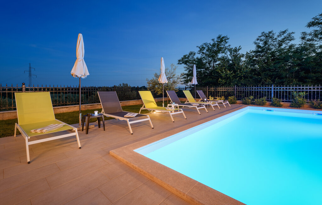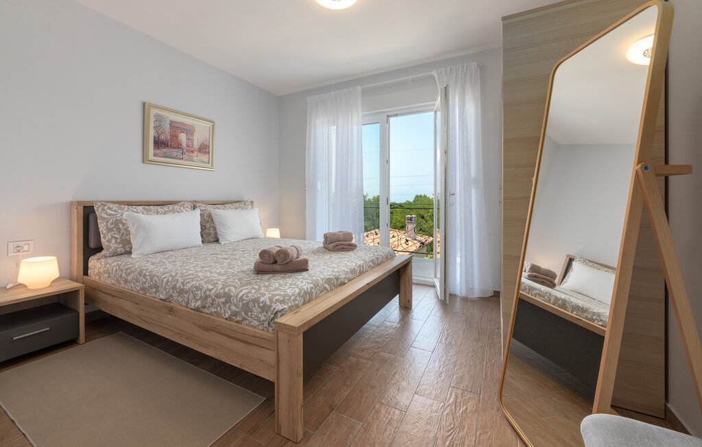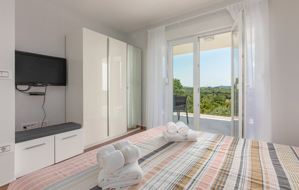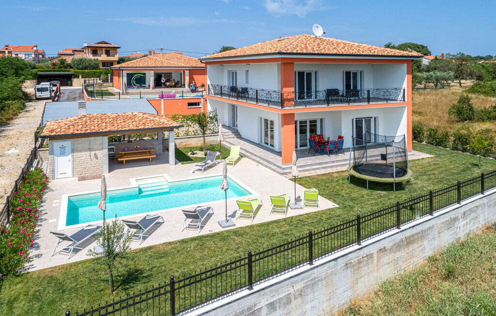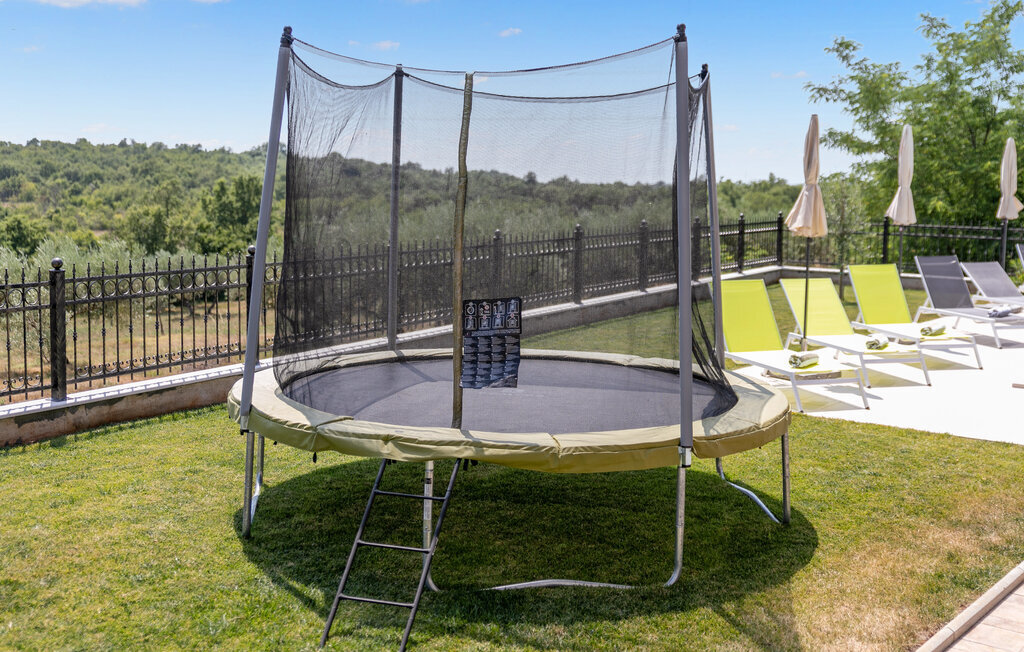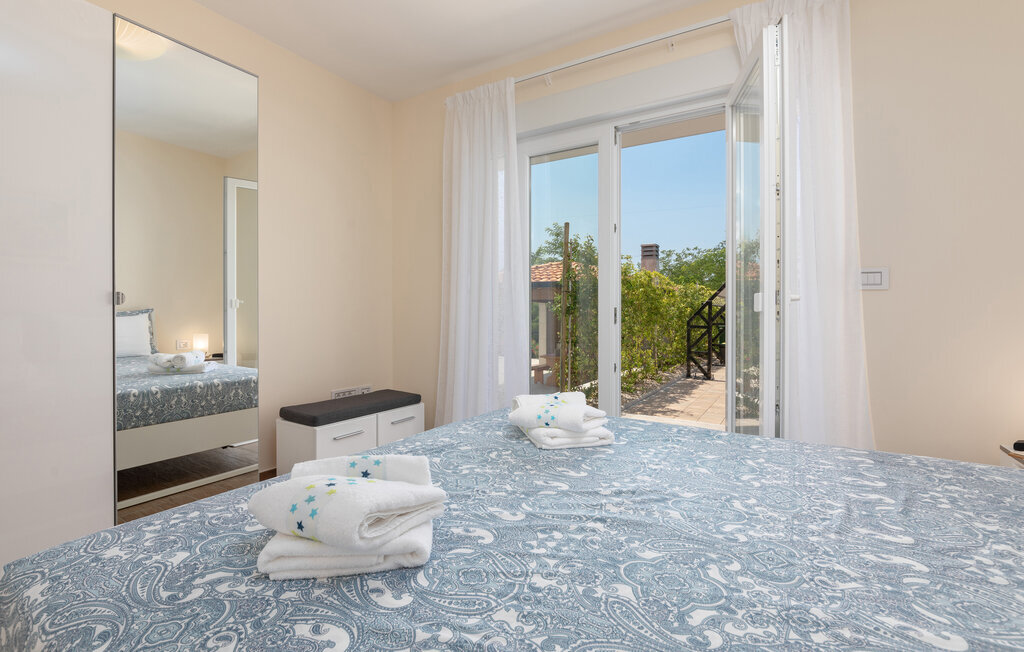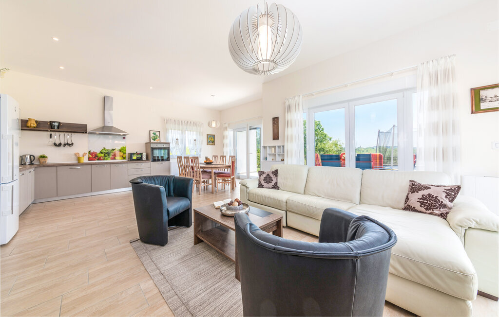 L'intérieur de la villa est moderne et offre des vacances reposantes et tranquilles. Au premier étage se trouvent 3 chambres confortables avec salles de bains privées. Deux chambres disposent de lits doubles et la troisième de deux lits simples. Toutes les pièces sont chauffées et refroidies par la climatisation. Les chambres à l'étage donnent accès à un grand balcon commun avec une excellente vue sur le paysage verdoyant d'Istrie. Profitez de vos soirées ici avec un verre de vin local istrien de cette région, connue pour ses routes du vin.La Villa Eva est située dans le petit village de Katel, sur une colline surplombant la rivière Dragonja, qui offre une vue magique sur le paysage istrien. Katel se trouve dans la partie nord-ouest de la péninsule d'Istrie, à proximité de la belle petite ville de Buje, que vous devez absolument visiter. À seulement 2 km de la villa se trouve la ville du vin et de l'huile d'olive, Buje. Vous pourrez y admirer de nombreuses églises bien conservées, visiter un musée ethnographique ou simplement vous détendre en vous promenant le long des nombreuses routes du vin et en dégustant du vin ou de l'huile d'olive locaux. Pour les amateurs de vacances actives, il y a également de nombreuses pistes cyclables dans cette région. Détendez-vous dans la belle nature à l'ombre des pins à côté de la mer cristalline sur la plage de Kanegra, à seulement 8,5 km de la villa. Le centre touristique d'Umag se trouve à environ 15 minutes en voiture. Umag offre de nombreuses attractions touristiques, des restaurants, des magasins, des cafés, des bars et des événements. L'un d'entre eux est la coupe de tennis ATP Croatia Open, mondialement connue, qui se déroule en juillet.