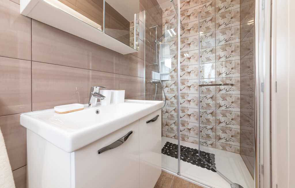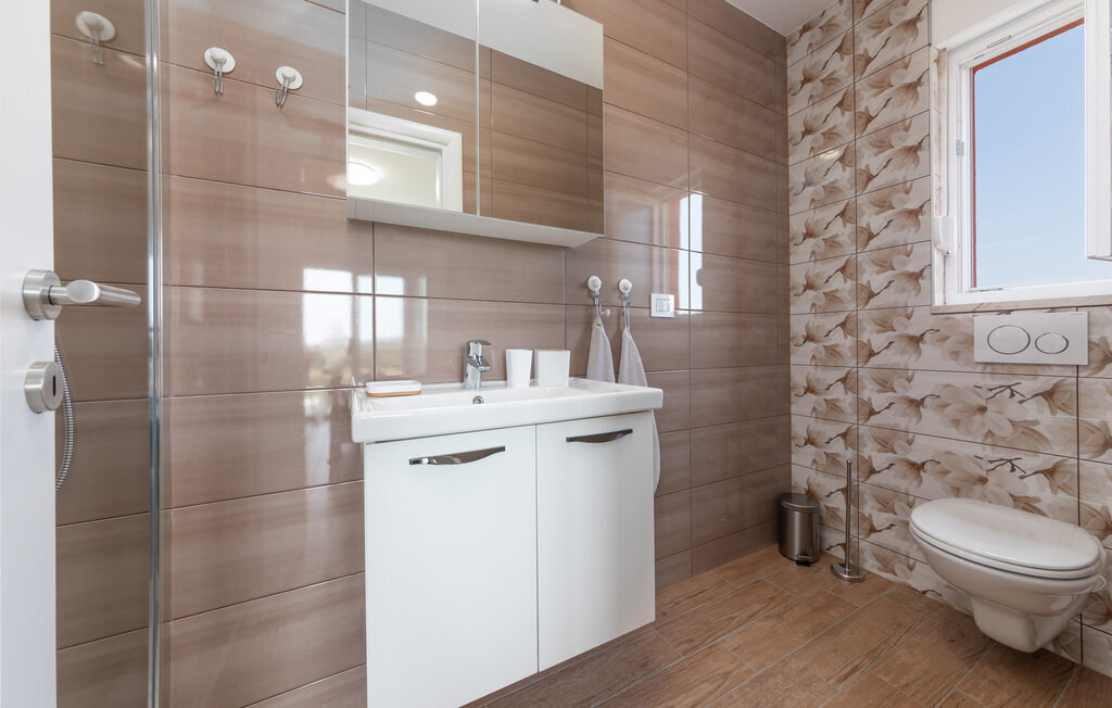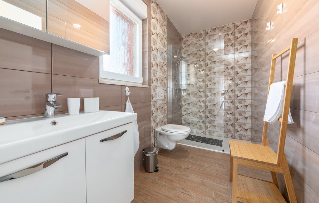 Avec ses 186 m2, la Villa Eva peut accueillir 8 personnes dans 4 chambres à coucher. L'une des chambres à coucher avec lit double se trouve sur le palier à côté de la petite salle de bain avec douche au rez-de-chaussée, où vous attend également un salon moderne et lumineux avec coin repas et une cuisine entièrement équipée dans un concept ouvert. Cet espace agréable, baigné de lumière naturelle grâce aux portes françaises vitrées, donne accès à la magnifique piscine et à l'espace repas ouvert. Pendant que les enfants s'amusent sur le trampoline, vous pouvez vous rafraîchir dans la piscine, prendre un bain de soleil sur les chaises longues ou préparer de délicieux plats et les déguster au coin du feu.