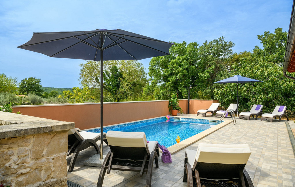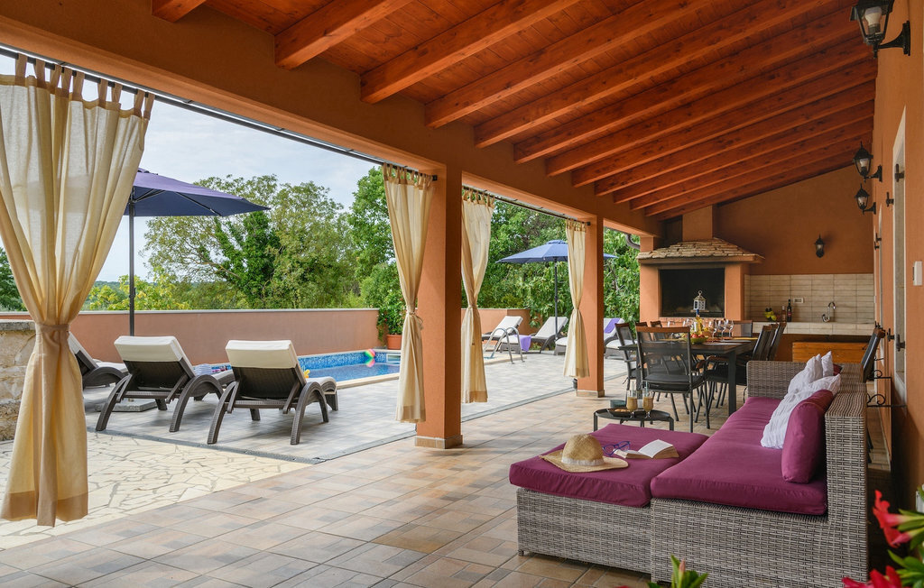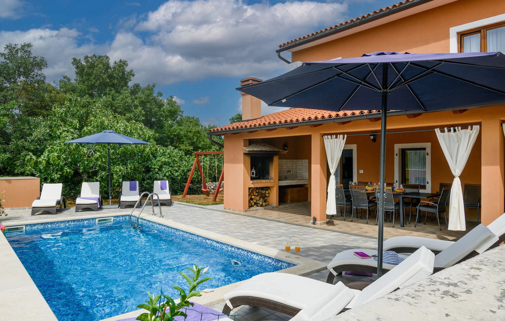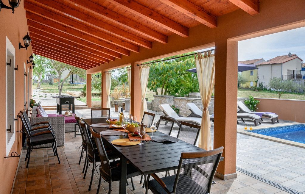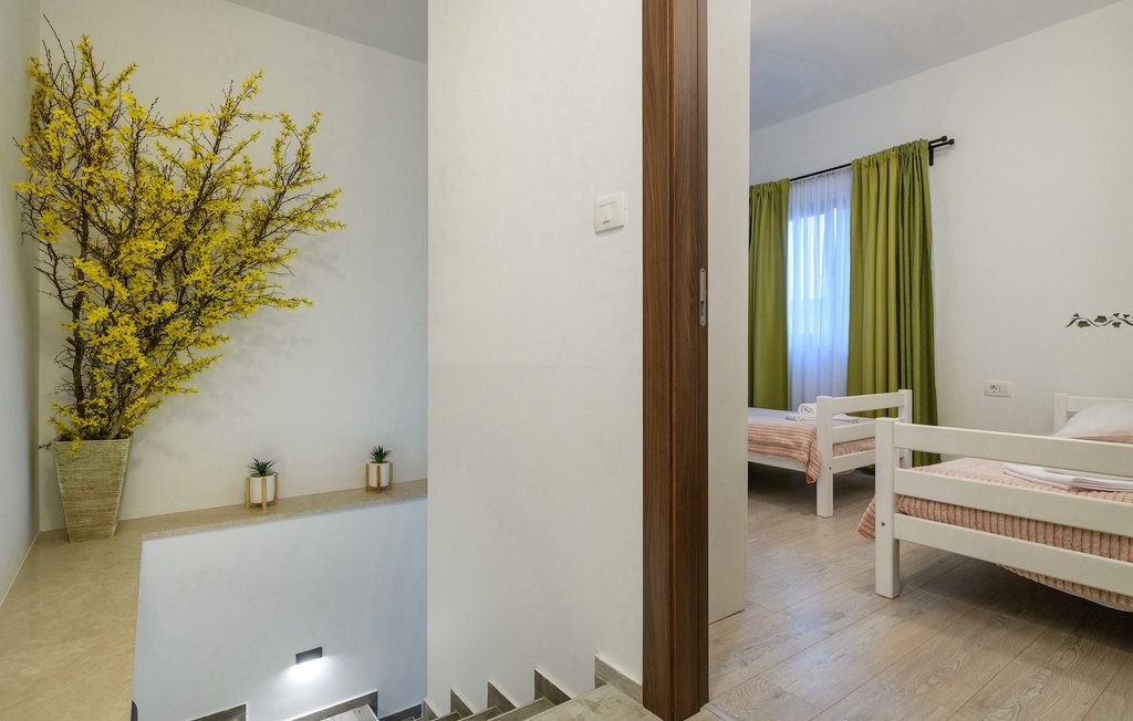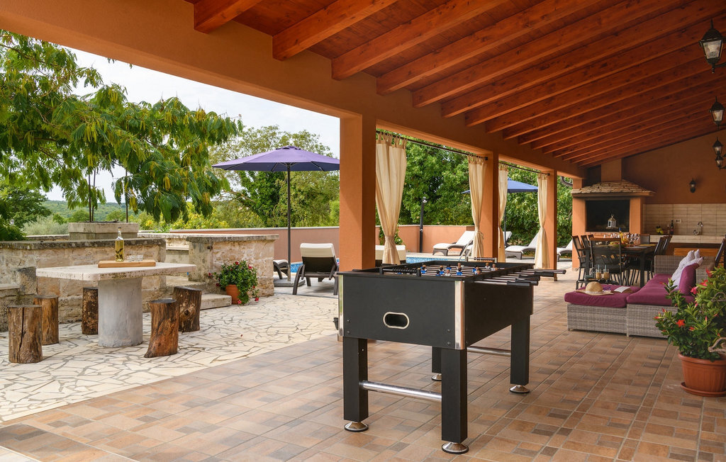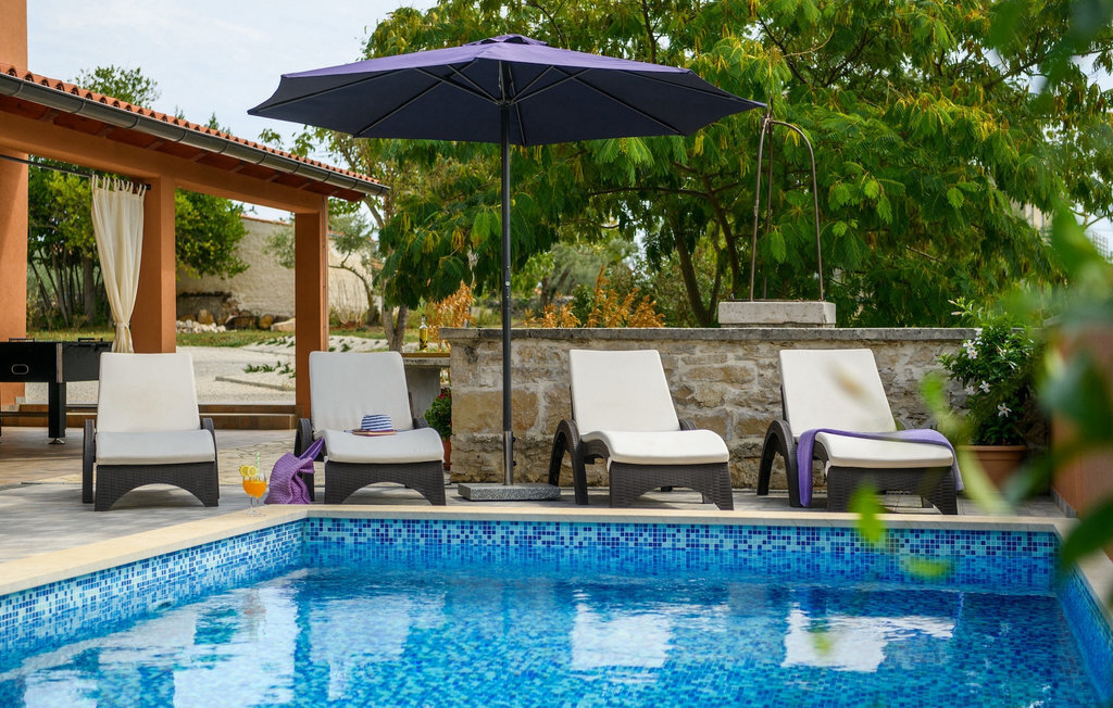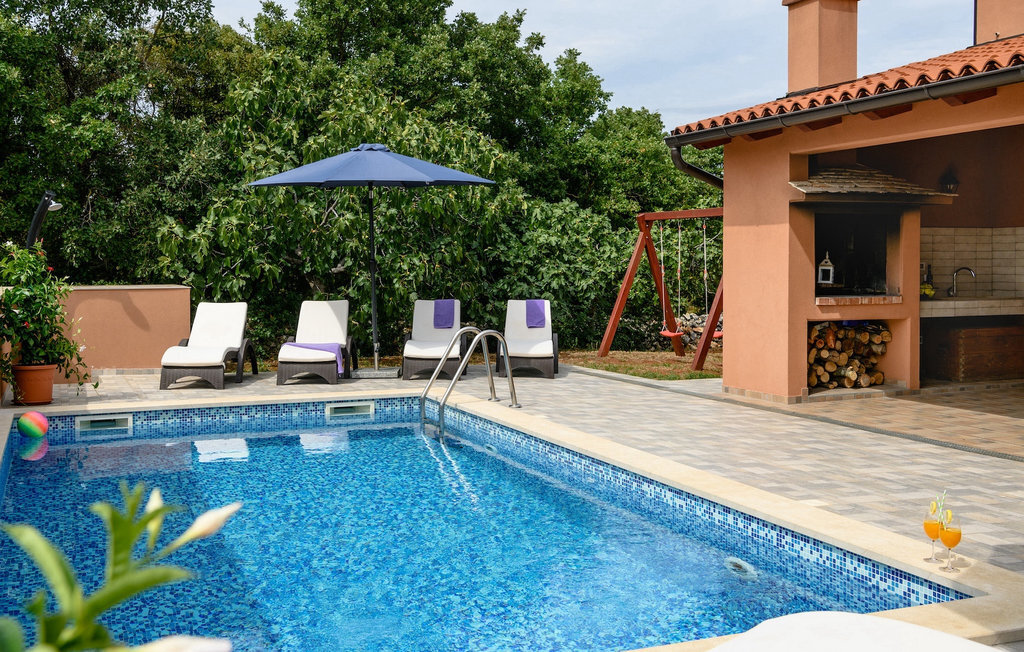 La magnifique villa Percan est le choix idéal pour les familles ou les groupes d'amis qui souhaitent se détendre dans un cadre magnifique, à seulement 3 km de la mer Adriatique. Vous pourrez également vous détendre sur les confortables chaises longues au bord de la piscine privée. Sur la terrasse, un coin repas en plein air avec un barbecue au charbon de bois est à votre disposition pour préparer de délicieux repas ou pour déguster un verre de votre boisson préférée. Plusieurs activités sont prévues pour les enfants : balançoires, trampoline et terrain de futsal. Le rez-de-chaussée se compose d'un salon aménagé avec soin, d'une cuisine entièrement équipée et d'une salle à manger spacieuse. Les quatre chambres (toutes climatisées) et les trois salles de bains se trouvent à l'étage.