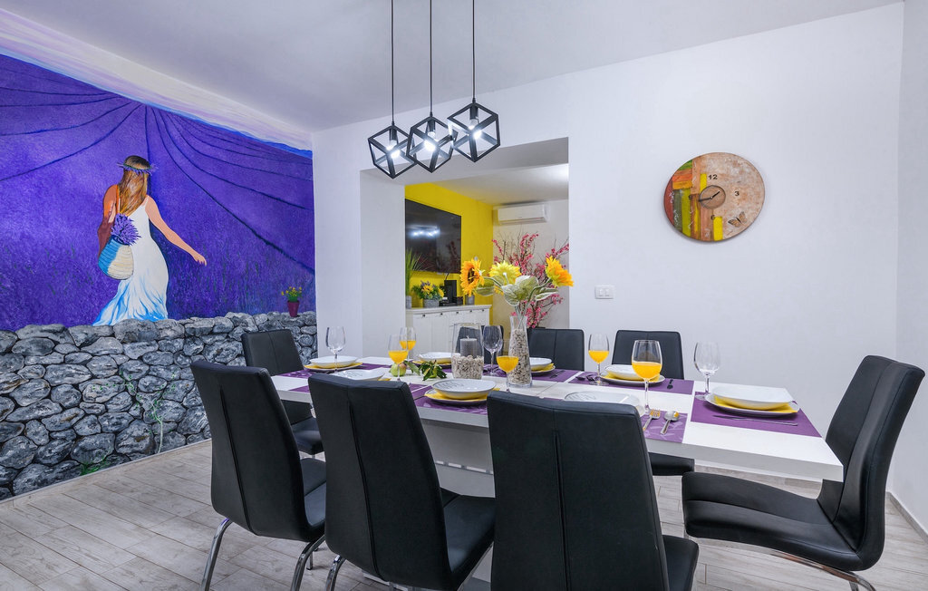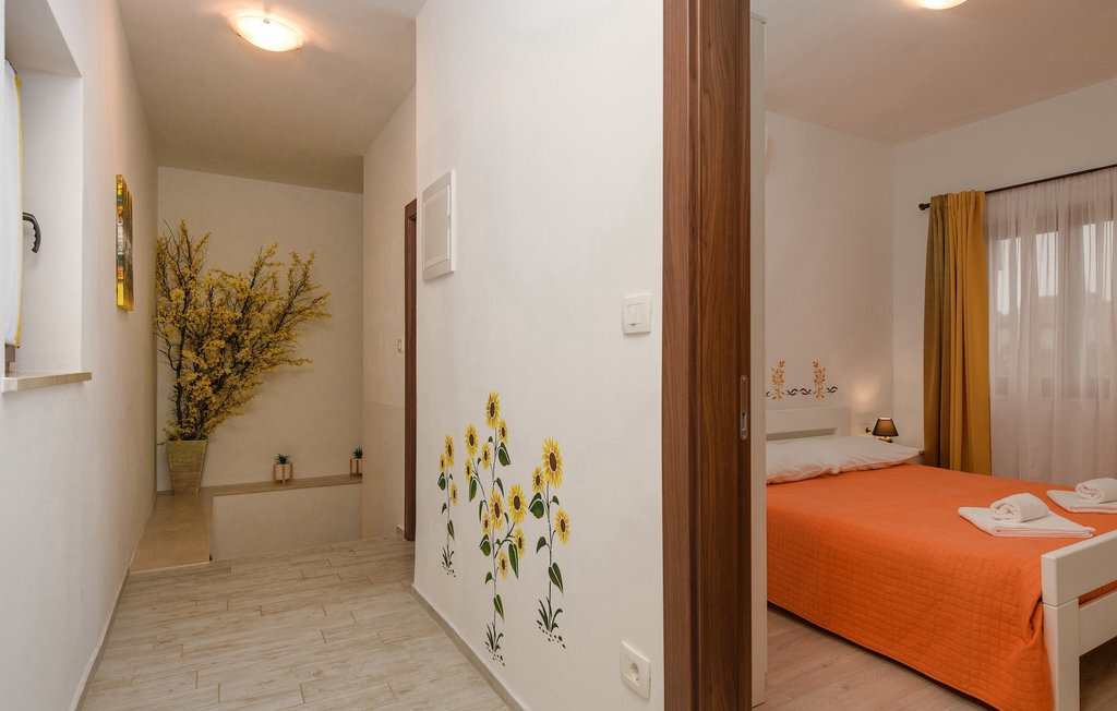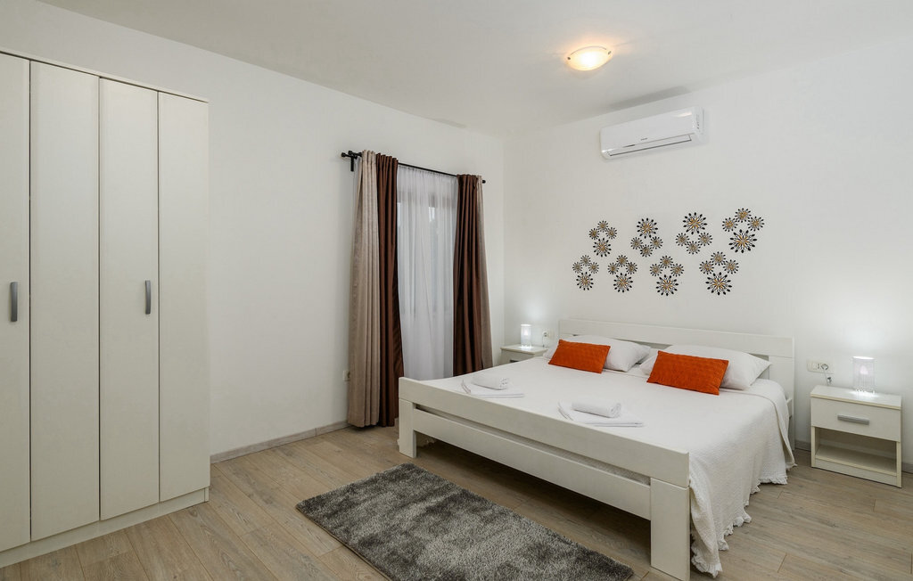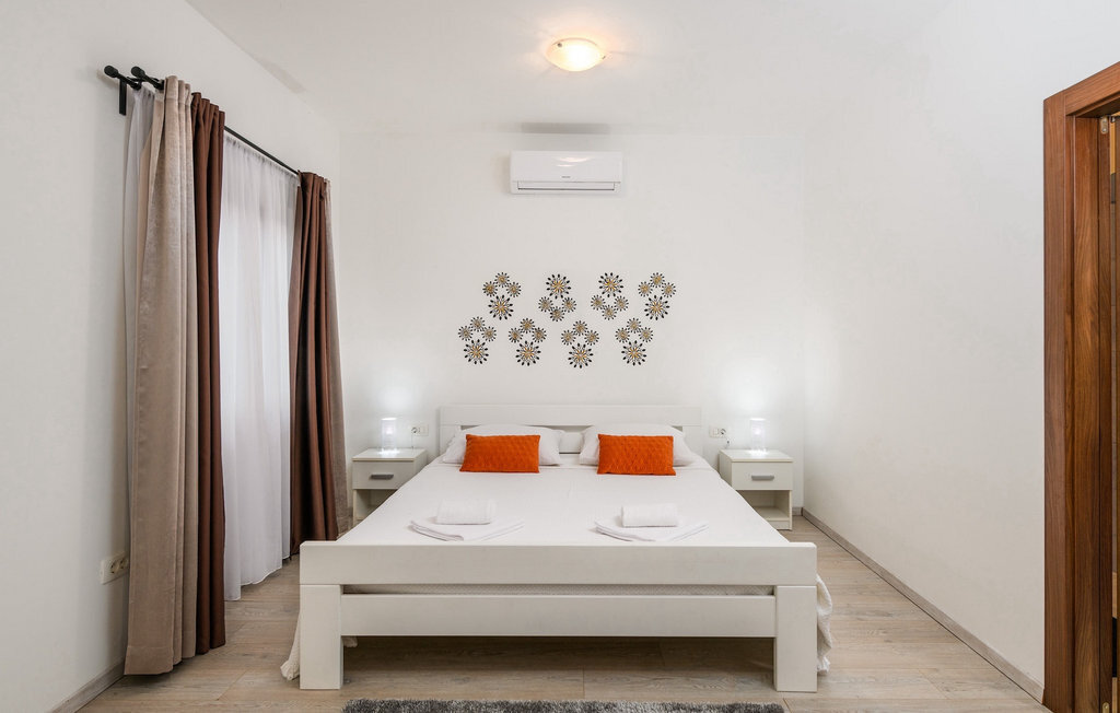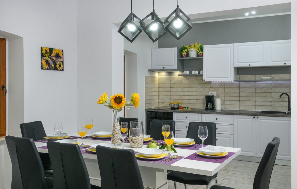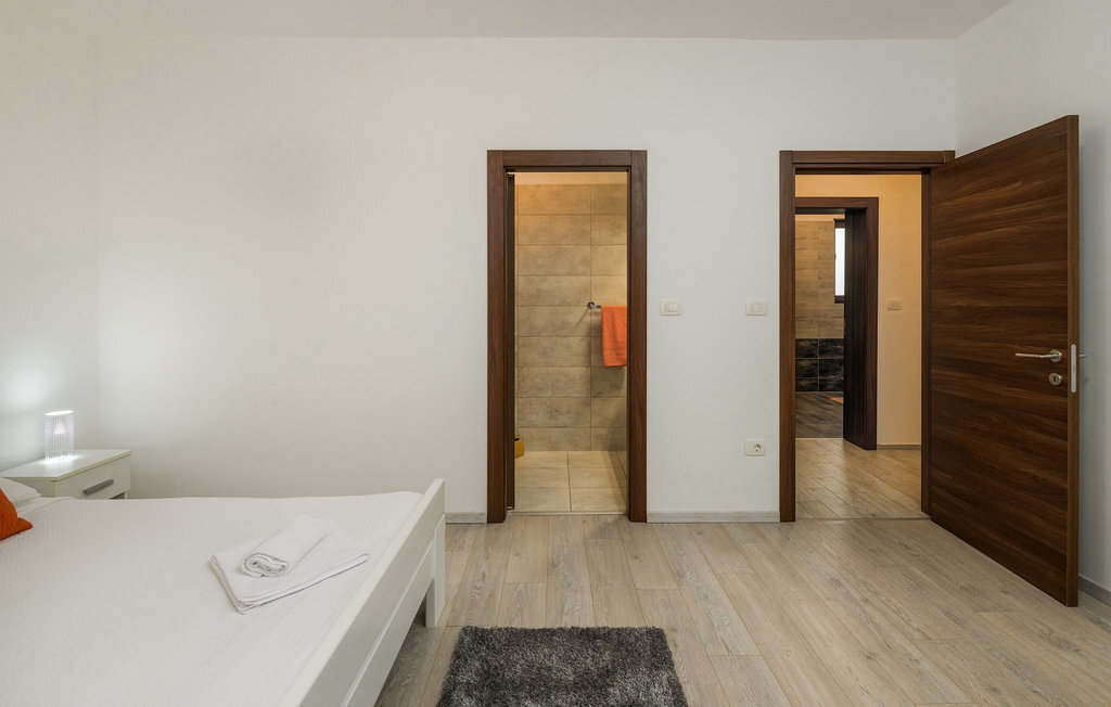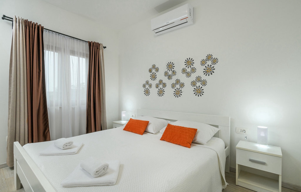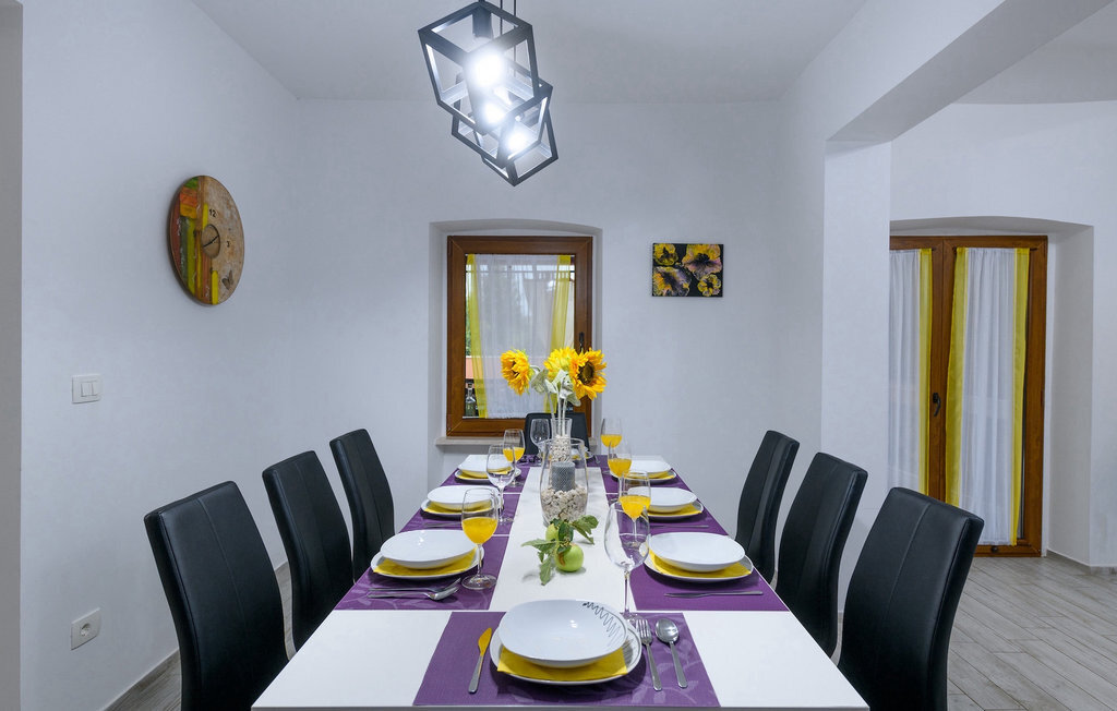 La magnifique villa Percan est le choix idéal pour les familles ou les groupes d'amis qui souhaitent se détendre dans un cadre magnifique, à seulement 3 km de la mer Adriatique. Vous pourrez également vous détendre sur les confortables chaises longues au bord de la piscine privée. Sur la terrasse, un coin repas en plein air avec un barbecue au charbon de bois est à votre disposition pour préparer de délicieux repas ou pour déguster un verre de votre boisson préférée. Plusieurs activités sont prévues pour les enfants : balançoires, trampoline et terrain de futsal. Le rez-de-chaussée se compose d'un salon aménagé avec soin, d'une cuisine entièrement équipée et d'une salle à manger spacieuse. Les quatre chambres (toutes climatisées) et les trois salles de bains se trouvent à l'étage.
