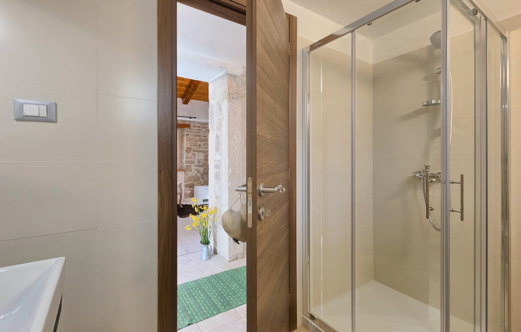 Vous rêvez de vacances reposantes et tranquilles entourées de magnifiques collines verdoyantes dans l'arrière-pays istrien ? Villa Cartolina est l'endroit idéal pour commencer vos vacances. Cette villa plutôt petite, mais très charmante, avec un joli jardin, peut accueillir 4 personnes dans 2 chambres. La villa a été rénovée en 2019, mais le style traditionnel et rustique se retrouve dans toute la maison, de l'extérieur à l'intérieur. Des murs de pierre solides ont été affinés avec des meubles clairs et romantiques, ce qui rend la villa très agréablement rustique et pratique. Au rez-de-chaussée se trouve la cuisine avec la salle à manger et la sortie sur la salle à manger ouverte. Au premier étage se trouvent les chambres à coucher avec salle de bain. De là, vous accédez à la grande terrasse avec vue. Vous vous y sentirez au calme, que vous dégustiez un café le matin sur la terrasse ou un verre de malvazija d'Istrie au bord de la piscine privée. À l'extérieur, vous pouvez non seulement vous reposer au bord de la piscine, mais aussi préparer des plats sur le barbecue et les déguster ensemble en plein air. Tout cela en vous relaxant les sens avec une vue sur la verdure idyllique. De là, vous pourrez visiter la belle petite ville voisine de Groznjan et la première plage n'est qu'à 15 km. Villa Cartolina vous attend!Villa Cartolina se trouve à proximité (environ 8 km) de la petite mais charmante ville de Groznjan, que l'on appelle depuis 1965 la ville des artistes. Cette ville l'est dans tous les sens du terme et c'est en été qu'elle est la plus animée. Promenez-vous dans les ruelles étroites, entourées de maisons en pierre, remplies de galeries et de musiciens de rue. Assistez également à d'intéressants festivals de jazz et achetez des souvenirs faits main par des artistes locaux ! Cette belle ville est entourée de collines dans l'arrière-pays istrien, non loin d'Umag (20 km), de Novigrad (24 km) ou de Porec (40 km), si vous cherchez à faire une excursion d'une journée - ce sont des villes qui valent la peine d'être visitées. Si vous souhaitez passer des vacances plus actives, vous pouvez également faire du vélo et de la randonnée sur l'un des chemins les plus connus - Parenzana (autrefois la ligne de chemin de fer).