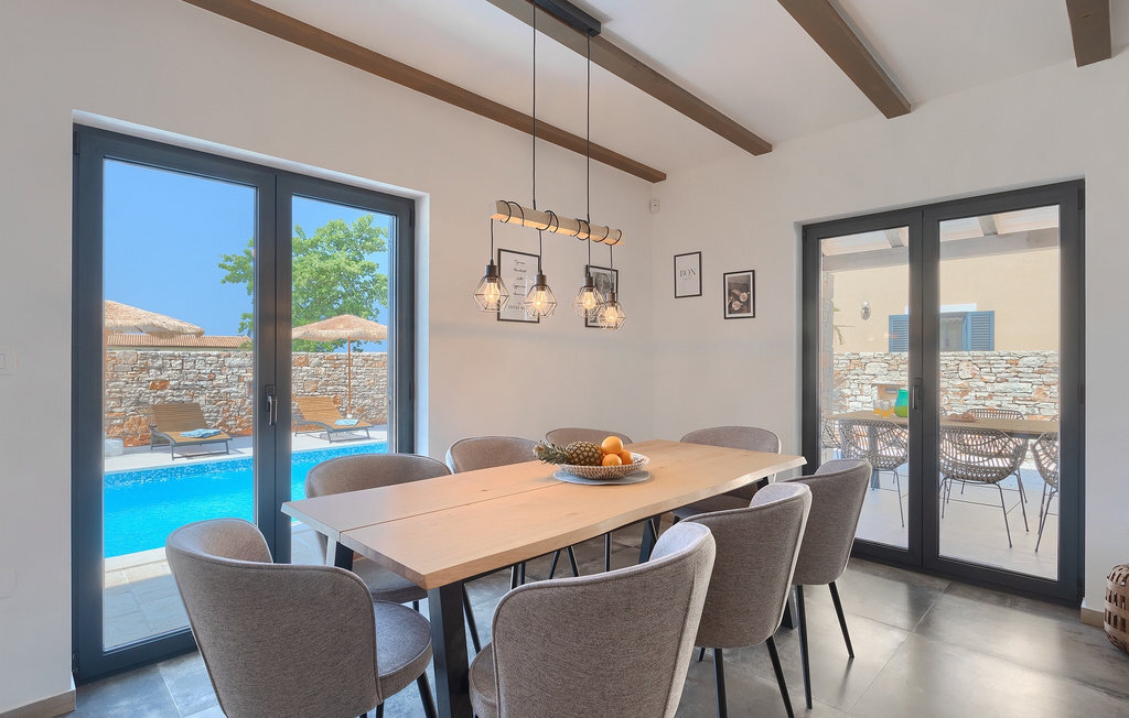 Cette charmante villa se trouve dans un village tranquille, entourée d'un environnement à couper le souffle. Devant la villa se trouve une piscine privée où vous pourrez profiter de journées ensoleillées avec votre boisson préférée à la main. À l'extérieur, vous disposez également d'une terrasse couverte avec barbecue et table à manger, où vous passerez de belles soirées d'été avec votre famille et vos amis sous le ciel étoilé.
