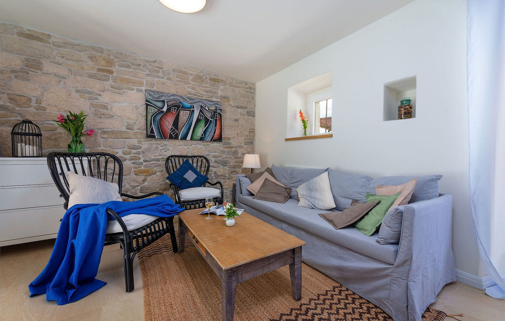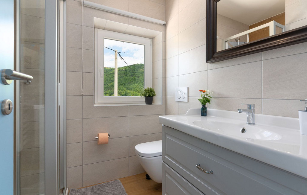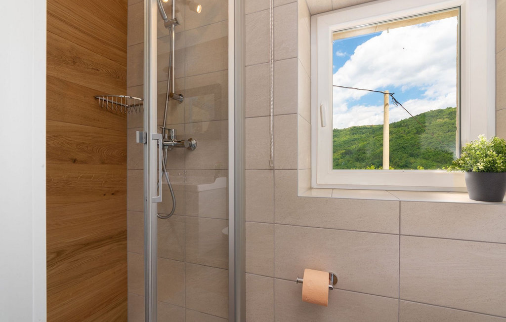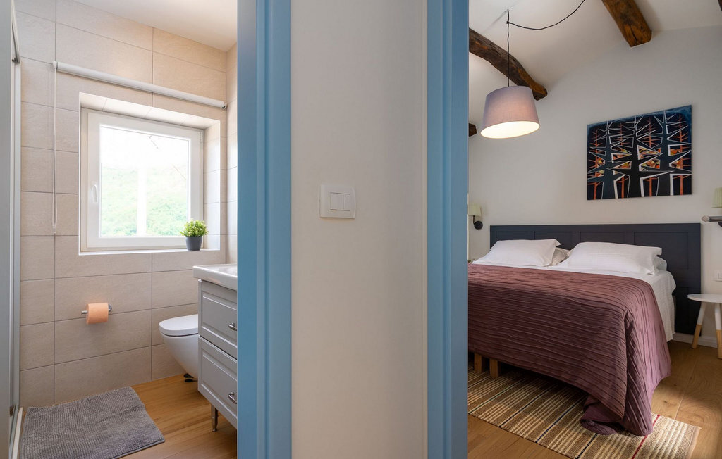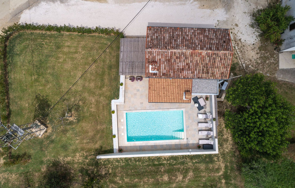 Petite, mais raffinée : la villa Flego offre de la place et du confort pour jusqu'à 4 personnes sur une surface habitable de 70 m2. Elle est donc idéale pour une petite famille ou un couple à la recherche de calme et d'intimité dans le centre de l'Istrie. La répartition des pièces est pratique et simple. Au rez-de-chaussée, vous trouverez un salon et une salle à manger ouverts avec une cuisine, où vous pourrez vous sentir comme chez vous. Un petit WC complète le rez-de-chaussée. Des escaliers mènent aux deux chambres à coucher du premier étage, où se trouve également une salle de bain. Toutes les chambres sont climatisées et disposent d'une télévision. L'extérieur de la villa n'est pas moins attrayant. Depuis le salon du rez-de-chaussée, une porte vitrée donne accès à une terrasse accueillante avec un charmant coin salon. On y trouve également un plan de travail avec évier et une cheminée extérieure qui produit non seulement une chaleur agréable lors des nuits fraîches, mais qui peut également être utilisée comme barbecue au charbon de bois. Juste à côté se trouvent la piscine privée et les chaises longues qui permettent de se détendre pendant les belles journées d'été. Vous imaginez-vous vous y détendre et profiter de la vue sur la verdure ? Vos vacances de rêve sont à portée de clic... Villa Flego se trouve dans le village idyllique de Kaldir, à seulement 8 km de la petite ville médiévale de Motovun. Motovun est connue pour ses monuments et sa vue spectaculaire sur les environs pittoresques avec ses collines, ses vignobles et la vallée magique de la Mirna. De plus, un large éventail d'activités de loisirs s'y offre à vous. Assistez aux fêtes locales ou au célèbre festival international du film. De nombreux restaurants et tavernes proposent des spécialités régionales telles que l'huile d'olive de qualité, le fromage et le jambon faits maison, des vins de qualité et bien sûr la truffe, pour laquelle la région est mondialement connue. Les amateurs de vacances actives seront ravis de découvrir les nombreuses pistes cyclables et sentiers de randonnée de la région. Bien entendu, vous ne devez pas limiter vos vacances à l'Istrie centrale. Faites des excursions d'une journée vers les villes côtières de Pula, Rovinj et Porec ou vers le parc national de Brijuni, puis retournez à la charmante Villa Flego après une journée bien remplie.