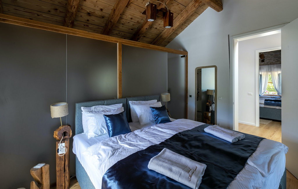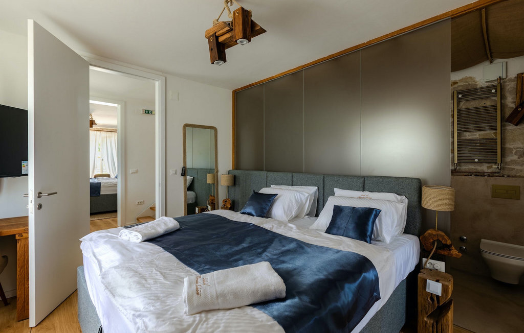 La villa Blazeni Miroslav Bulesic se trouve en Istrie, dans le petit village de Zudetici, à une courte distance en voiture de la ville côtière de Porec. Sur le terrain bien entretenu se trouve une piscine extérieure privée qui vous invite à vous rafraîchir les chaudes journées d'été. Détendez-vous sur les chaises longues qui se trouvent autour de la piscine. Pendant les jours plus froids, la piscine peut être chauffée. Un barbecue au charbon de bois est à votre disposition pour préparer de bons petits plats. La villa peut accueillir jusqu'à 8 personnes dans 4 chambres. L'intérieur exceptionnel et stylé vous sautera immédiatement aux yeux. Le rez-de-chaussée se compose d'une cuisine entièrement équipée, d'une salle à manger et d'un salon avec cheminée qui offre une atmosphère chaleureuse. Depuis le salon, vous avez un accès direct à la terrasse couverte. C'est l'endroit idéal pour savourer votre café du matin. Les amateurs de sport peuvent se réjouir de la salle de fitness. Au premier étage se trouvent deux chambres à coucher confortables. Au deuxième étage se trouvent également deux autres chambres à coucher. Toutes les chambres disposent d'une salle de bain privée, d'une télévision et de la climatisation. Un parking privé pouvant accueillir jusqu'à trois voitures est disponible. La villa est entièrement climatisée et offre un accès à Internet. Réservez la Villa Blazeni Miroslav Bulesic et découvrez les beautés de l'Istrie!De par sa situation, la Villa Blazeni Miroslav Bulesic est un excellent point de départ pour découvrir les trésors de l'Istrie. L'Istrie offre une multitude de belles plages de galets et de criques cachées aux eaux cristallines. La ville côtière de Porec se trouve à une courte distance en voiture. Vous y trouverez une excellente offre culinaire, une multitude de restaurants, de cafés et de boutiques. Nous vous recommandons de visiter la ville d'Umag. La région autour de la ville est célèbre pour sa production de vin et d'huile d'olive. De nombreux événements sportifs y sont organisés, comme l'ATP Croatia Open. Umag et ses environs sont réputés pour la production de vin et d'huile d'olive. De nombreuses manifestations sportives y sont organisées, comme par exemple l'ATP Croatia Open. Vous trouverez d'autres conseils dans notre guide MyIstria.