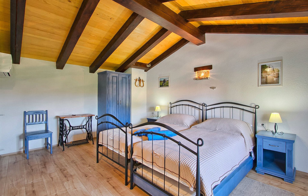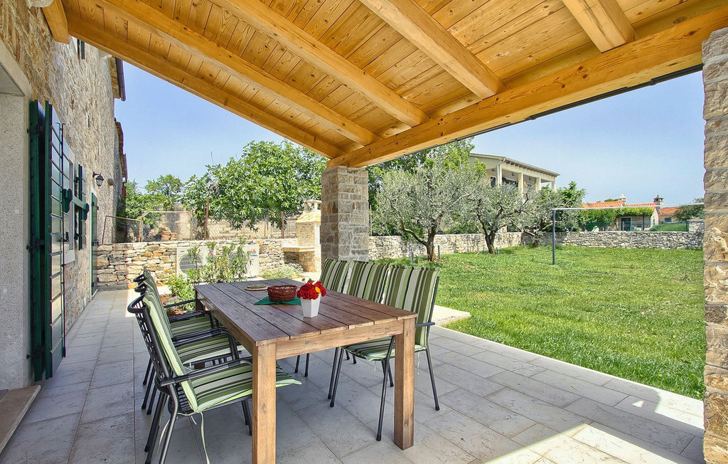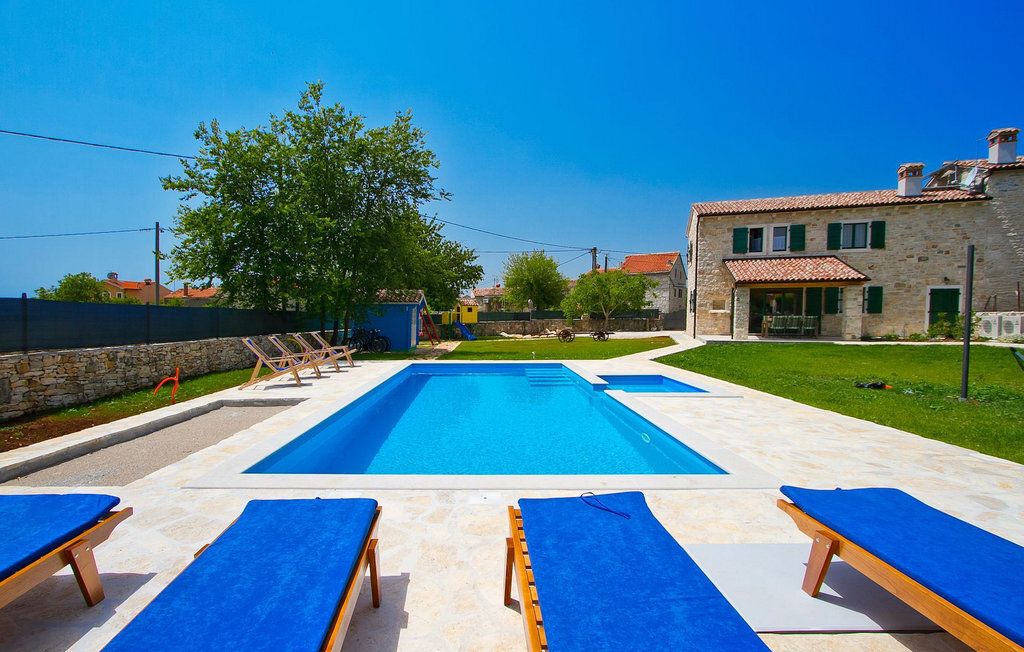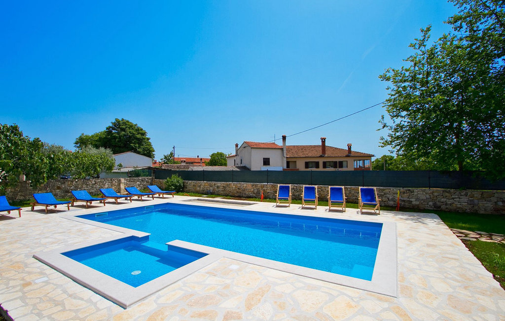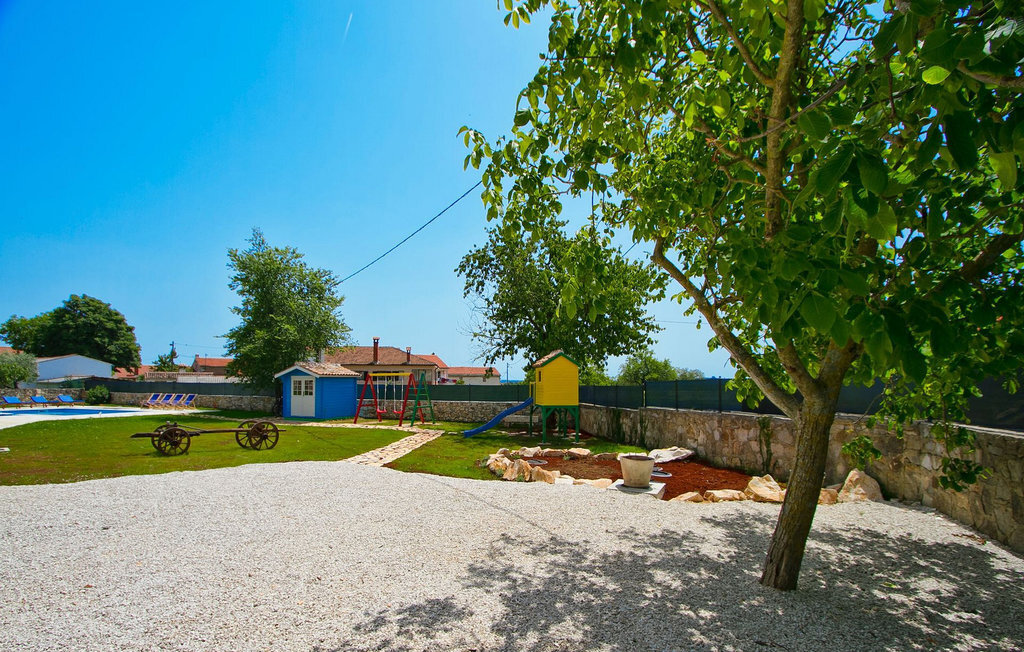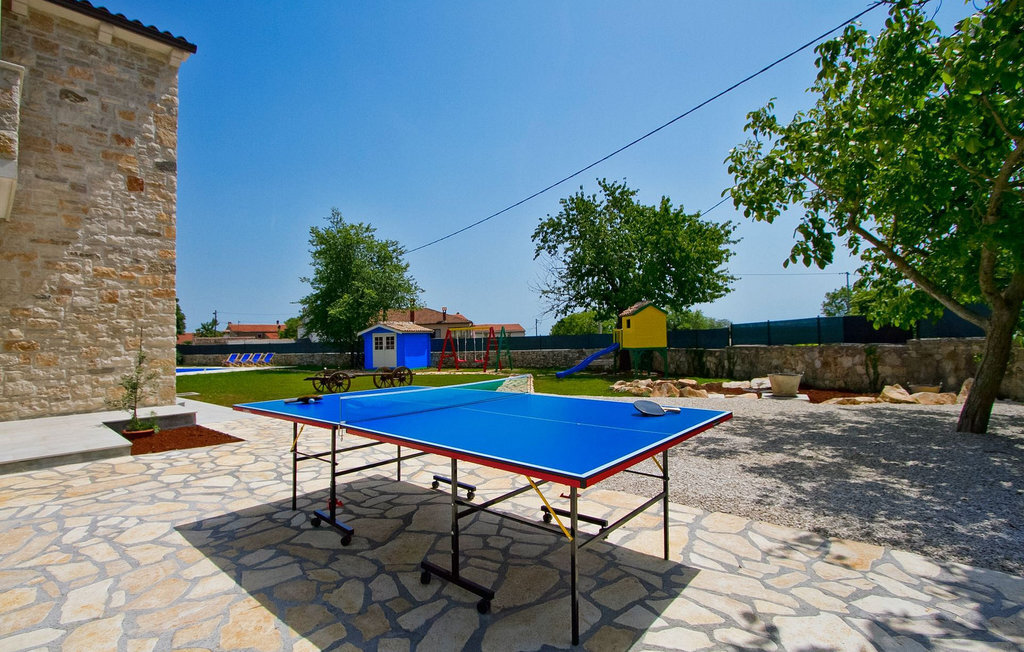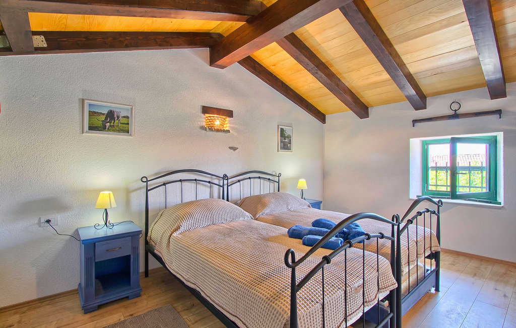 La Villa Soricevi Dvori se compose de deux maisons jumelées qui sont louées ensemble. La maison se trouve sur un terrain de 1000 m2 et peut accueillir jusqu'à 12 personnes (4+2 par maison). La villa dispose d'un grand jardin avec deux tables pour 6 personnes qui peuvent être réunies pour manger en plein air, ainsi que deux cheminées extérieures. Le point fort du jardin est la grande piscine privée avec parasols et chaises longues - parfaite pour se détendre ! Si vous voulez faire du sport, il y a un terrain de volley-ball et de badminton dans le jardin. Les enfants ont leur propre espace sur l'aire de jeux avec balançoires et toboggan. Si vous souhaitez explorer les environs en deux roues, 8 vélos sont à votre disposition. Il y a aussi un bâtiment séparé dans le jardin, où se trouve l'espace bien-être. Il se compose d'un beau jacuzzi intérieur, d'une douche, de chaises longues et d'un sauna finlandais. En ce qui concerne l'intérieur, toutes les chambres sont climatisées, aménagées avec des meubles de style shabby-chic et équipées de tous les appareils électroménagers. Au rez-de-chaussée, chacune des maisons jumelées dispose d'une cuisine, d'une salle à manger avec une table pour 6 personnes et d'un beau salon avec cheminée. Il y a également des toilettes séparées dans chaque partie. Dans la première maison, l'escalier intérieur mène au premier et au deuxième étage, où se trouvent deux chambres à coucher. Au premier étage, tu trouveras une chambre à coucher avec une belle terrasse privée. Dans la deuxième maison, l'escalier intérieur mène au premier étage, où se trouvent deux chambres à coucher. Depuis le couloir du premier étage, vous avez accès à la terrasse couverte. Les quatre chambres à coucher disposent d'une salle de bain privée avec douche, un confort dont les hôtes aiment profiter. Si vous rêvez de vacances idylliques en famille en Istrie, vous êtes au bon endroit.La villa Soricevi Dvori est située à Barat, un village sur les pentes de la vallée de Lim et près de Kanafanar. Entouré de champs, d'oliveraies, de vignobles sur la terre rouge typique, et de forêts de chênes. Barat est l'endroit idéal pour des vacances. Situé à 290 mètres d'altitude, loin de l'agitation, il offre air pur et tranquillité. Barat est situé sur le côté sud-ouest de la péninsule, à proximité de l'autoroute Y d'Istrie, qui permet de rejoindre en moins d'une demi-heure toutes les destinations importantes d'Istrie - Pula, Rovinj, Porec et d'autres villes. Près de Barat se trouve Dvigrad, les ruines d'une ville médiévale abandonnée.