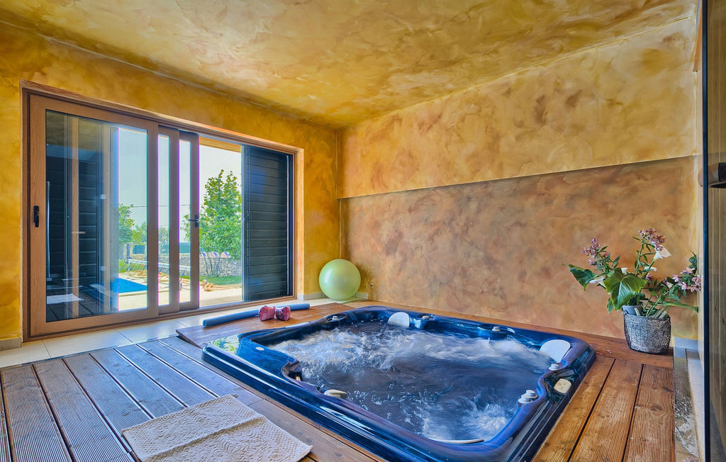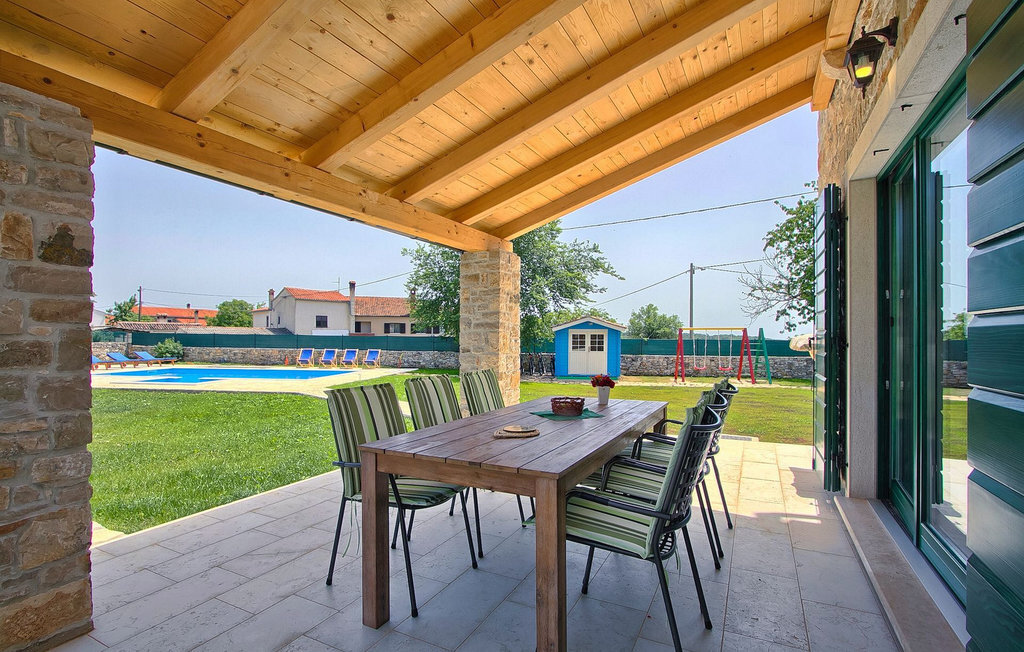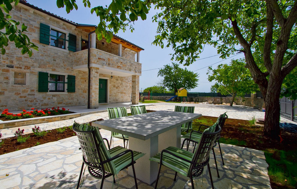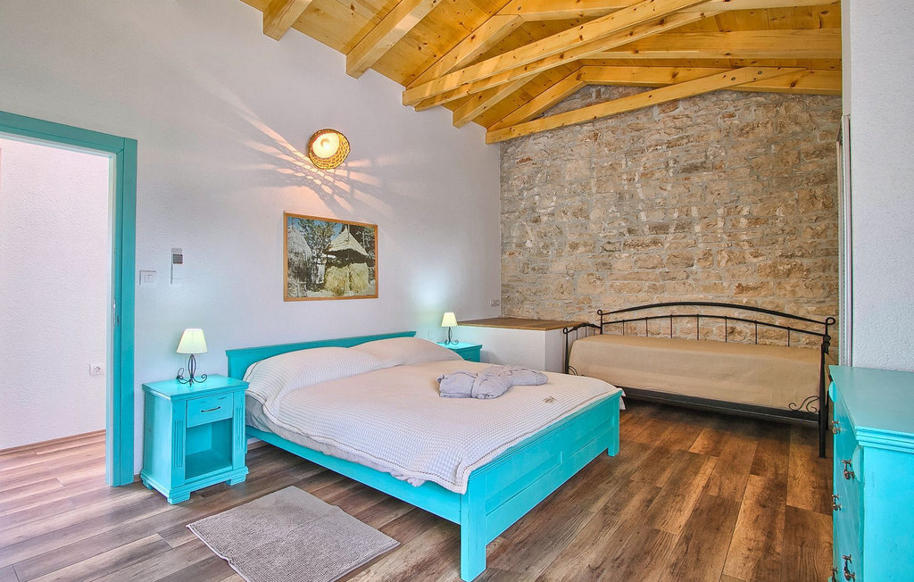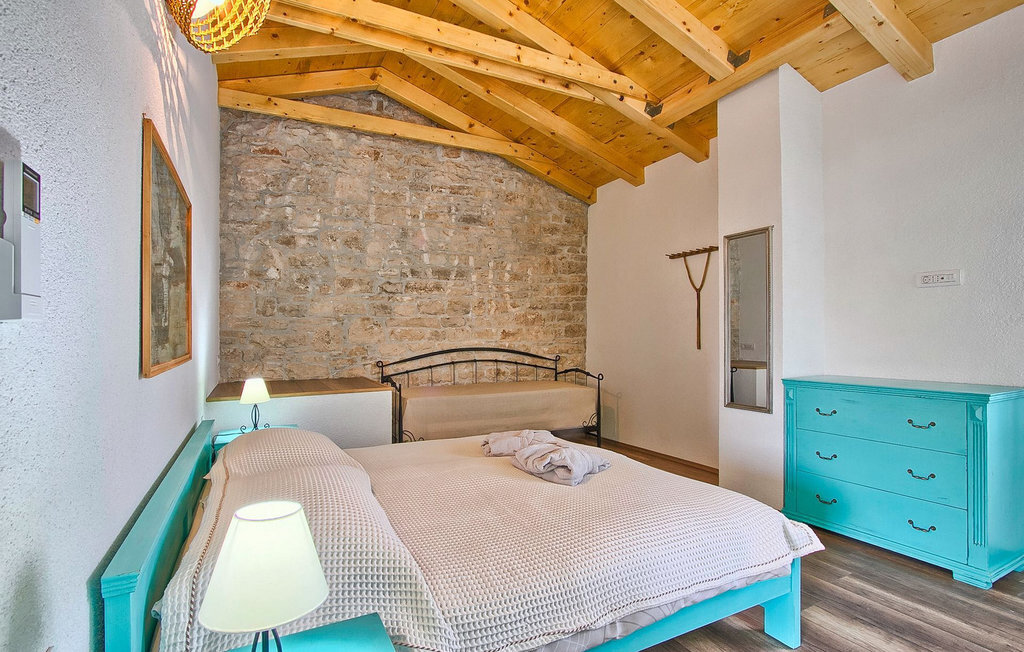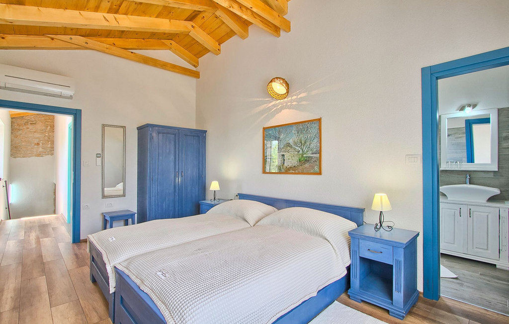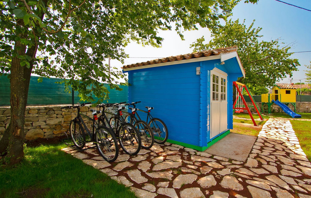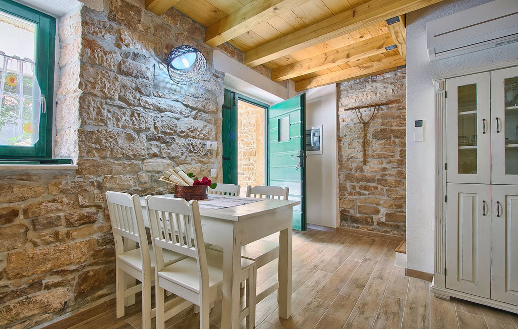 La Villa Soricevi Dvori se compose de deux maisons jumelées qui sont louées ensemble. La maison se trouve sur un terrain de 1000 m2 et peut accueillir jusqu'à 12 personnes (4+2 par maison). La villa dispose d'un grand jardin avec deux tables pour 6 personnes qui peuvent être réunies pour manger en plein air, ainsi que deux cheminées extérieures. Le point fort du jardin est la grande piscine privée avec parasols et chaises longues - parfaite pour se détendre ! Si vous voulez faire du sport, il y a un terrain de volley-ball et de badminton dans le jardin. Les enfants ont leur propre espace sur l'aire de jeux avec balançoires et toboggan. Si vous souhaitez explorer les environs en deux roues, 8 vélos sont à votre disposition. Il y a aussi un bâtiment séparé dans le jardin, où se trouve l'espace bien-être. Il se compose d'un beau jacuzzi intérieur, d'une douche, de chaises longues et d'un sauna finlandais. En ce qui concerne l'intérieur, toutes les chambres sont climatisées, aménagées avec des meubles de style shabby-chic et équipées de tous les appareils électroménagers. Au rez-de-chaussée, chacune des maisons jumelées dispose d'une cuisine, d'une salle à manger avec une table pour 6 personnes et d'un beau salon avec cheminée. Il y a également des toilettes séparées dans chaque partie. Dans la première maison, l'escalier intérieur mène au premier et au deuxième étage, où se trouvent deux chambres à coucher. Au premier étage, tu trouveras une chambre à coucher avec une belle terrasse privée. Dans la deuxième maison, l'escalier intérieur mène au premier étage, où se trouvent deux chambres à coucher. Depuis le couloir du premier étage, vous avez accès à la terrasse couverte. Les quatre chambres à coucher disposent d'une salle de bain privée avec douche, un confort dont les hôtes aiment profiter. Si vous rêvez de vacances idylliques en famille en Istrie, vous êtes au bon endroit.La villa Soricevi Dvori est située à Barat, un village sur les pentes de la vallée de Lim et près de Kanafanar. Entouré de champs, d'oliveraies, de vignobles sur la terre rouge typique, et de forêts de chênes. Barat est l'endroit idéal pour des vacances. Situé à 290 mètres d'altitude, loin de l'agitation, il offre air pur et tranquillité. Barat est situé sur le côté sud-ouest de la péninsule, à proximité de l'autoroute Y d'Istrie, qui permet de rejoindre en moins d'une demi-heure toutes les destinations importantes d'Istrie - Pula, Rovinj, Porec et d'autres villes. Près de Barat se trouve Dvigrad, les ruines d'une ville médiévale abandonnée.