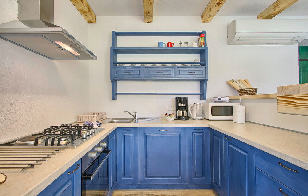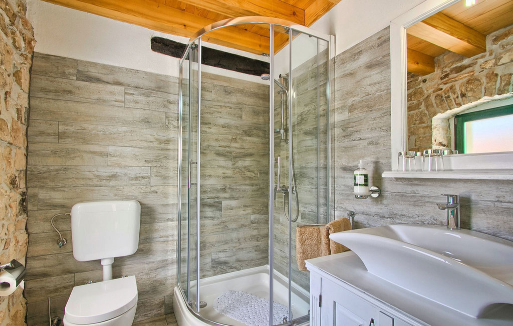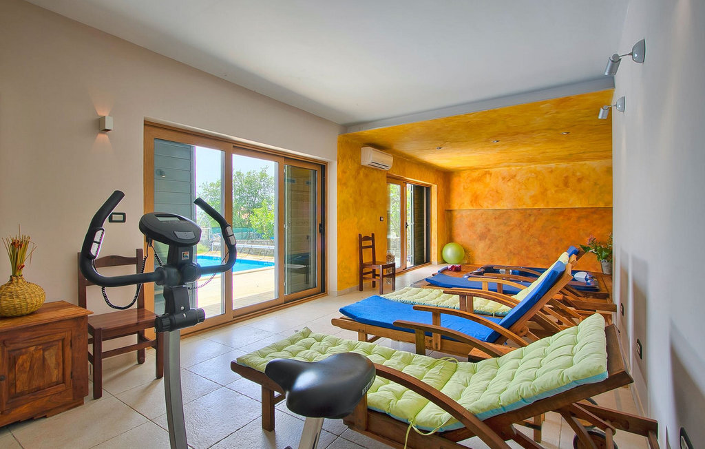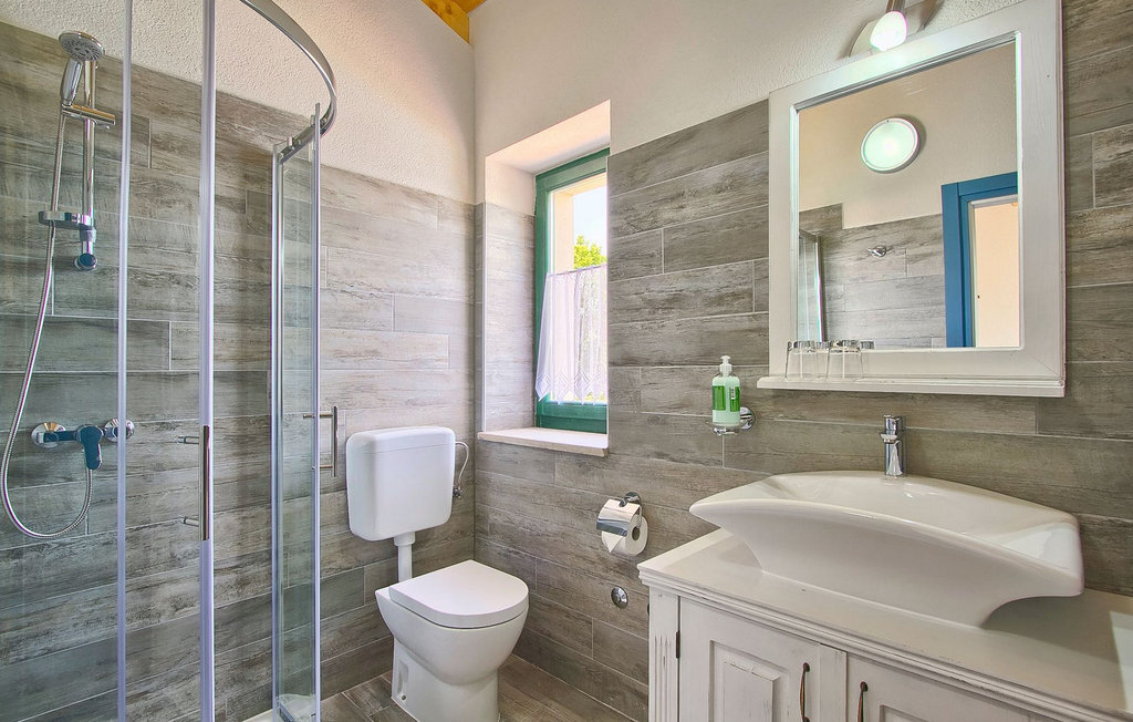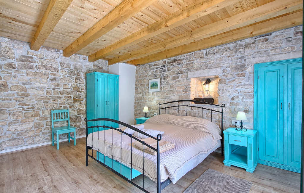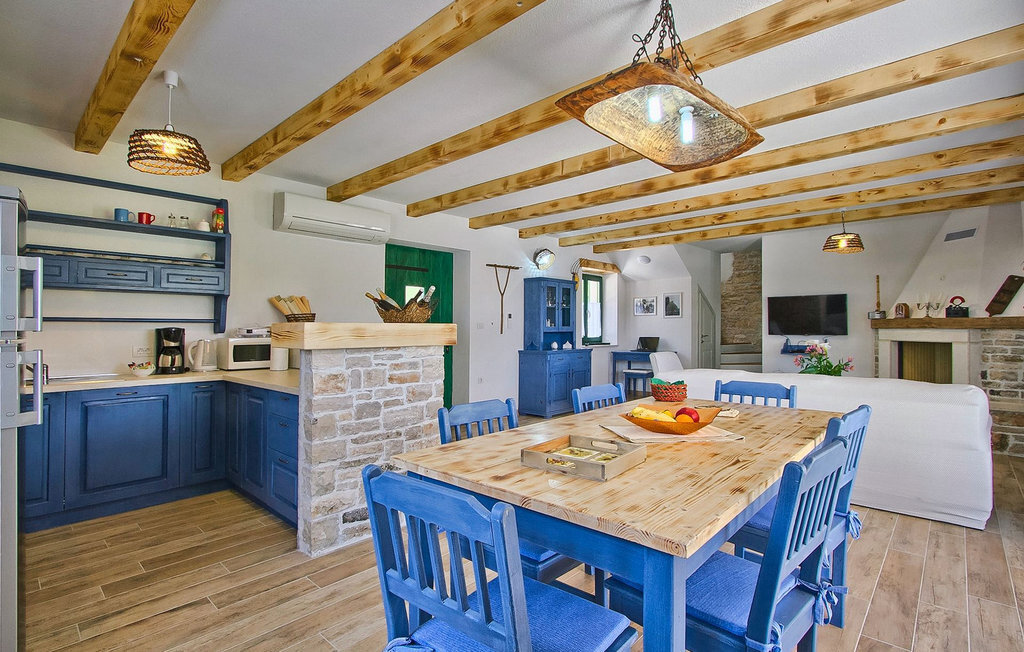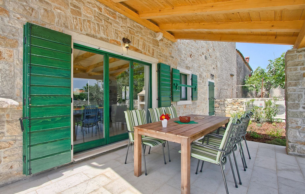 La Villa Soricevi Dvori se compose de deux maisons jumelées qui sont louées ensemble. La maison se trouve sur un terrain de 1000 m2 et peut accueillir jusqu'à 12 personnes (4+2 par maison). La villa dispose d'un grand jardin avec deux tables pour 6 personnes qui peuvent être réunies pour manger en plein air, ainsi que deux cheminées extérieures. Le point fort du jardin est la grande piscine privée avec parasols et chaises longues - parfaite pour se détendre ! Si vous voulez faire du sport, il y a un terrain de volley-ball et de badminton dans le jardin. Les enfants ont leur propre espace sur l'aire de jeux avec balançoires et toboggan. Si vous souhaitez explorer les environs en deux roues, 8 vélos sont à votre disposition. Il y a aussi un bâtiment séparé dans le jardin, où se trouve l'espace bien-être. Il se compose d'un beau jacuzzi intérieur, d'une douche, de chaises longues et d'un sauna finlandais. En ce qui concerne l'intérieur, toutes les chambres sont climatisées, aménagées avec des meubles de style shabby-chic et équipées de tous les appareils électroménagers. Au rez-de-chaussée, chacune des maisons jumelées dispose d'une cuisine, d'une salle à manger avec une table pour 6 personnes et d'un beau salon avec cheminée. Il y a également des toilettes séparées dans chaque partie. Dans la première maison, l'escalier intérieur mène au premier et au deuxième étage, où se trouvent deux chambres à coucher. Au premier étage, tu trouveras une chambre à coucher avec une belle terrasse privée. Dans la deuxième maison, l'escalier intérieur mène au premier étage, où se trouvent deux chambres à coucher. Depuis le couloir du premier étage, vous avez accès à la terrasse couverte. Les quatre chambres à coucher disposent d'une salle de bain privée avec douche, un confort dont les hôtes aiment profiter. Si vous rêvez de vacances idylliques en famille en Istrie, vous êtes au bon endroit.La villa Soricevi Dvori est située à Barat, un village sur les pentes de la vallée de Lim et près de Kanafanar. Entouré de champs, d'oliveraies, de vignobles sur la terre rouge typique, et de forêts de chênes. Barat est l'endroit idéal pour des vacances. Situé à 290 mètres d'altitude, loin de l'agitation, il offre air pur et tranquillité. Barat est situé sur le côté sud-ouest de la péninsule, à proximité de l'autoroute Y d'Istrie, qui permet de rejoindre en moins d'une demi-heure toutes les destinations importantes d'Istrie - Pula, Rovinj, Porec et d'autres villes. Près de Barat se trouve Dvigrad, les ruines d'une ville médiévale abandonnée.