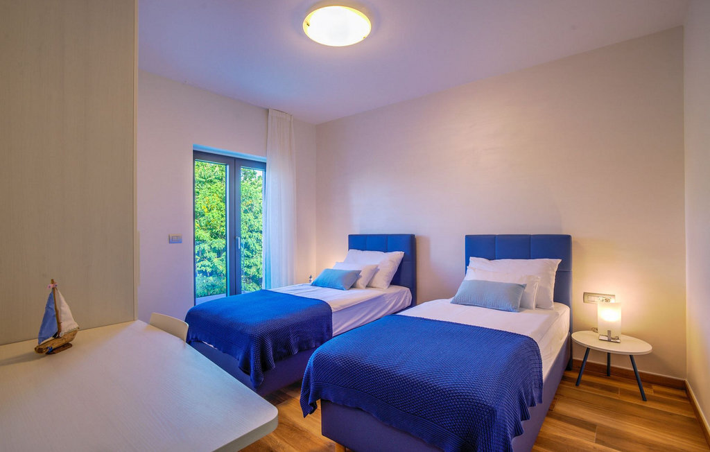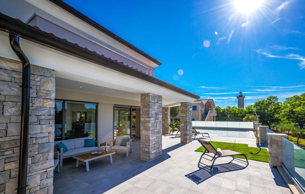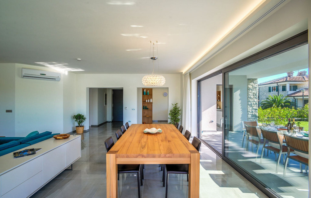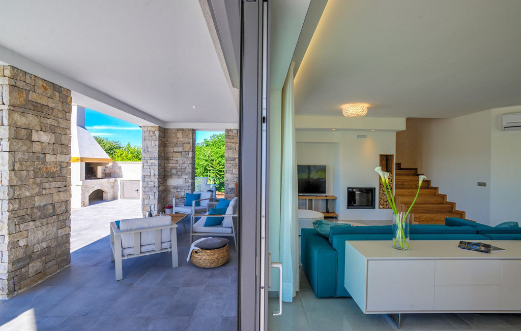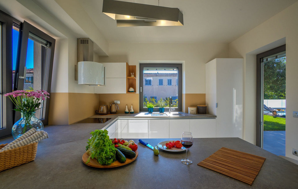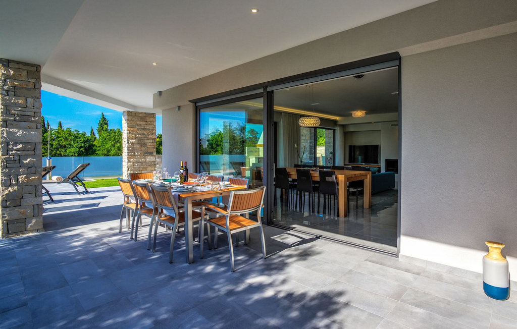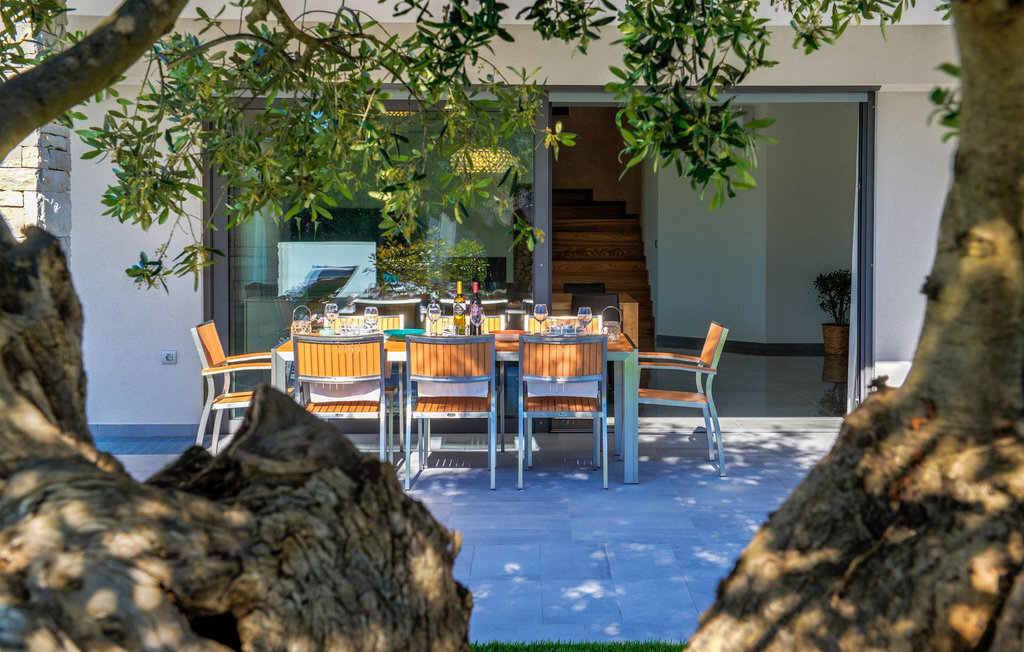 L'étonnante villa Vista Savudrija est sans aucun doute un excellent choix pour des vacances reposantes en famille ou entre amis. Cette villa spacieuse et moderne peut accueillir un total de 8 personnes sur 2 étages et 4 chambres à coucher. L'espace extérieur répondra certainement à toutes vos attentes en matière de vacances. Une piscine privée de 33 m² avec hydromassage occupera non seulement les enfants pendant de longues heures, mais vous offrira également un rafraîchissement bien nécessaire lors des chaudes journées d'été méditerranéennes. Détendez-vous au bord de la piscine sur les chaises longues, lisez votre livre préféré ou savourez simplement une boisson rafraîchissante. L'espace extérieur dispose également d'un vieil olivier étonnant, sous l'ombre naturelle duquel vous pourrez vous libérer complètement du stress quotidien. Un beau salon couvert est également parfait pour savourer votre café du matin. De là, vous entrez dans le spacieux espace de vie intérieur, composé d'un salon, d'une salle à manger et d'une cuisine entièrement équipée. Cette pièce est entièrement climatisée, remplie de lumière naturelle grâce aux fenêtres de la galerie et décorée de façon moderne avec des détails en bois et en bleu. À cet étage, les hôtes trouveront une chambre avec un lit double et une salle de bain avec douche. Au deuxième étage, il y a trois autres chambres, deux avec deux lits simples et une avec un lit double, ainsi que deux salles de bains avec une douche chacune. Donc, si vous voulez explorer l'Istrie et vivre dans une belle villa moderne, Vista Savudrija est peut-être ce qu'il vous faut. Commencez à planifier votre aventure croate dès aujourd'hui et découvrez pourquoi les clients l'aiment ici!La villa Vista Savudrija est située au cœur de Savudrija, dans la partie la plus au nord-ouest de la côte istrienne. Les environs sont connus pour la planche à voile et le golf. La villa se trouve à proximité des plages, des bars et des restaurants. Savudrija, autrefois un village de pêcheurs, n'est qu'à une courte distance en voiture de la ville côtière d'Umag. Umag offre un grand choix d'activités de loisirs et de commodités touristiques, ainsi qu'un petit port. D'excellents restaurants, bars et cafés se trouvent dans ses jolies rues pavées. Chaque mois de juillet, l'ATP Croatia Open s'y déroule, avec de nombreux grands noms du tennis masculin. Le paysage magique de l'Istrie centrale, célèbre pour ses charmantes villes médiévales sur les collines ainsi que pour ses délices gastronomiques, est facilement accessible par de très bonnes routes.