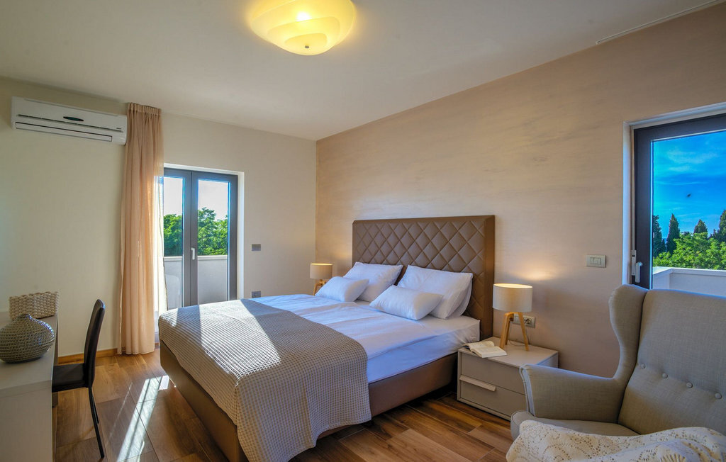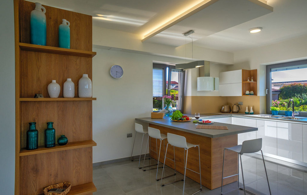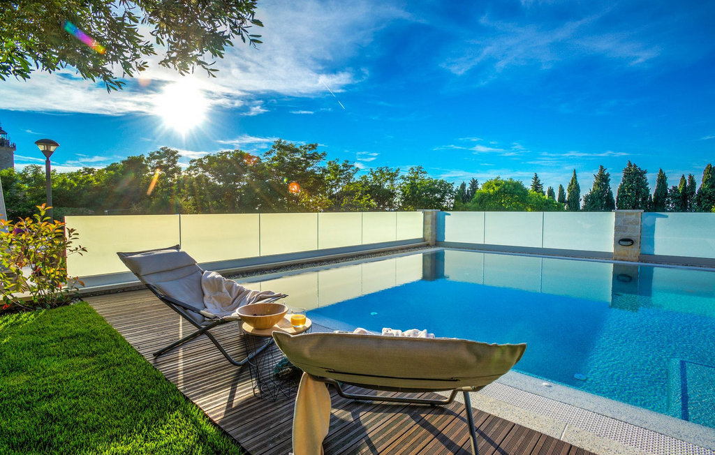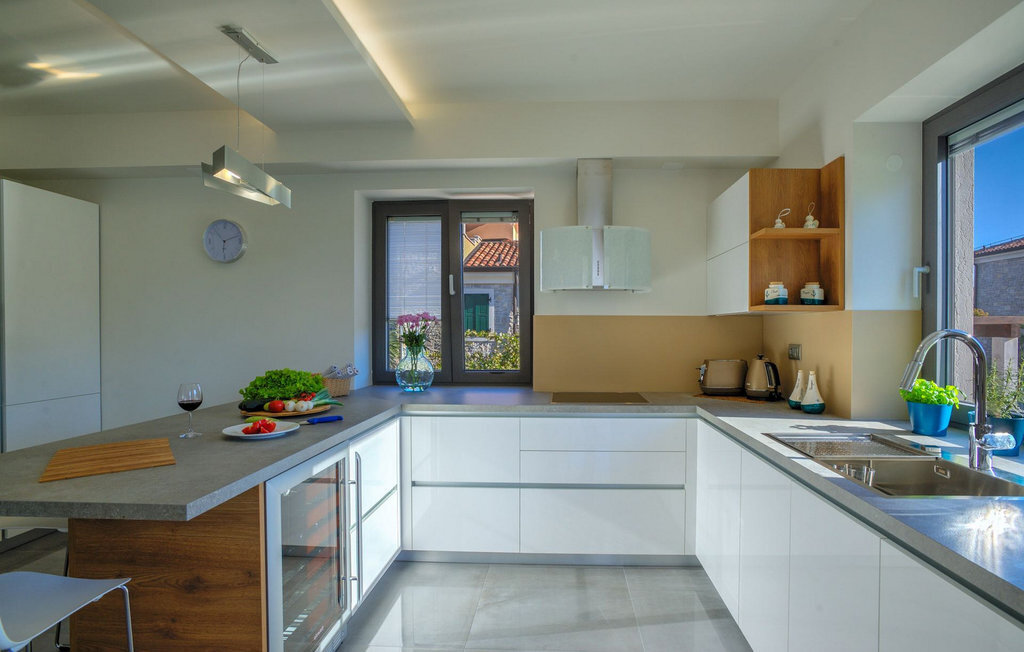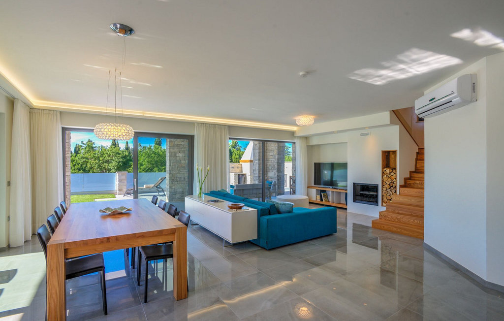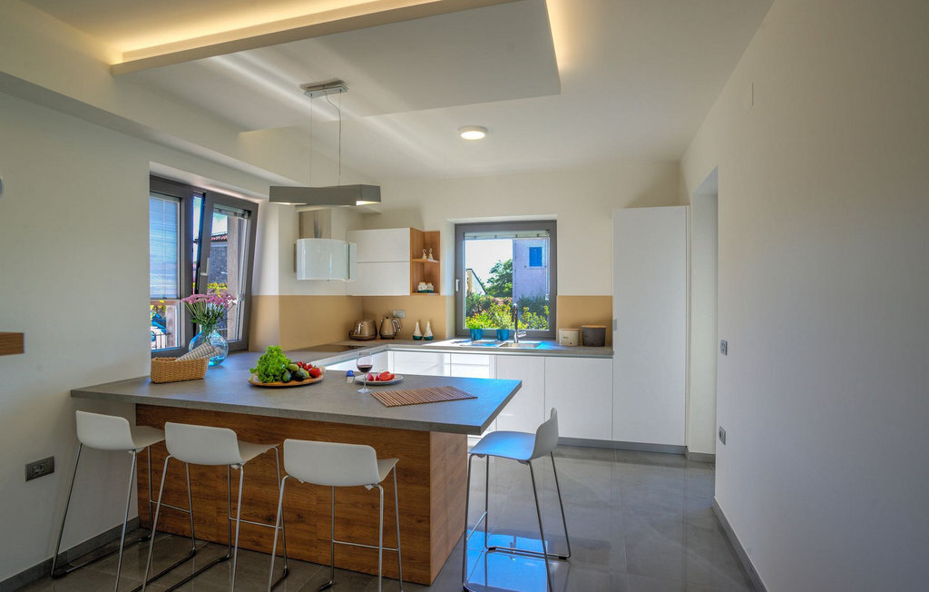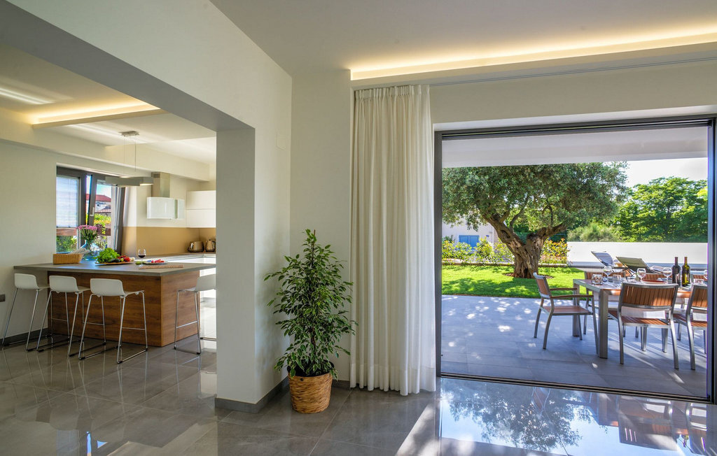 L'étonnante villa Vista Savudrija est sans aucun doute un excellent choix pour des vacances reposantes en famille ou entre amis. Cette villa spacieuse et moderne peut accueillir un total de 8 personnes sur 2 étages et 4 chambres à coucher. L'espace extérieur répondra certainement à toutes vos attentes en matière de vacances. Une piscine privée de 33 m² avec hydromassage occupera non seulement les enfants pendant de longues heures, mais vous offrira également un rafraîchissement bien nécessaire lors des chaudes journées d'été méditerranéennes. Détendez-vous au bord de la piscine sur les chaises longues, lisez votre livre préféré ou savourez simplement une boisson rafraîchissante. L'espace extérieur dispose également d'un vieil olivier étonnant, sous l'ombre naturelle duquel vous pourrez vous libérer complètement du stress quotidien. Un beau salon couvert est également parfait pour savourer votre café du matin. De là, vous entrez dans le spacieux espace de vie intérieur, composé d'un salon, d'une salle à manger et d'une cuisine entièrement équipée. Cette pièce est entièrement climatisée, remplie de lumière naturelle grâce aux fenêtres de la galerie et décorée de façon moderne avec des détails en bois et en bleu. À cet étage, les hôtes trouveront une chambre avec un lit double et une salle de bain avec douche. Au deuxième étage, il y a trois autres chambres, deux avec deux lits simples et une avec un lit double, ainsi que deux salles de bains avec une douche chacune. Donc, si vous voulez explorer l'Istrie et vivre dans une belle villa moderne, Vista Savudrija est peut-être ce qu'il vous faut. Commencez à planifier votre aventure croate dès aujourd'hui et découvrez pourquoi les clients l'aiment ici!La villa Vista Savudrija est située au cœur de Savudrija, dans la partie la plus au nord-ouest de la côte istrienne. Les environs sont connus pour la planche à voile et le golf. La villa se trouve à proximité des plages, des bars et des restaurants. Savudrija, autrefois un village de pêcheurs, n'est qu'à une courte distance en voiture de la ville côtière d'Umag. Umag offre un grand choix d'activités de loisirs et de commodités touristiques, ainsi qu'un petit port. D'excellents restaurants, bars et cafés se trouvent dans ses jolies rues pavées. Chaque mois de juillet, l'ATP Croatia Open s'y déroule, avec de nombreux grands noms du tennis masculin. Le paysage magique de l'Istrie centrale, célèbre pour ses charmantes villes médiévales sur les collines ainsi que pour ses délices gastronomiques, est facilement accessible par de très bonnes routes.