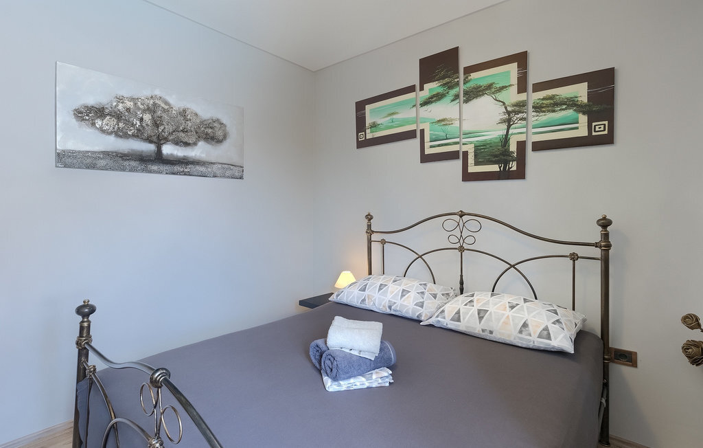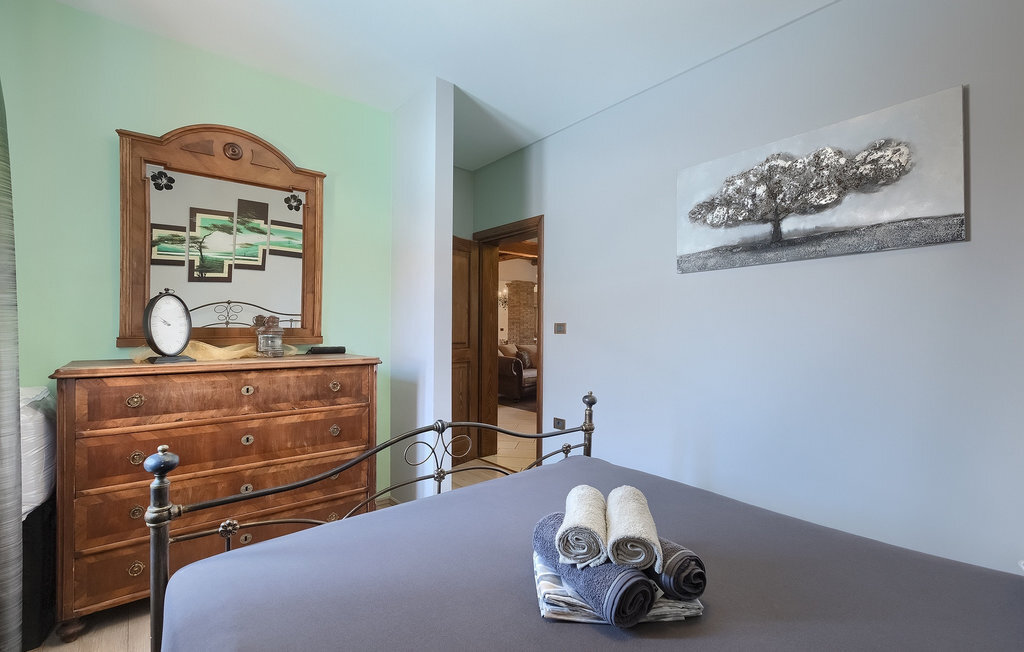 L'appartement du rez-de-chaussée offre deux chambres (une avec un lit double et une avec deux lits simples), une salle de bain, une salle à manger pouvant accueillir jusqu'à six personnes et une cuisine entièrement équipée.