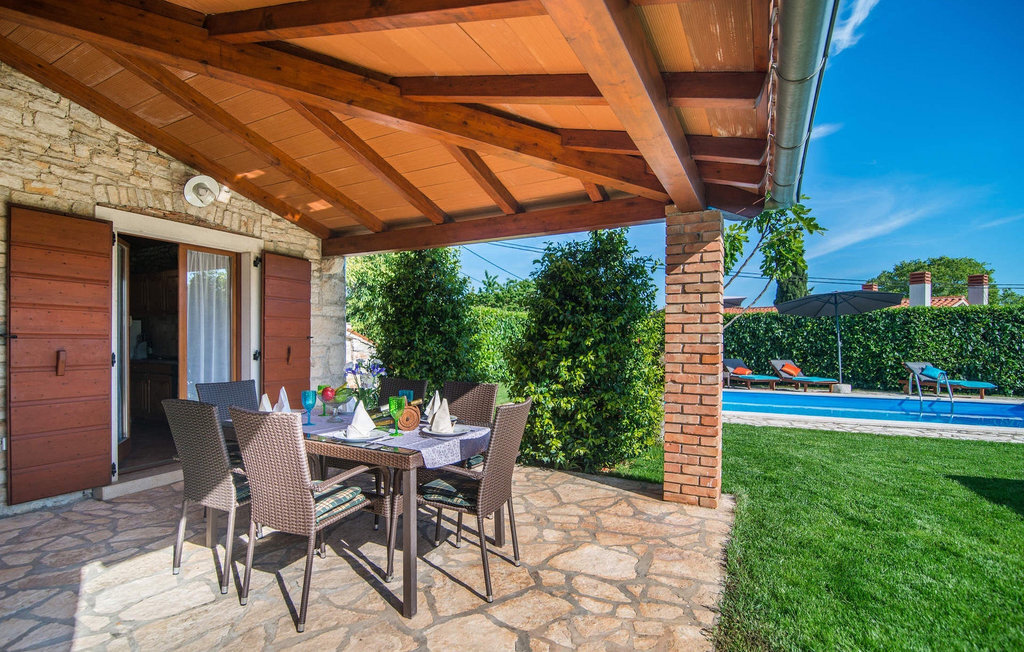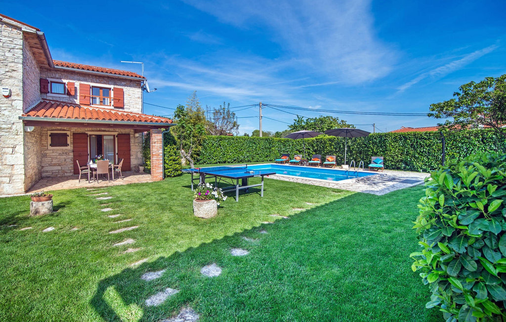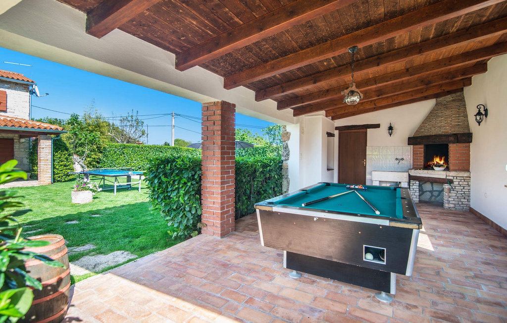 Vous rêvez de passer des vacances tranquilles en famille ou entre amis dans une maison de vacances typiquement istrienne, où vous trouverez tout ce dont vous avez besoin pour passer des vacances parfaites ? La Villa Petric vous offre tout ce dont vous avez besoin pour passer des vacances de rêve. La charmante villa en pierre Petric est située dans un magnifique espace vert. Vous passerez les journées ensoleillées de vos vacances près de la piscine spacieuse au milieu de la verdure. À l'extérieur, vous trouverez une magnifique terrasse couverte avec une table à manger où vous pourrez profiter des chaudes soirées d'été. Pour les fans de barbecue, la terrasse dispose également d'un barbecue en pierre où vous pourrez préparer vos plats préférés. Mais ce n'est pas tout ! Dans le jardin de la villa, vous avez également la possibilité de jouer au billard ou au ping-pong avec vos amis.