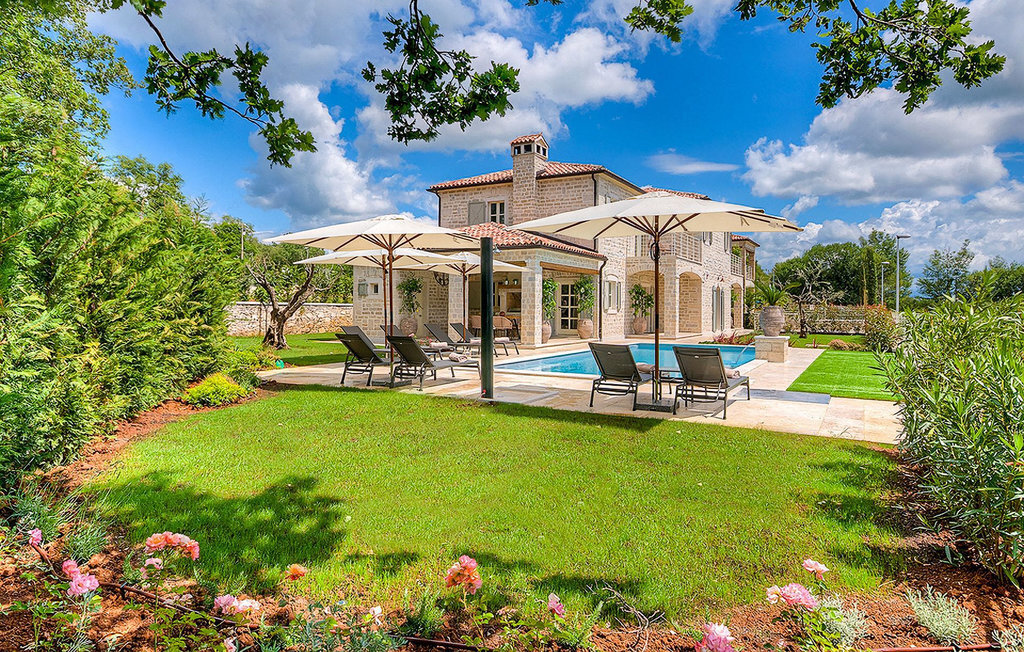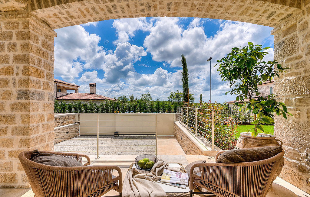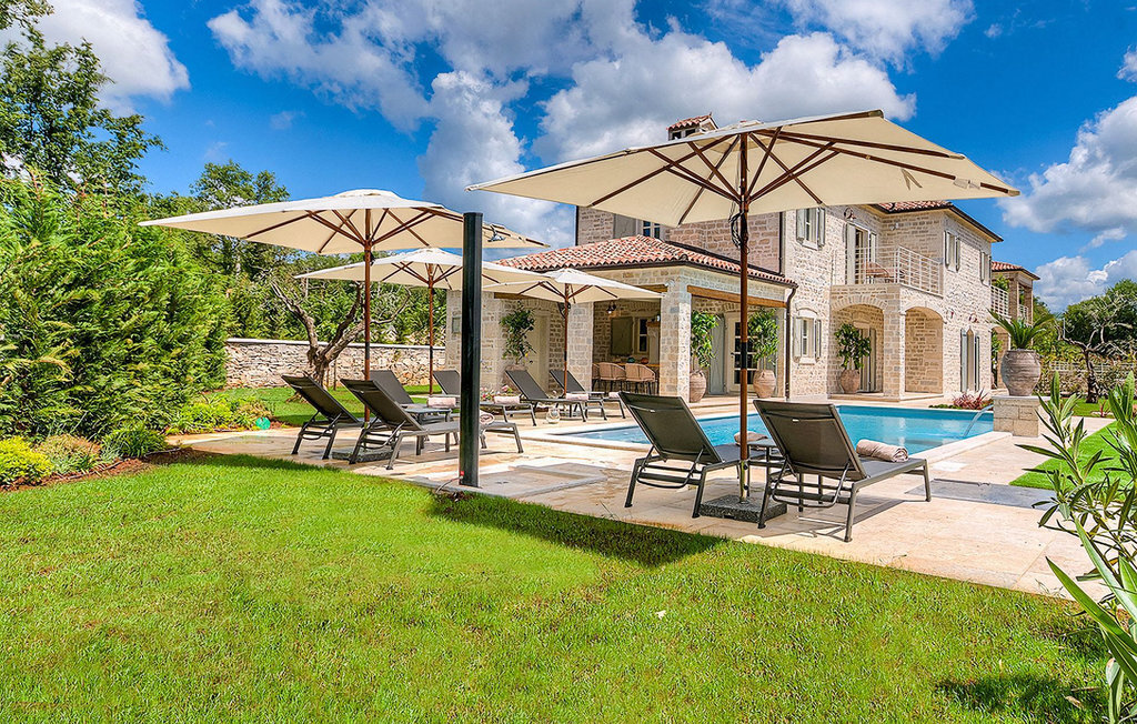 Cette villa de rêve, avec la villa Elli, la villa Nevia et la villa Zoe, fait partie d'un projet de luxe avec 5600 m2 de terrain privé, qui offre aux hôtes de ces 4 villas un jardin bio avec des légumes de saison, un fitness en plein air, 2 courts de tennis, 2 terrains de pétanque, ainsi que des terrains de sport pour le handball, le football, le basket-ball et le volley-ball. Pour une véritable expérience de l'Istrie, on peut également observer sur la propriété 3 boscarins, des bovins à longues cornes blancs et gris, symbole de la région.