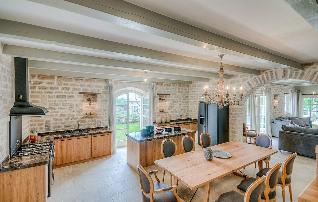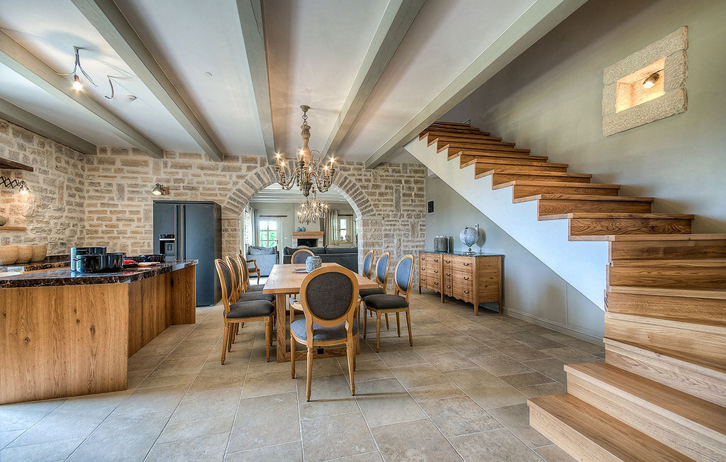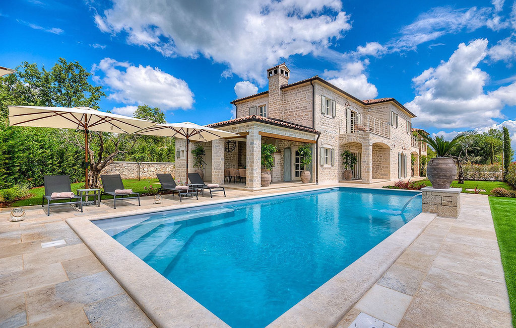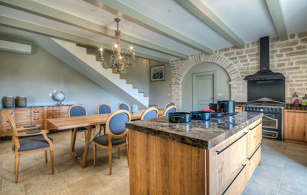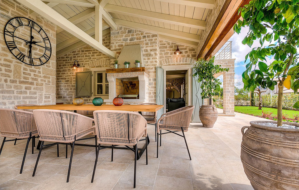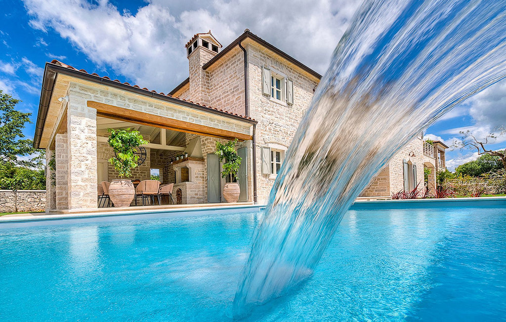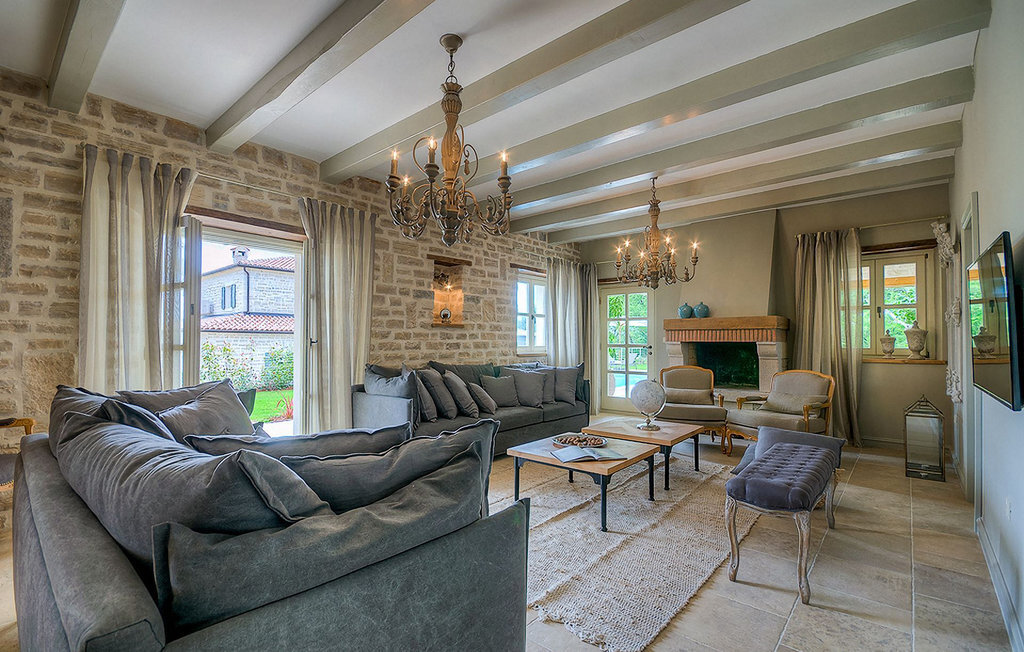 Élégante, stylée et très bien située, au milieu du paysage pittoresque de l'Istrie, mais toujours à proximité des plages ensoleillées et des villes côtières animées, la Villa Elena offre un hébergement luxueux où vous pourrez profiter de chaque minute de vos vacances en toute décontraction. Le rez-de-chaussée est entièrement consacré à la détente. L'espace magnifique et spacieux est divisé par une arche en pierre en zones de salon, de salle à manger et de cuisine, avec d'immenses portes-fenêtres qui laissent entrer une abondance de lumière chaude d'Istrie. Les murs en pierre naturelle, les plafonds à poutres en bois et la magnifique cheminée créent une atmosphère chaleureuse et accueillante, tandis que le mélange de meubles modernes et vintage, ainsi que l'équipement exquis, vous procurent un confort de première classe. Trois chambres à coucher sont réparties sur l'étage supérieur, tandis que la quatrième au rez-de-chaussée s'ouvre directement sur la séduisante piscine privée, l'endroit merveilleux pour se reposer et se détendre. La jolie véranda couverte, avec son authentique barbecue intégré et sa grande table à manger, est un refuge attrayant contre la chaleur de l'été, ainsi que l'endroit parfait pour des repas savoureux en plein air.