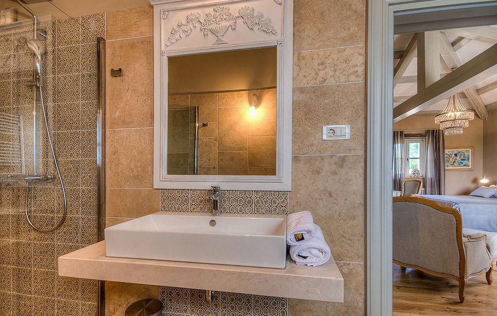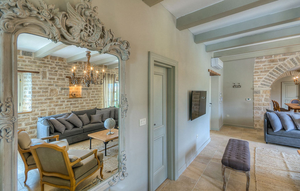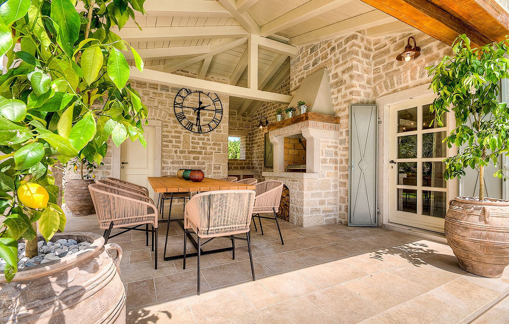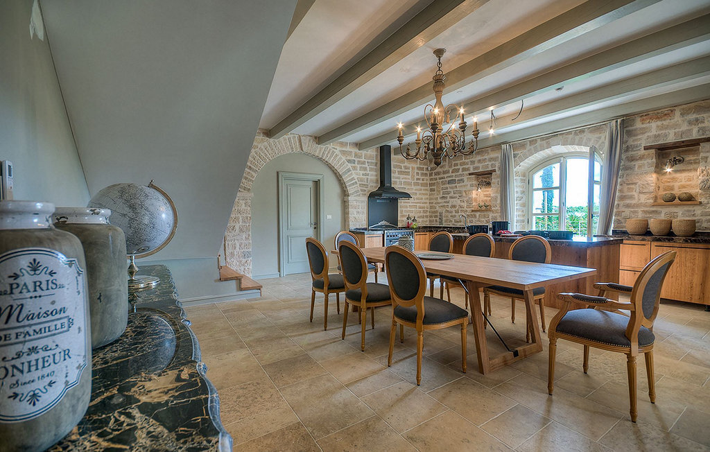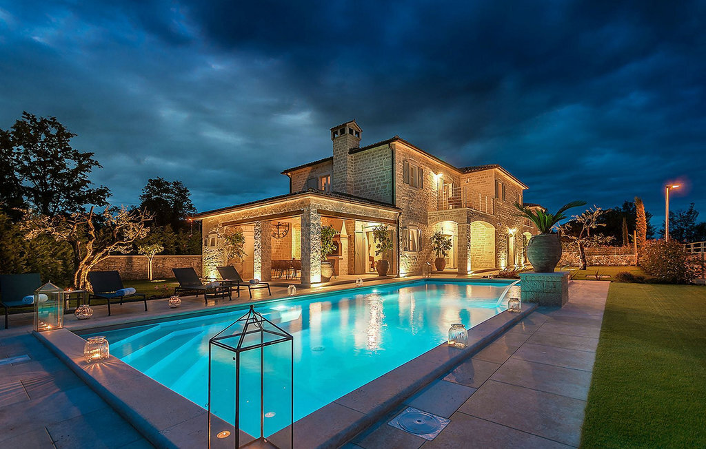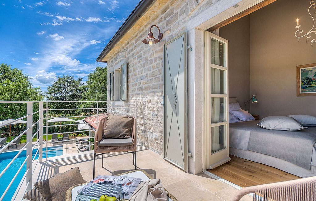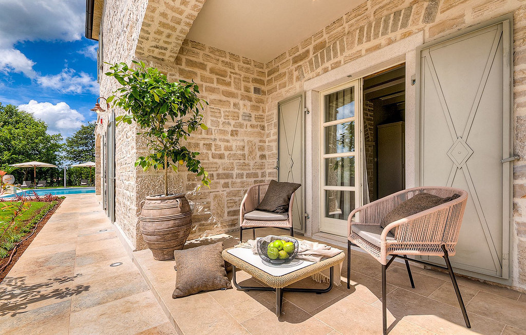 Élégante, stylée et très bien située, au milieu du paysage pittoresque de l'Istrie, mais toujours à proximité des plages ensoleillées et des villes côtières animées, la Villa Elena offre un hébergement luxueux où vous pourrez profiter de chaque minute de vos vacances en toute décontraction. Le rez-de-chaussée est entièrement consacré à la détente. L'espace magnifique et spacieux est divisé par une arche en pierre en zones de salon, de salle à manger et de cuisine, avec d'immenses portes-fenêtres qui laissent entrer une abondance de lumière chaude d'Istrie. Les murs en pierre naturelle, les plafonds à poutres en bois et la magnifique cheminée créent une atmosphère chaleureuse et accueillante, tandis que le mélange de meubles modernes et vintage, ainsi que l'équipement exquis, vous procurent un confort de première classe. Trois chambres à coucher sont réparties sur l'étage supérieur, tandis que la quatrième au rez-de-chaussée s'ouvre directement sur la séduisante piscine privée, l'endroit merveilleux pour se reposer et se détendre. La jolie véranda couverte, avec son authentique barbecue intégré et sa grande table à manger, est un refuge attrayant contre la chaleur de l'été, ainsi que l'endroit parfait pour des repas savoureux en plein air.