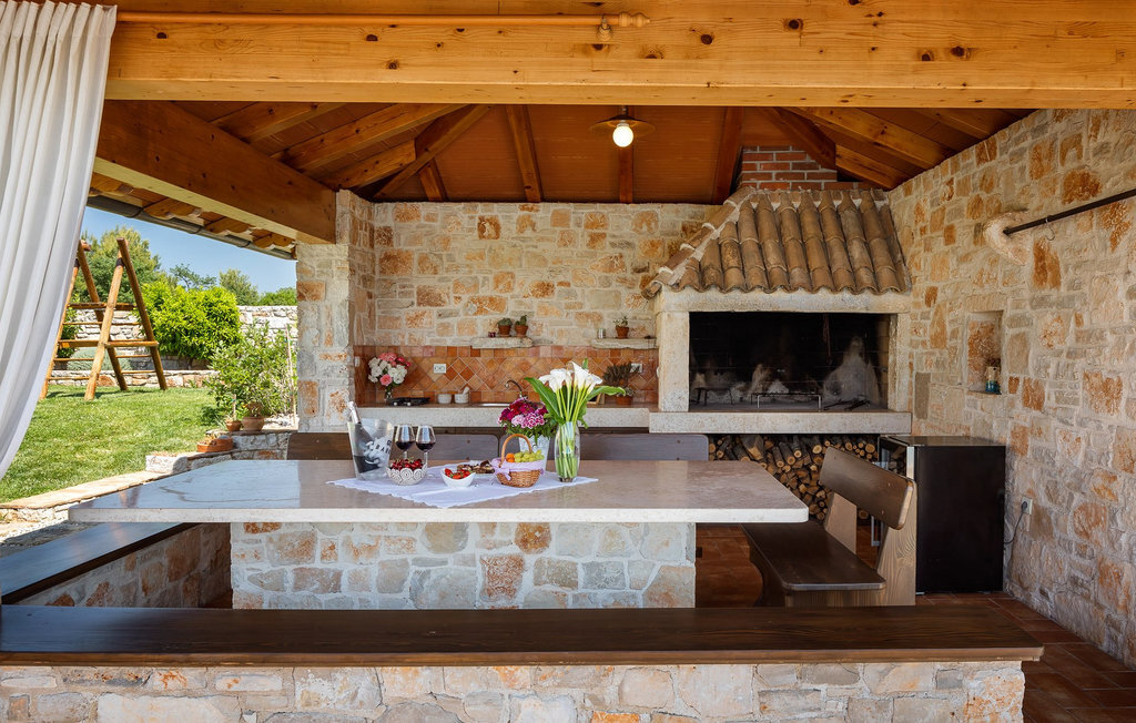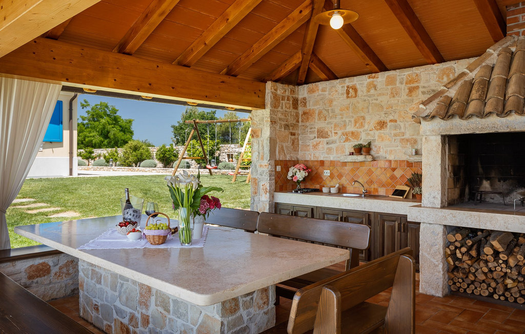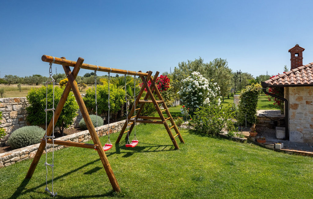 C'est exactement la villa idéale pour des vacances en famille. Outre le fait qu'elle est magnifiquement construite et aménagée, son emplacement est tout simplement parfait. Vous n'aurez pas besoin d'utiliser votre voiture, car le centre-ville se trouve à quelques minutes à pied, tout comme la plage de galets blancs de Fazana, les magasins, les restaurants, etc... Le parc national de Brijuni n'est qu'à 10 minutes en bateau. La villa est située sur un grand terrain avec une piscine aux dimensions généreuses, un espace repas couvert et une aire de jeux pour les enfants. Deux chambres à coucher doubles et deux salles de bains sont à votre disposition. La villa est climatisée et équipée d'une connexion WLAN. Des vélos sont également disponibles, ainsi qu'une table de ping-pong, etc. En somme, c'est parfait.