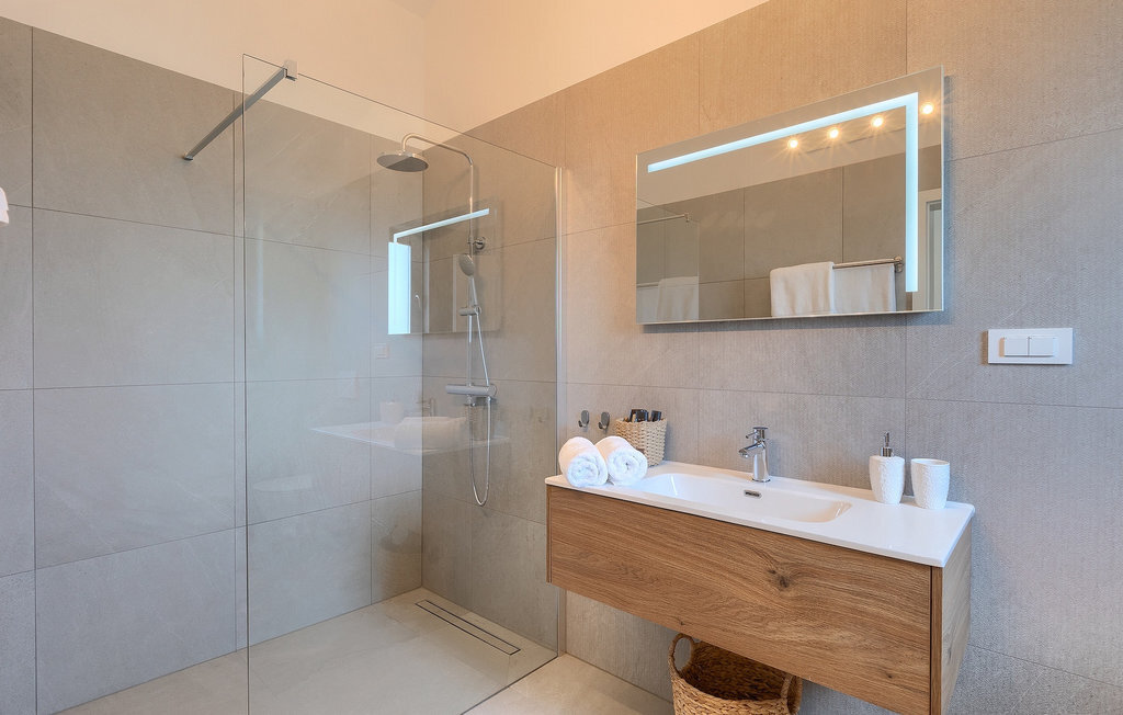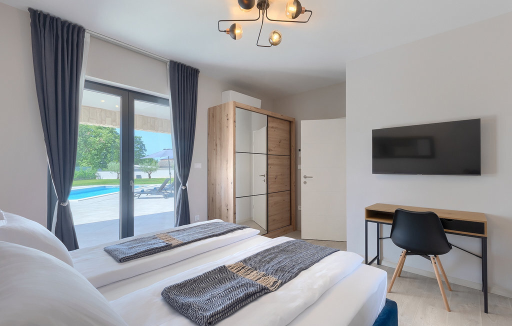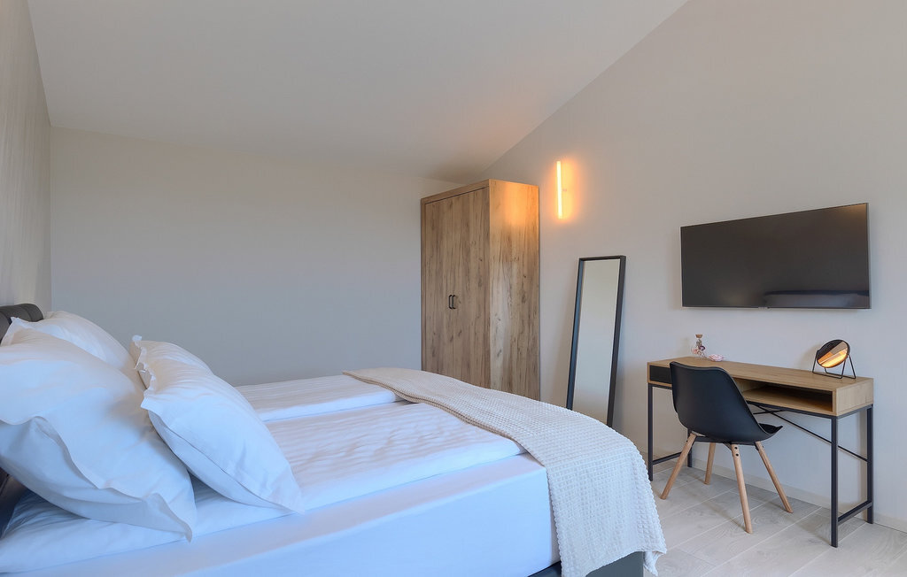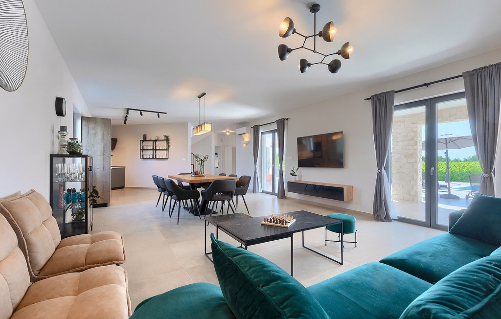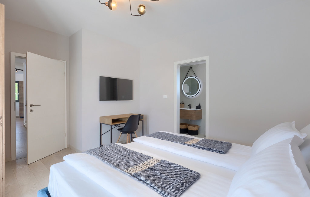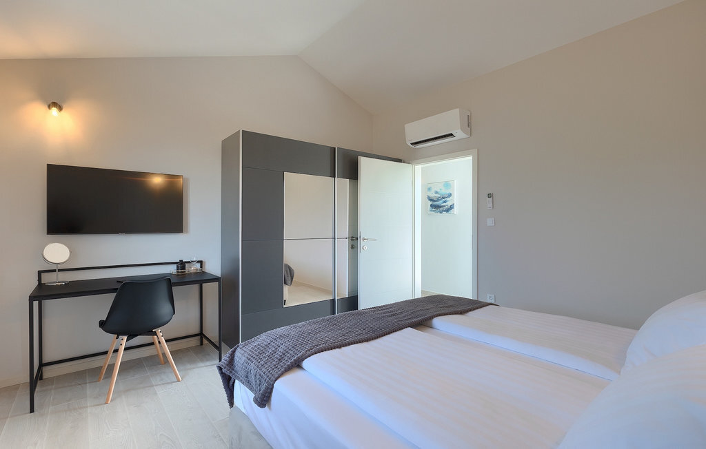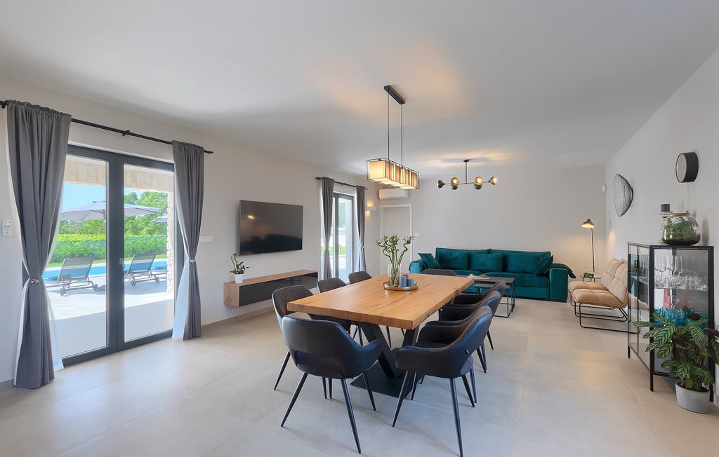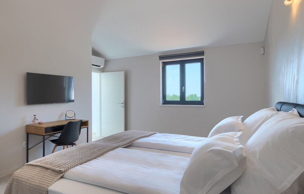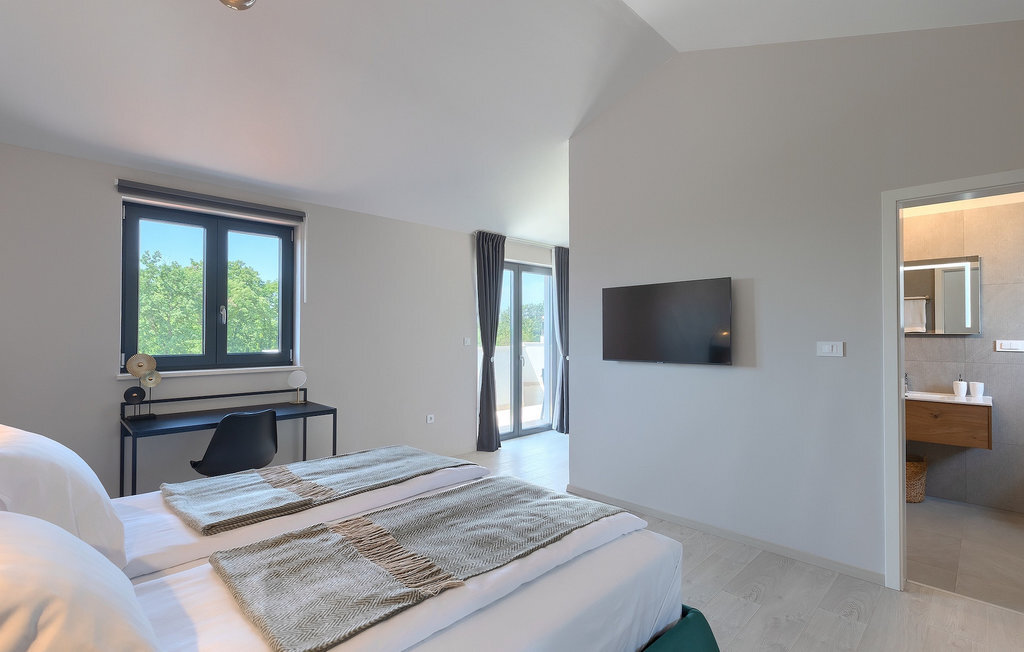 Si vous cherchez une villa pour des vacances reposantes, la Villa Sun Istria est le choix idéal pour vous. Cette charmante villa dispose de quatre chambres pouvant accueillir jusqu'à huit personnes. Trois chambres se trouvent au premier étage. Les chambres sont lumineuses et confortables. Chaque chambre dispose d'un lit double, d'une télévision et de la climatisation. Une chambre dispose d'une salle de bain privée et d'un accès au balcon. Les deux autres chambres utilisent une autre salle de bain qui se trouve au même étage. La quatrième chambre se trouve au rez-de-chaussée et dispose d'une salle de bain privée, d'un lit double, d'une télévision et de la climatisation. Au rez-de-chaussée de la villa, vous trouverez un salon avec un canapé et une télévision, qui communique avec la salle à manger et une cuisine entièrement équipée. Toute la zone est climatisée.