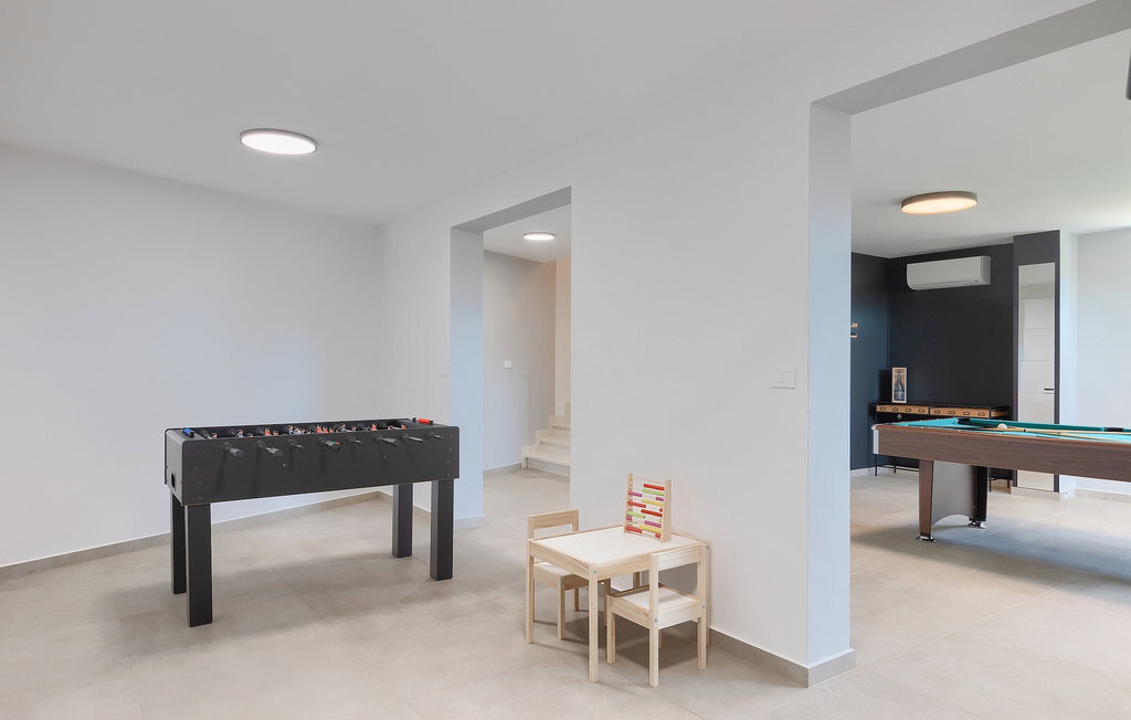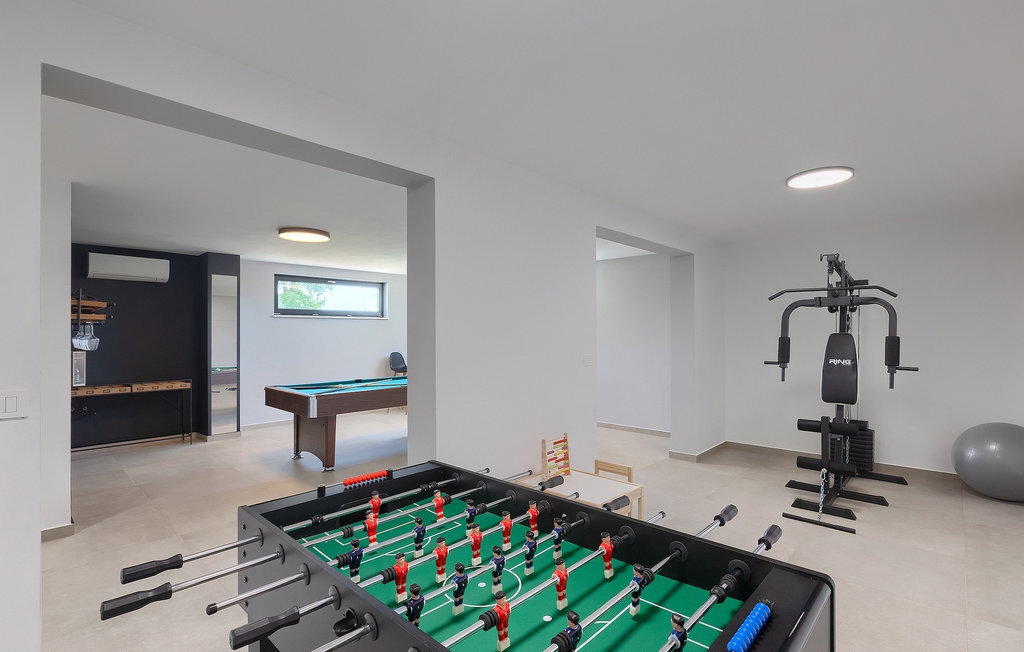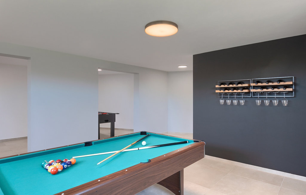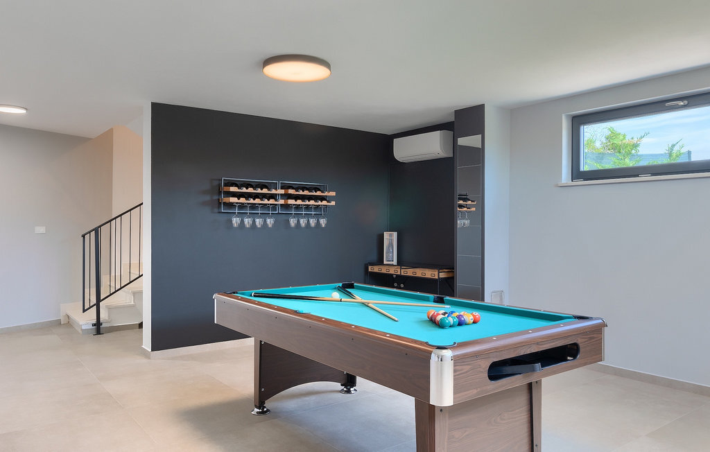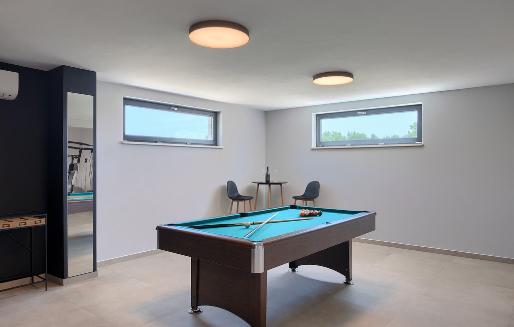 Le sous-sol de la villa offre une salle où vous pourrez vous détendre en jouant au billard ou au baby-foot. Pour les clients qui souhaitent rester actifs pendant leurs vacances, il y a également un coin fitness. À côté de la maison se trouve une terrasse couverte et dans le jardin, vous trouverez également un espace couvert avec une table à manger où vous pourrez déguster de délicieux plats préparés sur le barbecue au charbon de bois qui est à votre disposition. Dans le jardin de la villa, vous trouverez une piscine et des chaises longues où vous pourrez vous détendre en lisant un livre, en buvant une boisson rafraîchissante ou en jouant au badminton. Pour nos petits hôtes, vous trouverez dans le jardin une aire de jeux pour enfants et un trampoline. La propriété est entièrement clôturée et dispose d'un parking privé pour 6 voitures. Réservez votre hébergement à la Villa Sun Istria et passez des vacances inoubliables en famille ou entre amis.La Villa Sun Istria se trouve à proximité de Vinjan, une ville istrienne située sur une colline. Les ruelles sinueuses de cette charmante ville témoignent du riche héritage historique de ce lieu, tout en offrant une vue spectaculaire sur la mer depuis l'ancienne terrasse sur la place, à laquelle on accède par une arche vénitienne. Vinjan est connu pour son observatoire astronomique ainsi que pour sa gastronomie traditionnelle exceptionnelle, que vous pourrez déguster dans les nombreux restaurants et agritourismes des environs. Il existe de nombreux sentiers de randonnée et pistes cyclables, dont l'un des plus beaux est le sentier historique Parenzana de l'ancien chemin de fer, qui offre également un voyage unique en train touristique le long de la route. L'ancienne ville romaine de Pore, à 10 km de la villa, offre plus d'animation avec des plages divines, d'excellents restaurants et cafés et une vie nocturne riche. Ne manquez pas de visiter la célèbre basilique d'Euphrasius, la marque de fabrique de Pore, raison pour laquelle la ville est également appelée "la ville des mosaïques". Visitez la grotte de Baredine ou l'un des parcs aquatiques à proximité et passez les meilleures vacances de tous les temps !