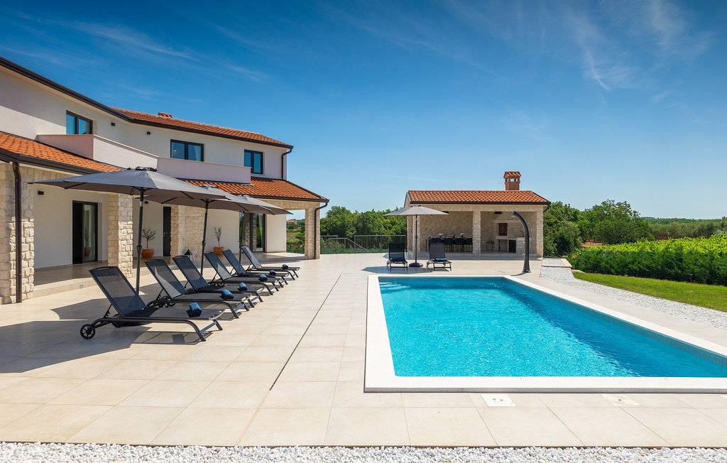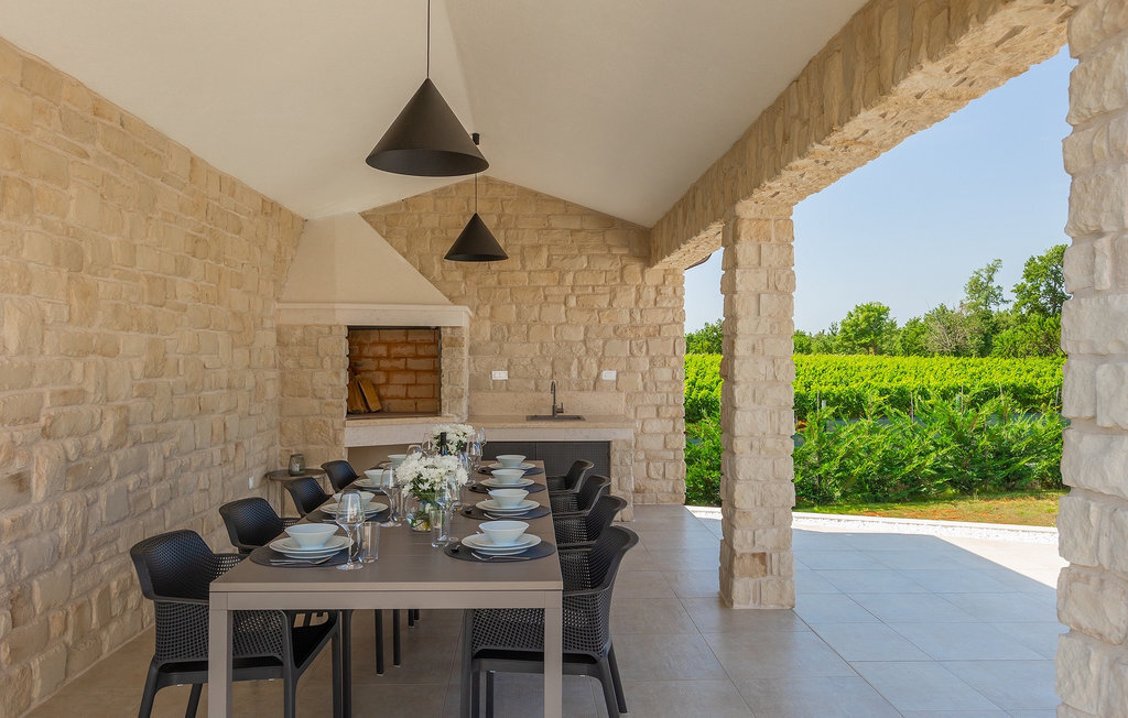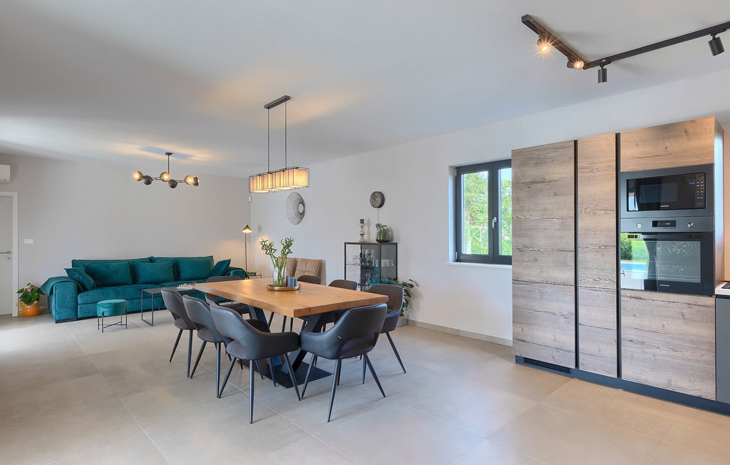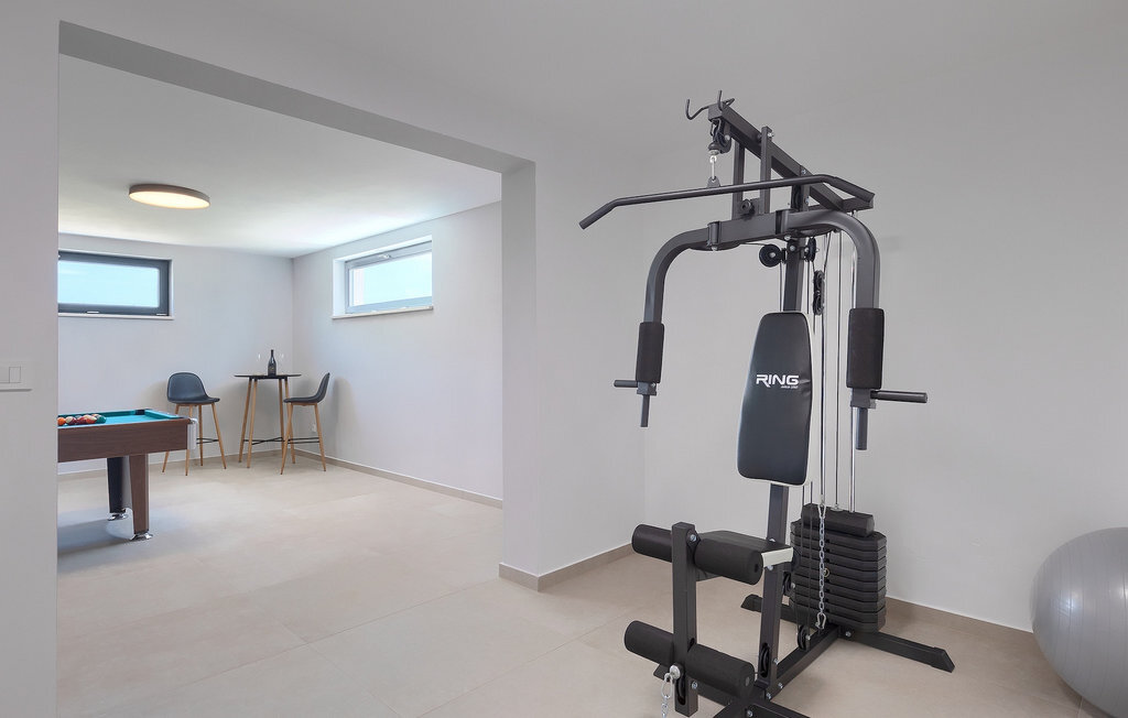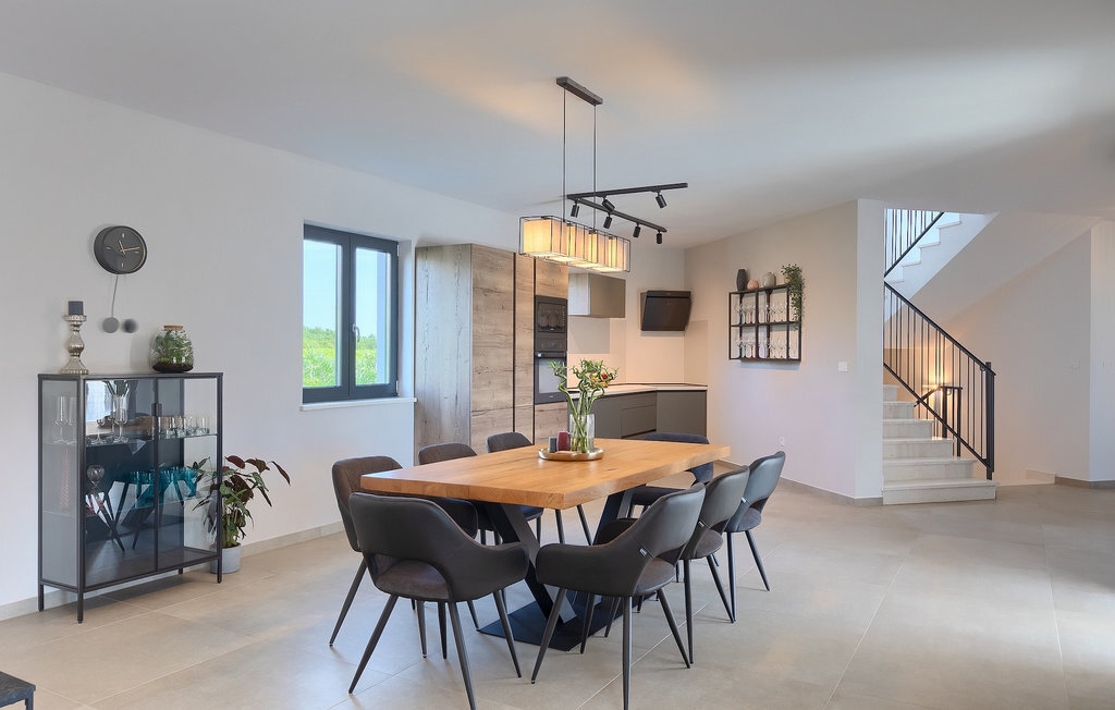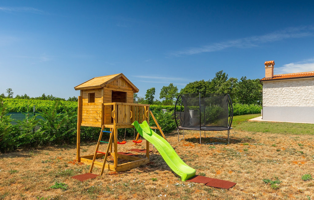 Le sous-sol de la villa offre une salle où vous pourrez vous détendre en jouant au billard ou au baby-foot. Pour les clients qui souhaitent rester actifs pendant leurs vacances, il y a également un coin fitness. À côté de la maison se trouve une terrasse couverte et dans le jardin, vous trouverez également un espace couvert avec une table à manger où vous pourrez déguster de délicieux plats préparés sur le barbecue au charbon de bois qui est à votre disposition. Dans le jardin de la villa, vous trouverez une piscine et des chaises longues où vous pourrez vous détendre en lisant un livre, en buvant une boisson rafraîchissante ou en jouant au badminton. Pour nos petits hôtes, vous trouverez dans le jardin une aire de jeux pour enfants et un trampoline. La propriété est entièrement clôturée et dispose d'un parking privé pour 6 voitures. Réservez votre hébergement à la Villa Sun Istria et passez des vacances inoubliables en famille ou entre amis.La Villa Sun Istria se trouve à proximité de Vinjan, une ville istrienne située sur une colline. Les ruelles sinueuses de cette charmante ville témoignent du riche héritage historique de ce lieu, tout en offrant une vue spectaculaire sur la mer depuis l'ancienne terrasse sur la place, à laquelle on accède par une arche vénitienne. Vinjan est connu pour son observatoire astronomique ainsi que pour sa gastronomie traditionnelle exceptionnelle, que vous pourrez déguster dans les nombreux restaurants et agritourismes des environs. Il existe de nombreux sentiers de randonnée et pistes cyclables, dont l'un des plus beaux est le sentier historique Parenzana de l'ancien chemin de fer, qui offre également un voyage unique en train touristique le long de la route. L'ancienne ville romaine de Pore, à 10 km de la villa, offre plus d'animation avec des plages divines, d'excellents restaurants et cafés et une vie nocturne riche. Ne manquez pas de visiter la célèbre basilique d'Euphrasius, la marque de fabrique de Pore, raison pour laquelle la ville est également appelée "la ville des mosaïques". Visitez la grotte de Baredine ou l'un des parcs aquatiques à proximité et passez les meilleures vacances de tous les temps !