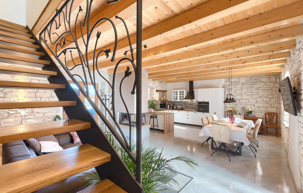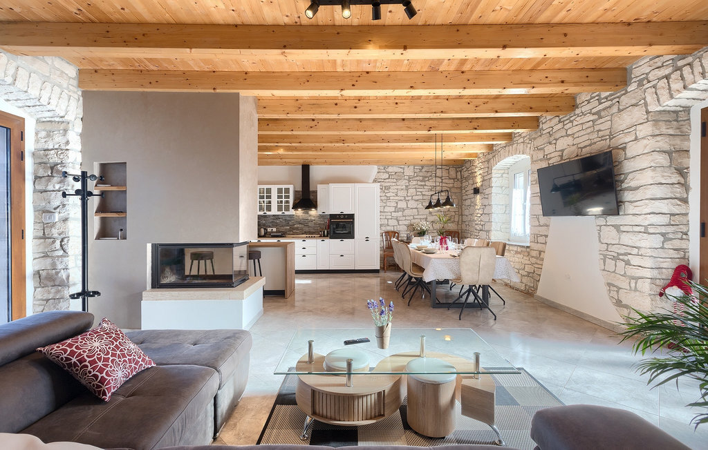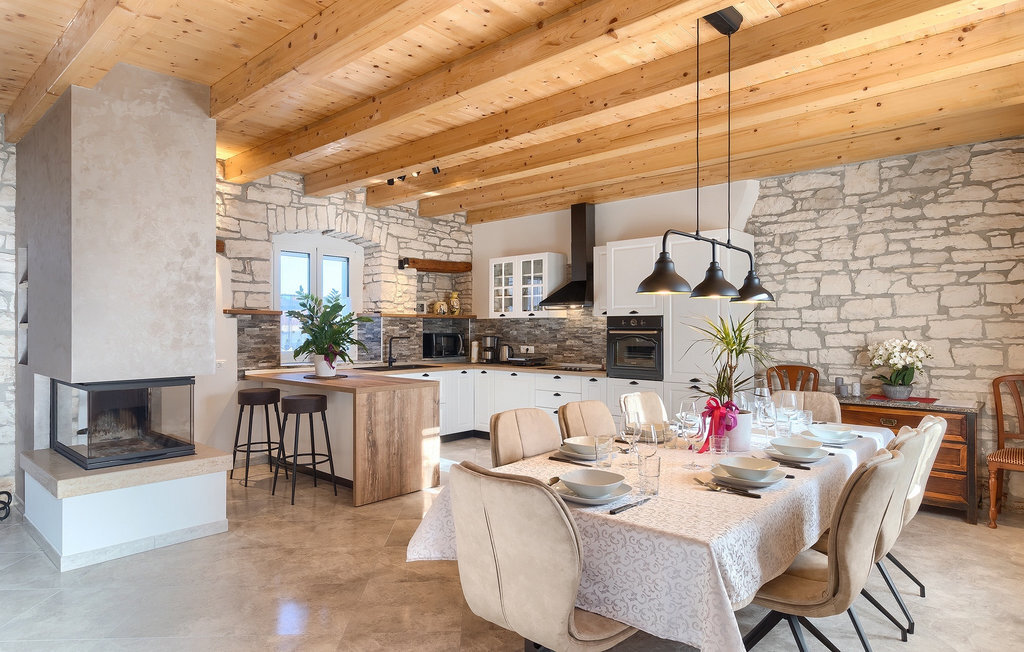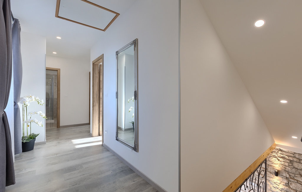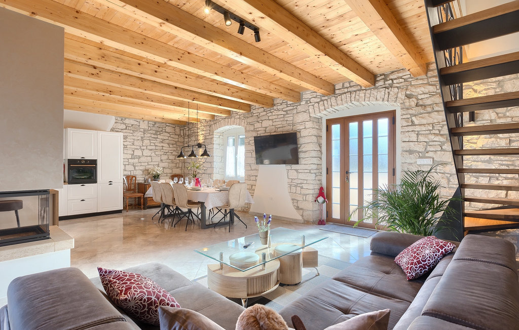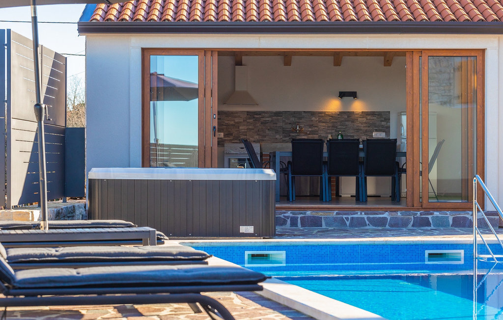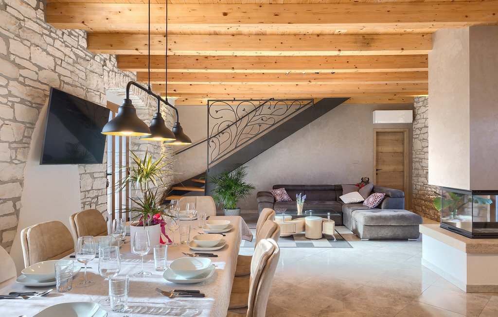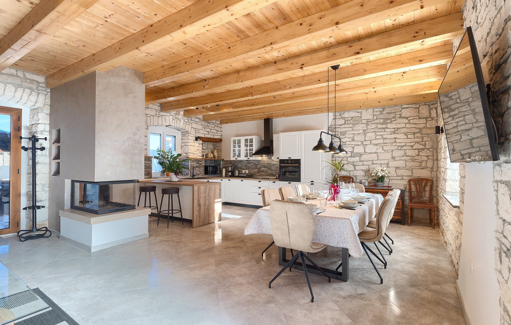 La charmante et ancienne villa restaurée Druskovic se trouve dans le petit hameau de Triban, à quelques minutes en voiture de la ville médiévale de Buje. La maison de deux étages dispose de 3 chambres et peut accueillir jusqu'à 6+2 hôtes. Le rez-de-chaussée de la villa se compose d'un espace de vie ouvert avec cheminée, d'un coin repas et d'une cuisine entièrement équipée. Vous y trouverez également un espace bien-être avec sauna et une salle de bain séparée. À l'étage supérieur se trouvent trois chambres à coucher design et confortables, chacune avec un lit double et deux chambres avec une douche. L'espace extérieur est le point fort de la villa. La villa dispose d'une grande piscine privée, d'une grande terrasse avec un espace lounge et d'un jacuzzi. Vous pourrez vous y détendre et profiter de la belle vue sur la côte italienne et slovène et sur les montagnes. À quelques pas de la piscine se trouve une cuisine d'été couverte et bien équipée avec un coin repas. C'est l'endroit parfait pour une réunion de famille, où vous pourrez préparer de délicieux repas sur le barbecue au charbon de bois. La Villa Druskovic est idéale pour les grandes familles et les groupes à la recherche de vacances relaxantes en Istrie.La Villa Druskovic est située dans la partie nord de l'Istrie, non loin d'Umag, dans la petite ville de Triban. La villa est un point de départ idéal pour de nombreuses excursions et activités. Nous vous recommandons une excursion dans la petite ville médiévale de Buje, entourée de vignobles et d'oliveraies. Visitez la cave à vin de la famille Kozlovi, qui vous fera visiter sa cave, puis dégustez différents vins avec une belle vue sur les vignobles. Goûtez aux plats traditionnels d'Istrie comme le Fui aux truffes, l'Ombolo ou le bœuf d'Istrie Bokarin. Nous recommandons à tous les amateurs de culture de visiter la ville de Pula et son amphithéâtre, la ville romantique de Rovinj avec ses maisons colorées et les villes médiévales du centre de l'Istrie comme Motovun, Buzet ou Gronjan. Les amateurs de golf seront ravis de la proximité du terrain de golf avec un total de 18 trous, situé au point le plus à l'est de la Croatie, le cap Savudrija. Si vous avez plus de temps, nous vous recommandons vivement une excursion d'une journée en bateau à Venise.