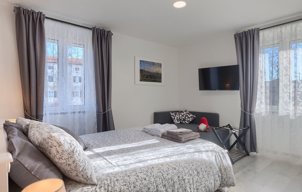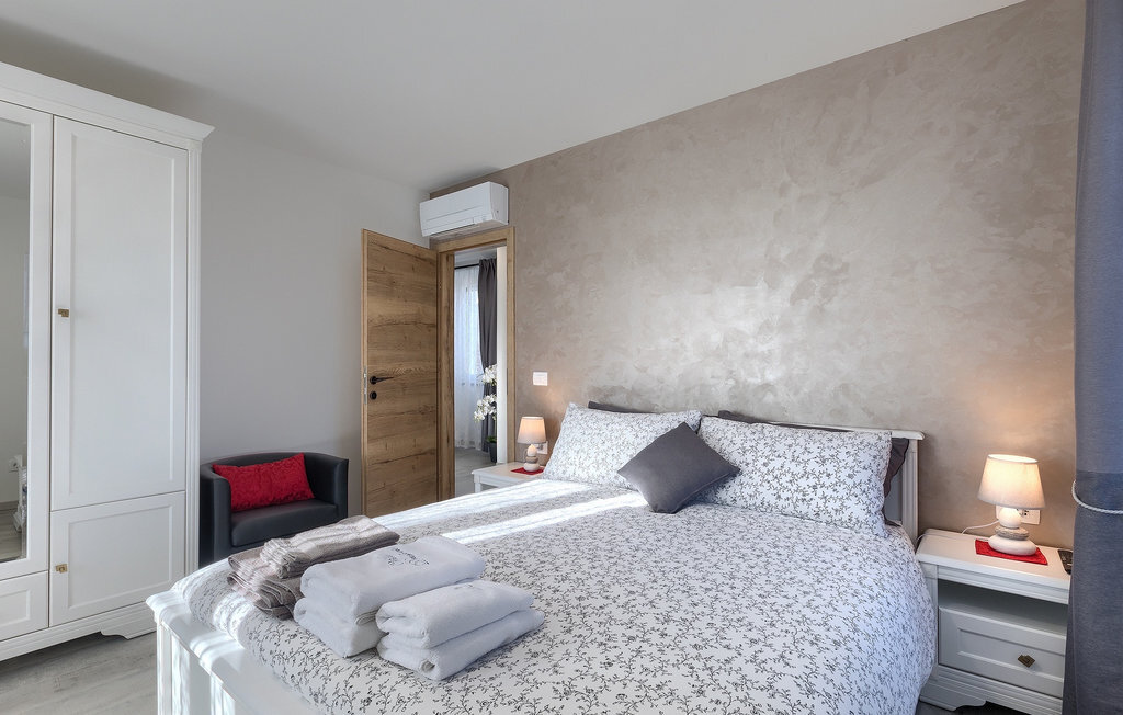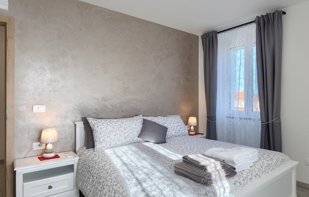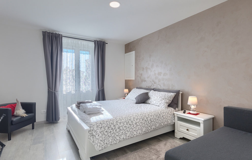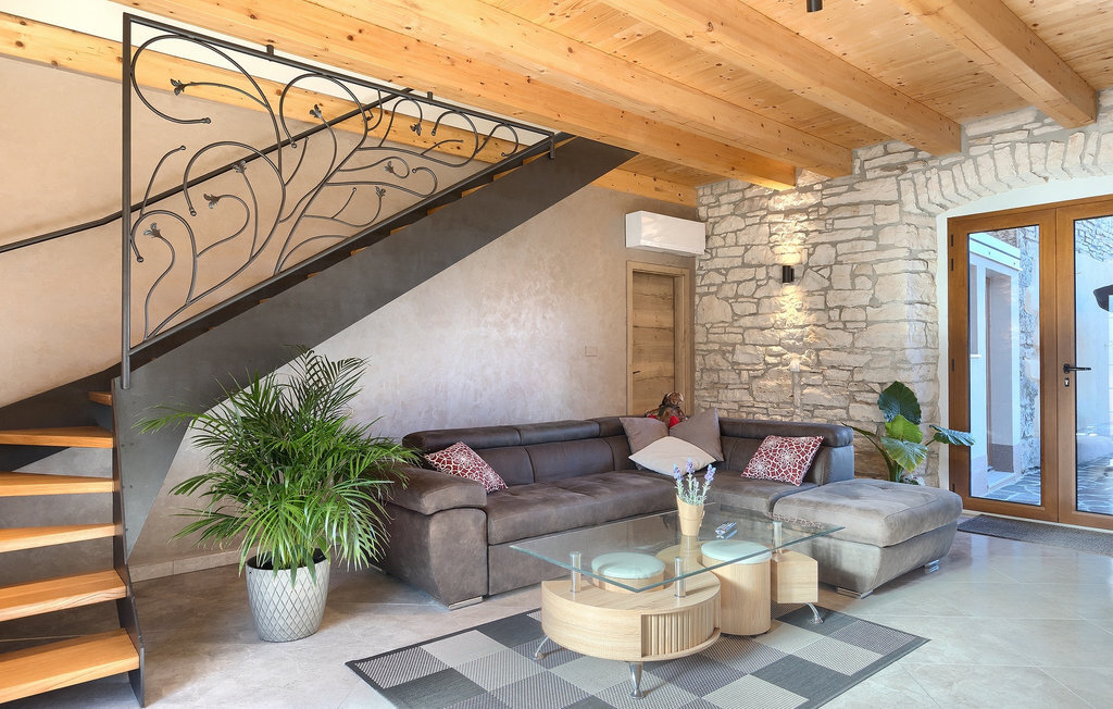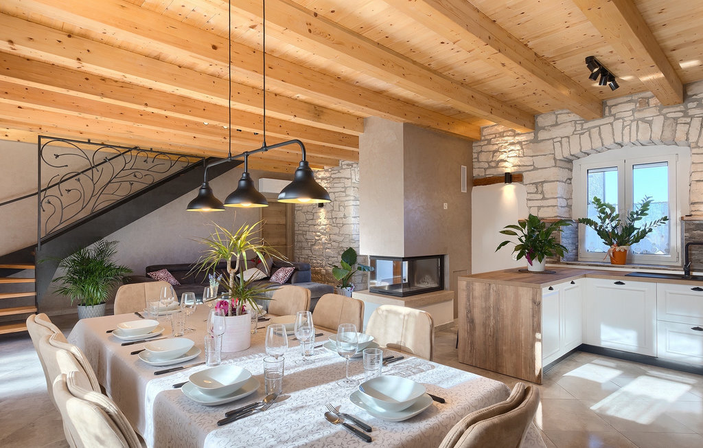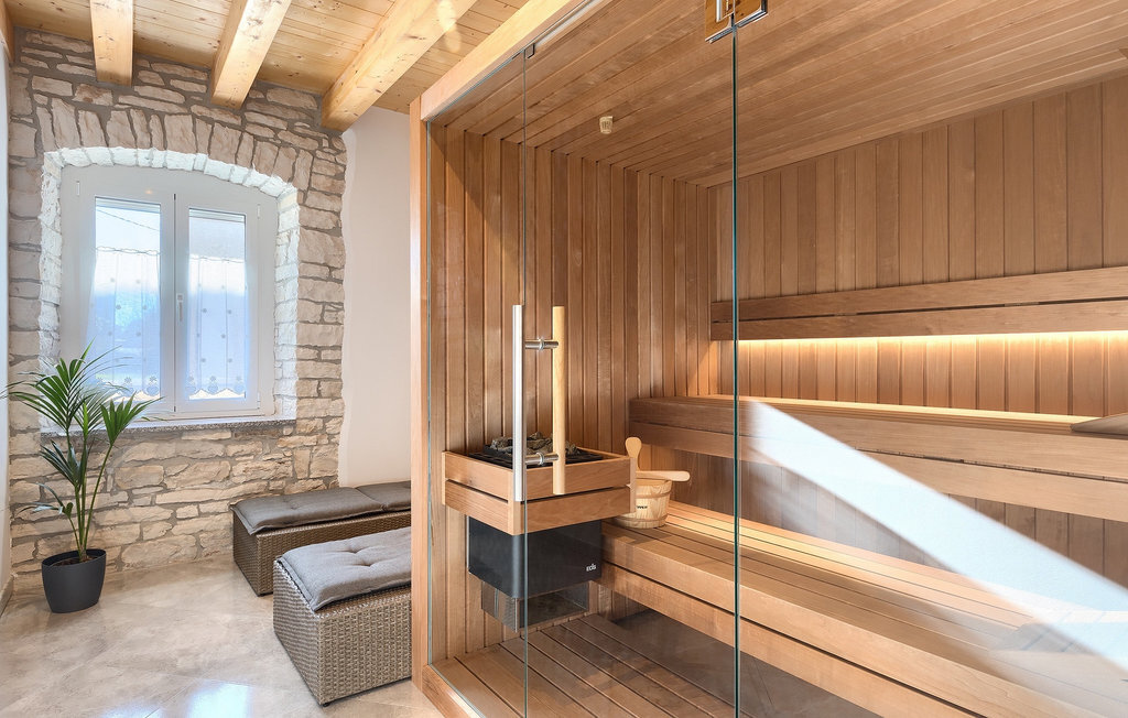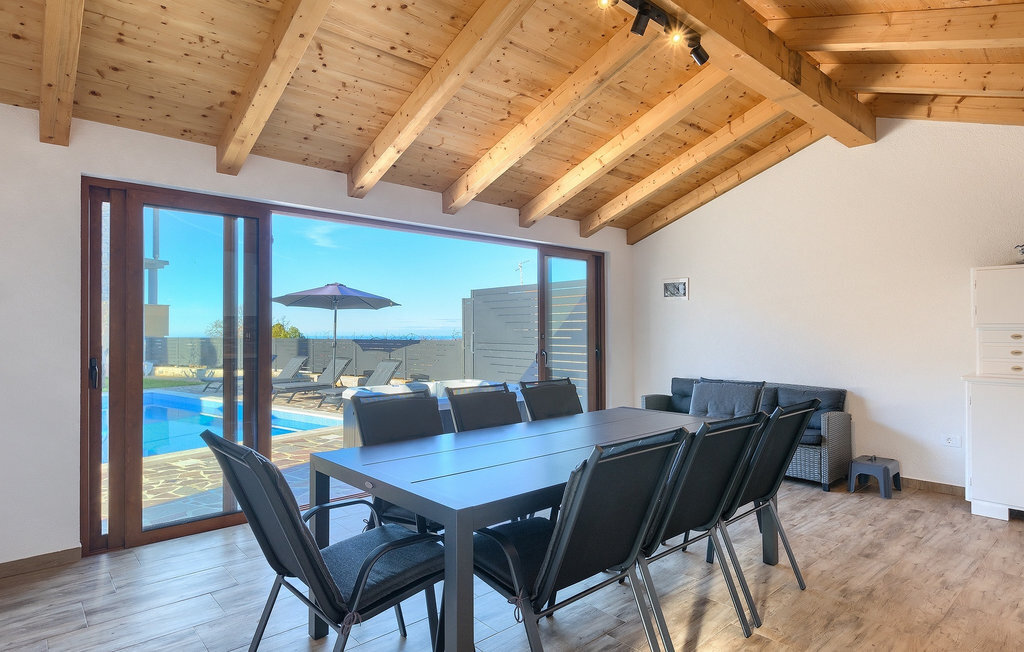 La charmante et ancienne villa restaurée Druskovic se trouve dans le petit hameau de Triban, à quelques minutes en voiture de la ville médiévale de Buje. La maison de deux étages dispose de 3 chambres et peut accueillir jusqu'à 6+2 hôtes. Le rez-de-chaussée de la villa se compose d'un espace de vie ouvert avec cheminée, d'un coin repas et d'une cuisine entièrement équipée. Vous y trouverez également un espace bien-être avec sauna et une salle de bain séparée. À l'étage supérieur se trouvent trois chambres à coucher design et confortables, chacune avec un lit double et deux chambres avec une douche. L'espace extérieur est le point fort de la villa. La villa dispose d'une grande piscine privée, d'une grande terrasse avec un espace lounge et d'un jacuzzi. Vous pourrez vous y détendre et profiter de la belle vue sur la côte italienne et slovène et sur les montagnes. À quelques pas de la piscine se trouve une cuisine d'été couverte et bien équipée avec un coin repas. C'est l'endroit parfait pour une réunion de famille, où vous pourrez préparer de délicieux repas sur le barbecue au charbon de bois. La Villa Druskovic est idéale pour les grandes familles et les groupes à la recherche de vacances relaxantes en Istrie.La Villa Druskovic est située dans la partie nord de l'Istrie, non loin d'Umag, dans la petite ville de Triban. La villa est un point de départ idéal pour de nombreuses excursions et activités. Nous vous recommandons une excursion dans la petite ville médiévale de Buje, entourée de vignobles et d'oliveraies. Visitez la cave à vin de la famille Kozlovi, qui vous fera visiter sa cave, puis dégustez différents vins avec une belle vue sur les vignobles. Goûtez aux plats traditionnels d'Istrie comme le Fui aux truffes, l'Ombolo ou le bœuf d'Istrie Bokarin. Nous recommandons à tous les amateurs de culture de visiter la ville de Pula et son amphithéâtre, la ville romantique de Rovinj avec ses maisons colorées et les villes médiévales du centre de l'Istrie comme Motovun, Buzet ou Gronjan. Les amateurs de golf seront ravis de la proximité du terrain de golf avec un total de 18 trous, situé au point le plus à l'est de la Croatie, le cap Savudrija. Si vous avez plus de temps, nous vous recommandons vivement une excursion d'une journée en bateau à Venise.
