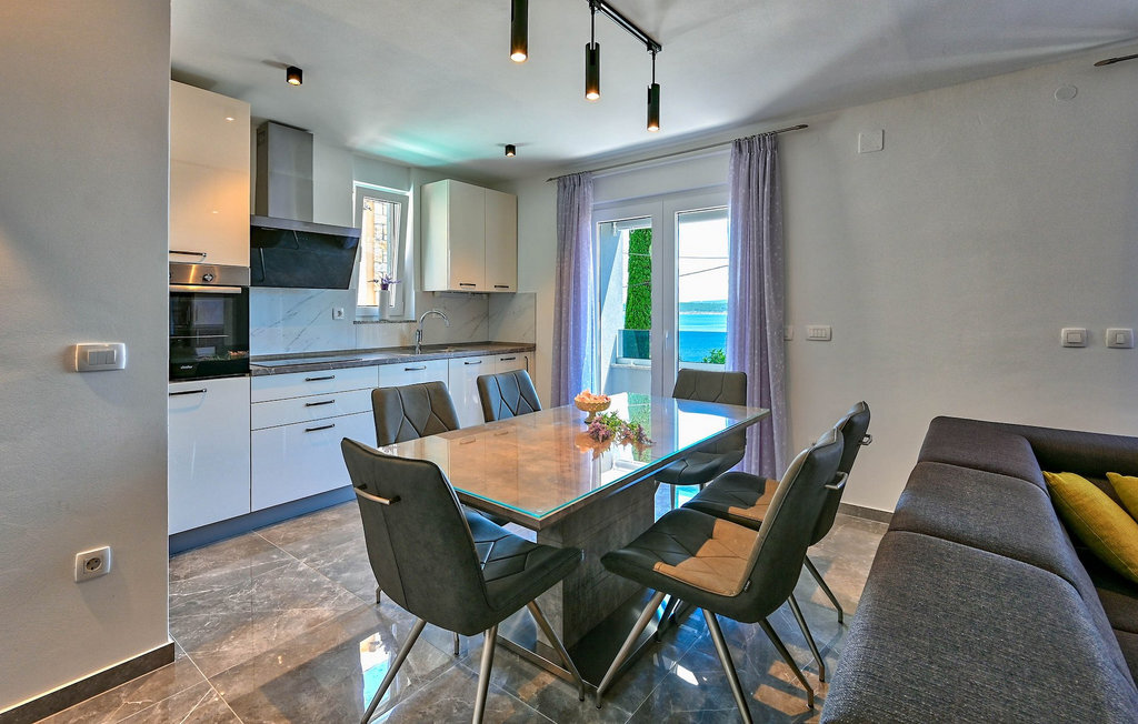 La belle villa Futura avec vue sur la mer se trouve à Maslenica, près de Zadar. Outre une vue magnifique sur la mer, cette villa offre un hébergement confortable pour jusqu'à 8 personnes. La villa est divisée en trois étages. Le rez-de-chaussée de la villa comprend un salon, une cuisine entièrement équipée avec salle à manger et garde-manger, une salle de bain et une terrasse couverte avec accès à une piscine privée. Au premier étage se trouvent trois chambres à coucher, dont l'une dispose d'une salle de bain privée, une salle de bain séparée et une terrasse couverte. Au deuxième étage de la villa se trouve une grande terrasse sur le toit, où vous pourrez profiter du soleil et de la vue sur la mer. Si vous souhaitez vous rafraîchir, la villa dispose d'une piscine privée dans laquelle vous pourrez profiter de la vue sur la mer. Réservez la Villa Futura et détendez-vous dans la belle Dalmatie.La Villa Futura se trouve à Maslenica, près de la ville de Zadar. Elle n'est qu'à 100 mètres de la plage. Sa situation n'est pas seulement attractive pour cette raison - depuis Maslenica, vous pouvez entreprendre de nombreuses excursions d'une journée. Le parc national de Paklenica n'est qu'à 15 minutes en voiture. La ville de Zadar, où vous pourrez visiter des sites tels que l'orgue de mer et l'église de Sv. Donat, n'est qu'à 35 minutes de route. Goûtez aux spécialités dalmates dans les nombreux cafés et restaurants situés à 300 mètres de la villa. Les supermarchés se trouvent dans un rayon de 1 km. L'excellente situation de la Villa Futura offre à ses hôtes de nombreuses possibilités et vous pouvez vous rendre à pied à presque tout ce dont vous avez besoin.
