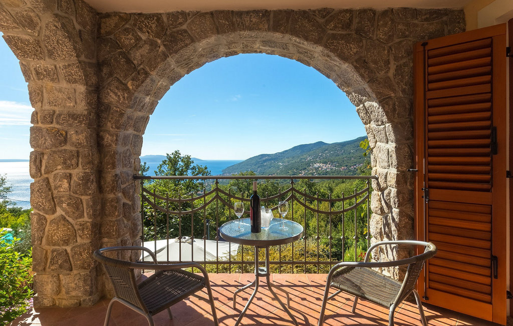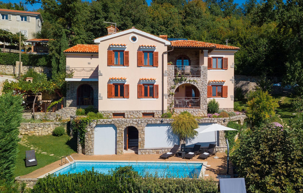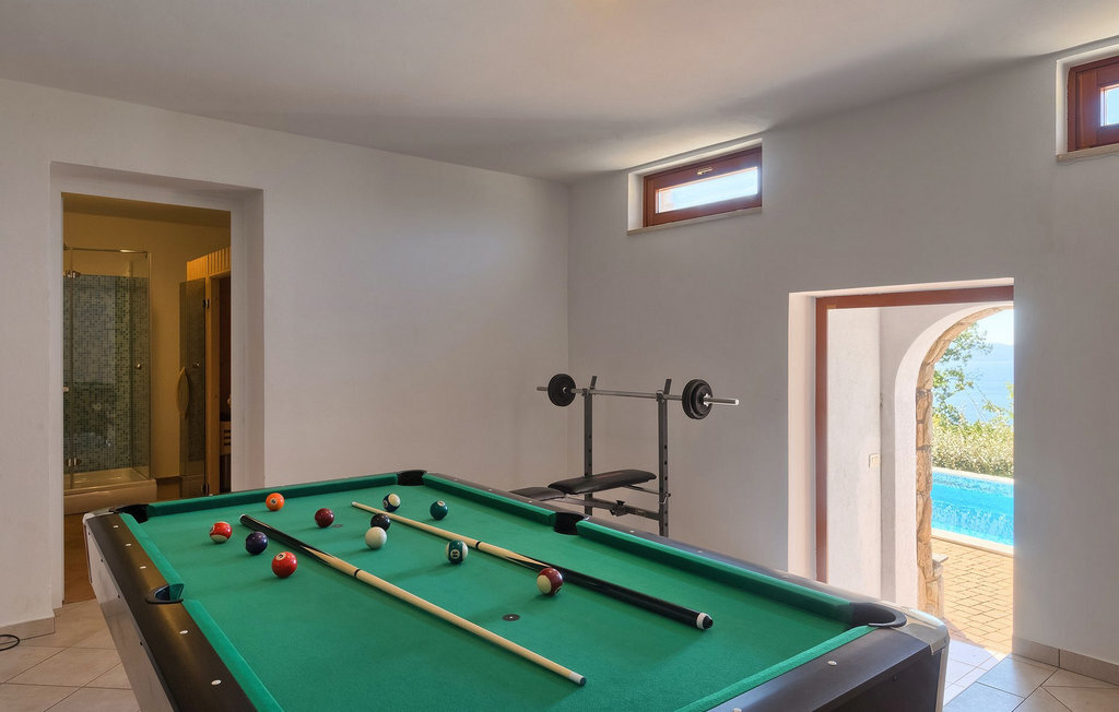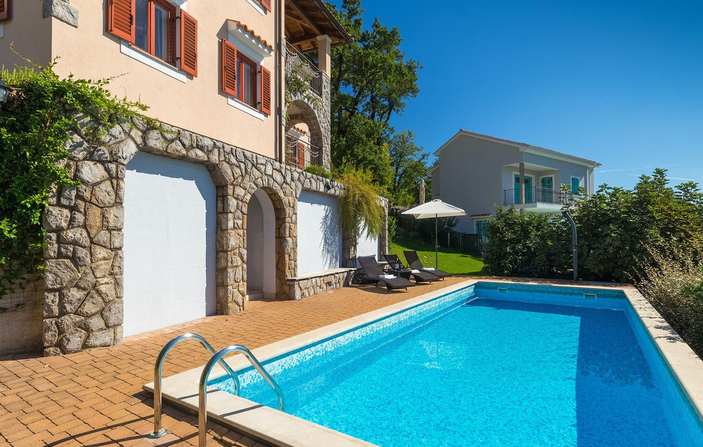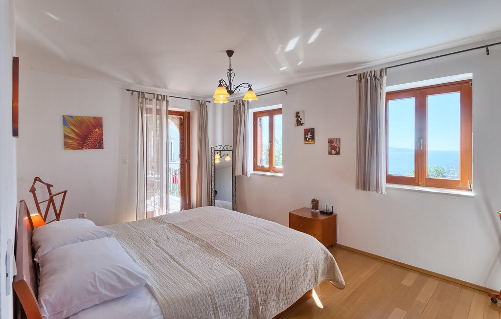 équipée d'un lit double, d'une salle de bains et d'une cuisine bien équipée avec un coin repas. Trois autres chambres et deux salles de bains se trouvent au rez-de-chaussée. En outre, il y a au rez-de-chaussée une "konoba" croate typique, où tout le groupe peut passer du temps ensemble. Le sous-sol de la villa est idéal pour ceux qui attachent beaucoup d'importance au luxe. Vous pouvez rester actif et faire du sport dans la salle de fitness privée ou vous détendre dans le sauna. Profitez du soleil au bord de la piscine ou mangez en plein air sur la terrasse. La Villa Opatija a tout ce dont vous pourriez avoir besoin en vacances!Veprinac, une petite ville de collines près d'Opatija, était autrefois un centre touristique européen réputé. Le nom de "Veprinac" est associé à la présence de l'épine-vinette, une espèce végétale qui pousse presque en abondance dans cette région. Promenez-vous dans la ville et profitez de la vue sur toute la baie de Kvarner. Veprinac n'est qu'à une courte distance en voiture d'Opatija, une ville côtière époustouflante à l'architecture magnifique et au climat agréablement doux. Le tourisme à Opatija remonte au 19e siècle, lorsque les Habsbourg ont fait d'Opatija la destination des nobles. Si vous êtes à Opatija, vous devez absolument visiter la Villa Angiolina, qui marque le début du tourisme dans la ville. Promenez-vous dans les parcs de la ville datant du 19e siècle (parc Saint-Jacques et parc Angiolina). Lungomare est également une merveilleuse façon de découvrir la région. La promenade s'étend de Preluka à Lovran et relie Opatija à de nombreuses plages et baies.