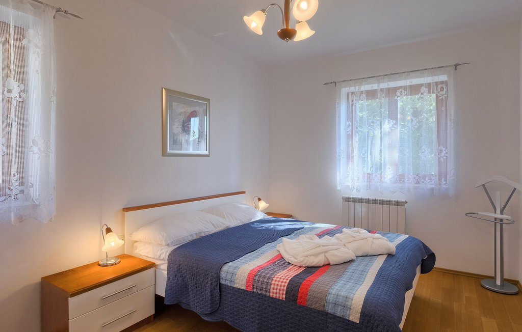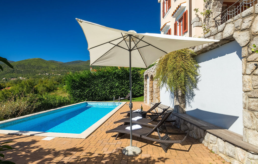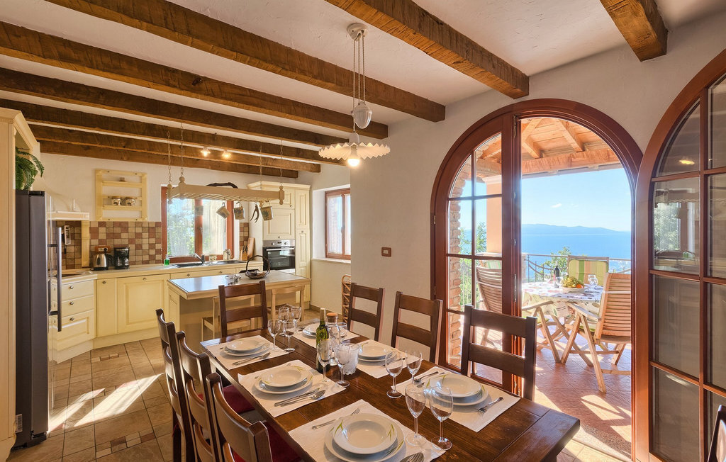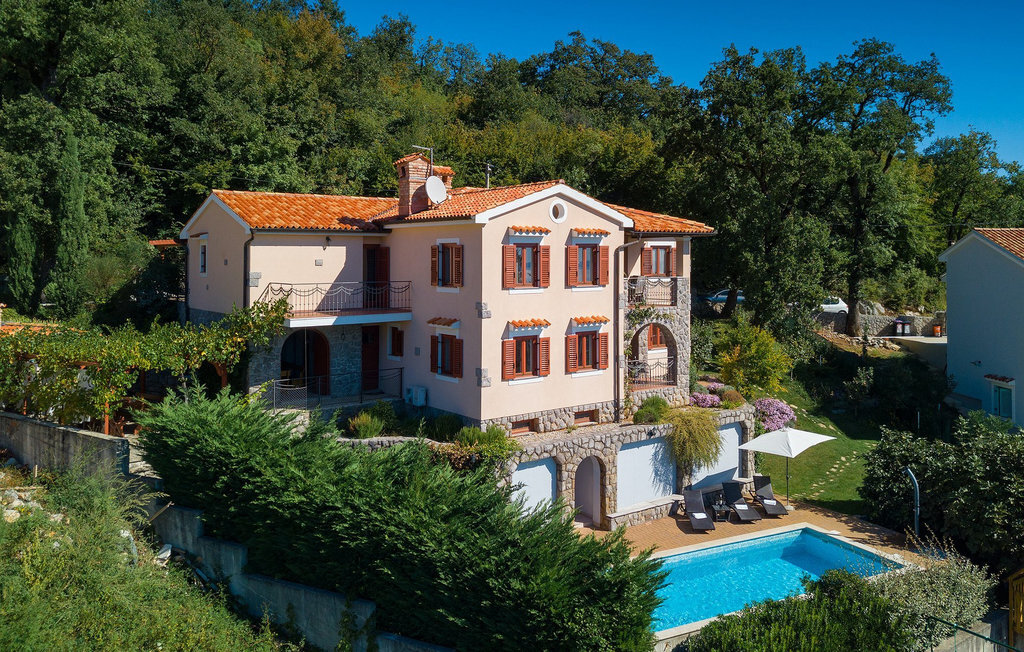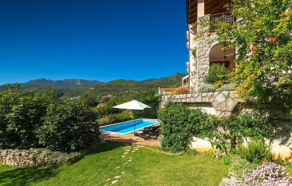 équipée d'un lit double, d'une salle de bains et d'une cuisine bien équipée avec un coin repas. Trois autres chambres et deux salles de bains se trouvent au rez-de-chaussée. En outre, il y a au rez-de-chaussée une "konoba" croate typique, où tout le groupe peut passer du temps ensemble. Le sous-sol de la villa est idéal pour ceux qui attachent beaucoup d'importance au luxe. Vous pouvez rester actif et faire du sport dans la salle de fitness privée ou vous détendre dans le sauna. Profitez du soleil au bord de la piscine ou mangez en plein air sur la terrasse. La Villa Opatija a tout ce dont vous pourriez avoir besoin en vacances!Veprinac, une petite ville de collines près d'Opatija, était autrefois un centre touristique européen réputé. Le nom de "Veprinac" est associé à la présence de l'épine-vinette, une espèce végétale qui pousse presque en abondance dans cette région. Promenez-vous dans la ville et profitez de la vue sur toute la baie de Kvarner. Veprinac n'est qu'à une courte distance en voiture d'Opatija, une ville côtière époustouflante à l'architecture magnifique et au climat agréablement doux. Le tourisme à Opatija remonte au 19e siècle, lorsque les Habsbourg ont fait d'Opatija la destination des nobles. Si vous êtes à Opatija, vous devez absolument visiter la Villa Angiolina, qui marque le début du tourisme dans la ville. Promenez-vous dans les parcs de la ville datant du 19e siècle (parc Saint-Jacques et parc Angiolina). Lungomare est également une merveilleuse façon de découvrir la région. La promenade s'étend de Preluka à Lovran et relie Opatija à de nombreuses plages et baies.