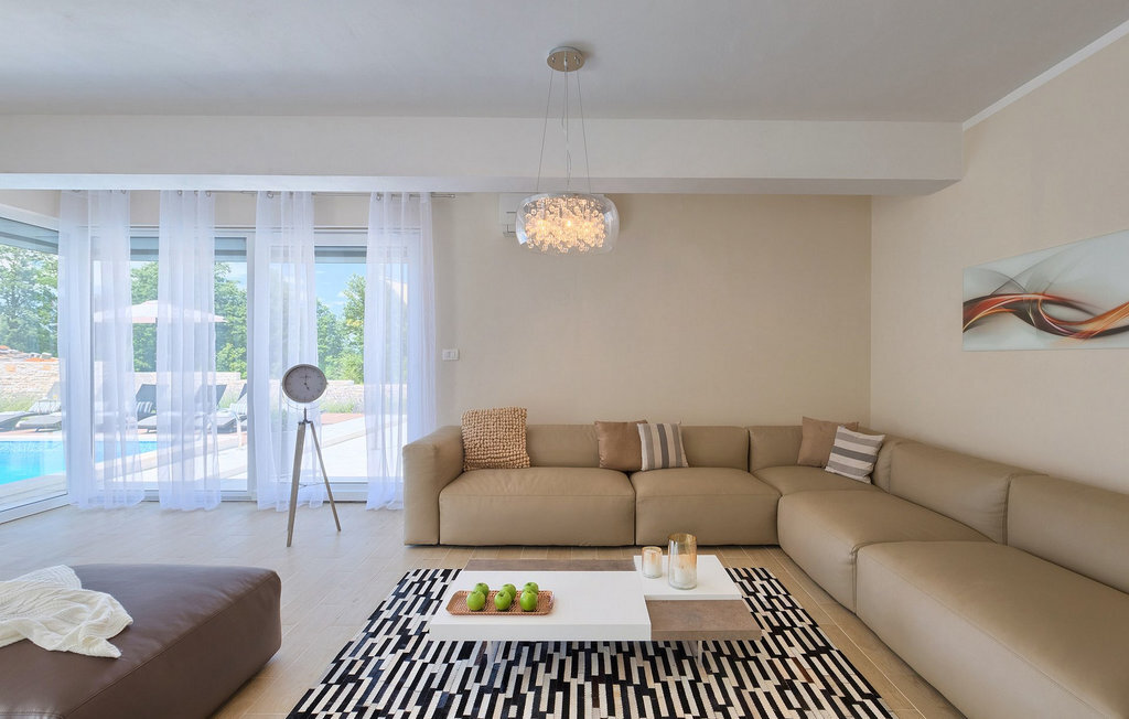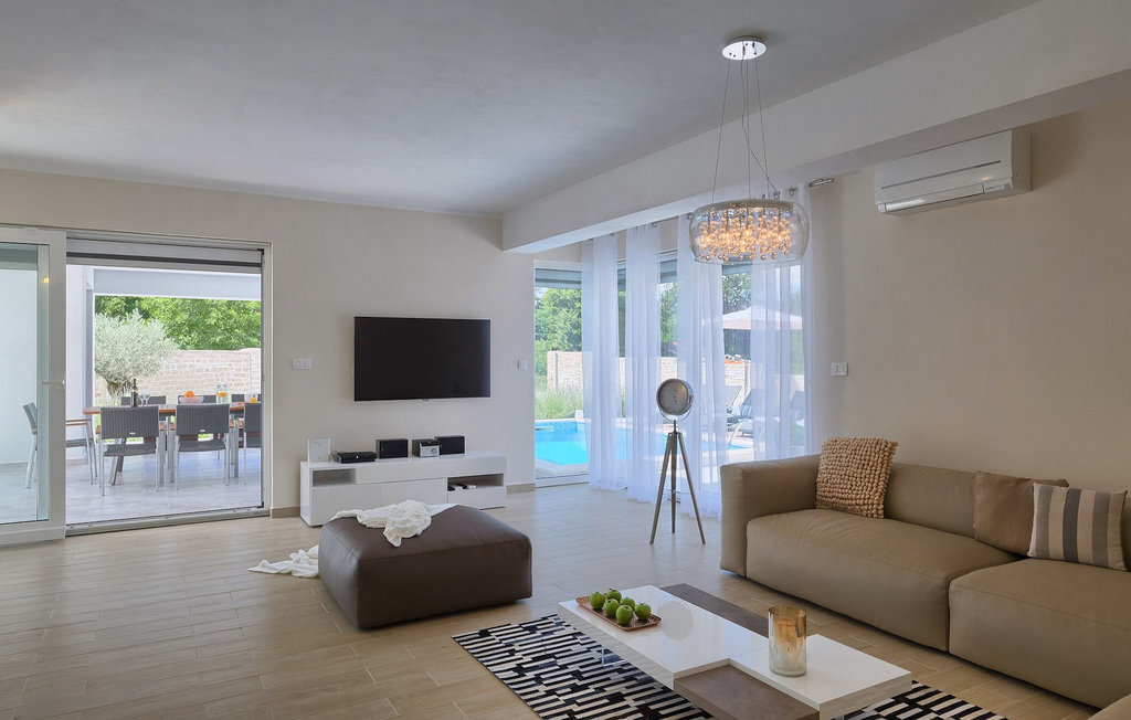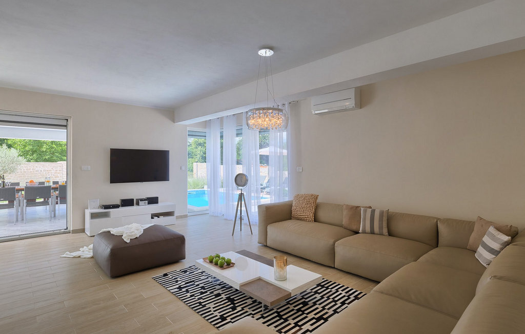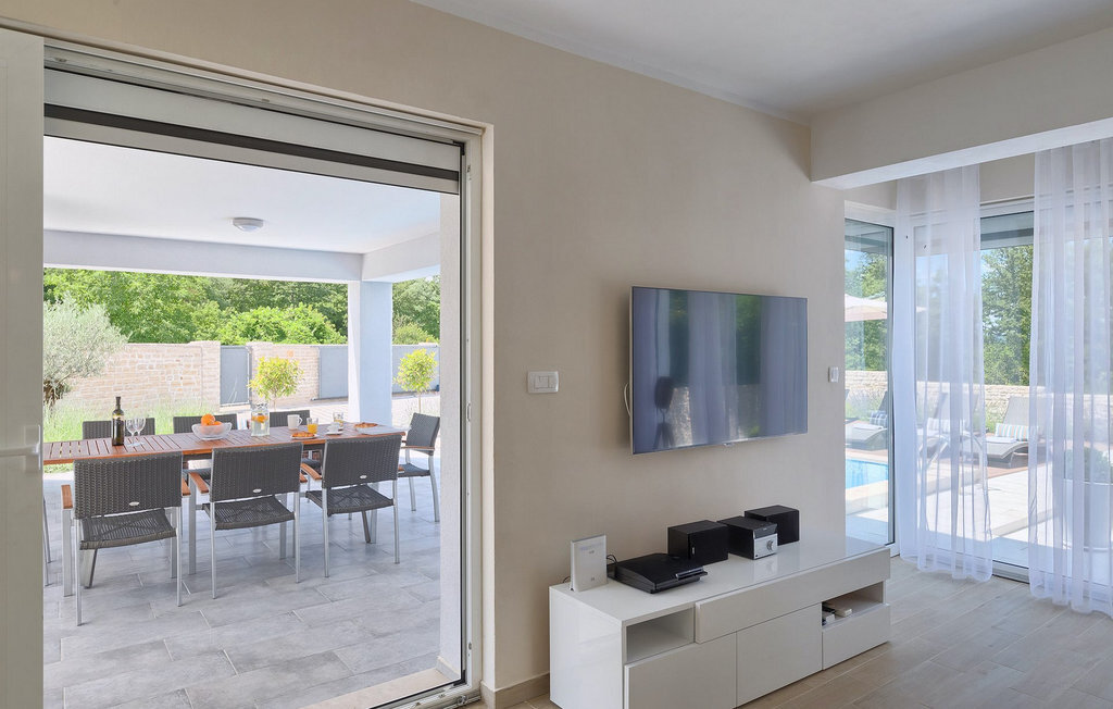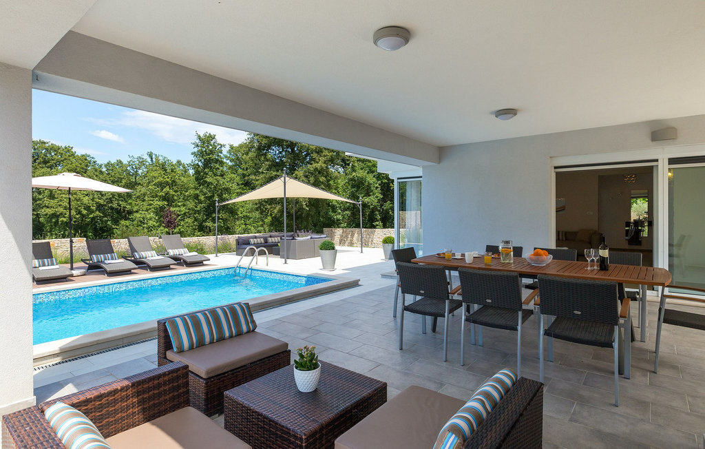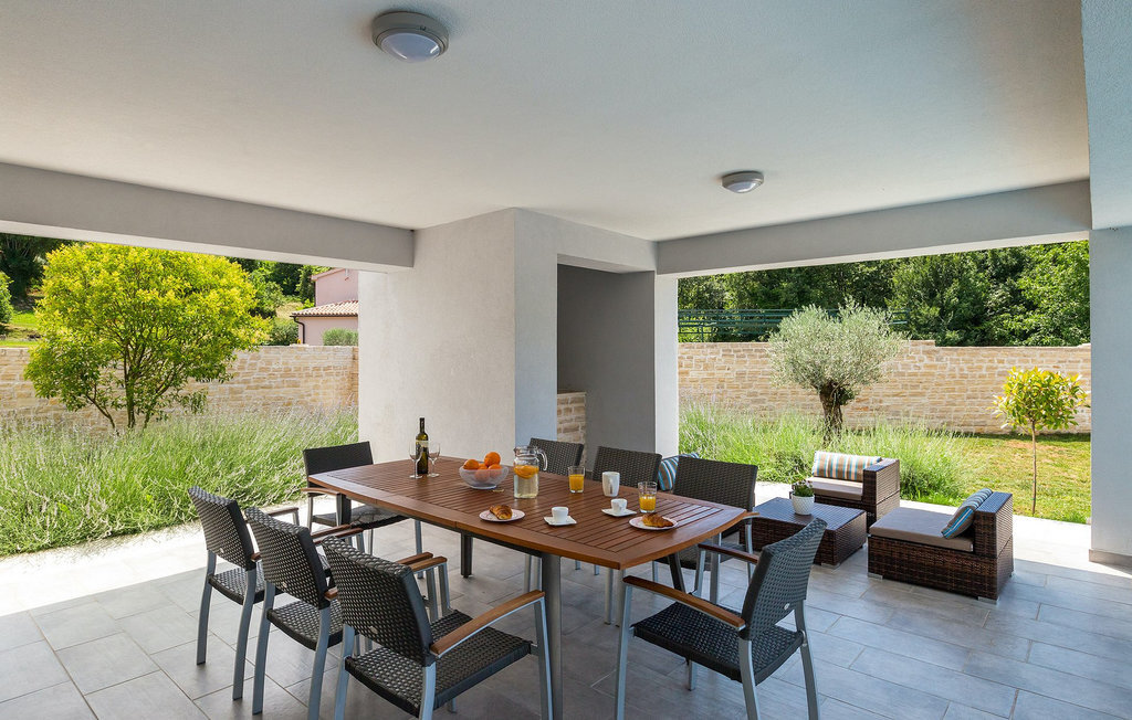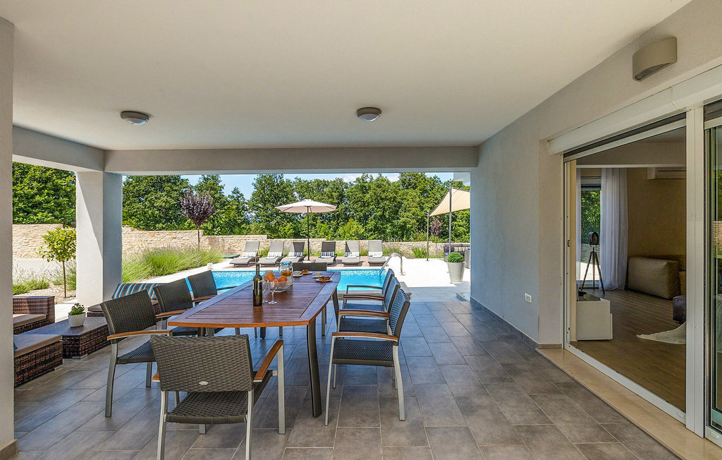 La magnifique villa Tireli est synonyme de luxe ! Cette villa confortable et spacieuse dispose de 4 chambres à coucher et peut accueillir jusqu'à 8 personnes. Toutes les pièces de la villa sont claires et lumineuses, meublées de manière minimaliste mais entièrement équipées pour que vous ne manquiez de rien en vacances.Au rez-de-chaussée se trouvent la cuisine avec coin repas et le salon avec accès direct à la terrasse. Au premier étage, vous trouverez 4 chambres à coucher, chacune avec un lit double et une salle de bain privée. À l'extérieur, vous pourrez profiter du calme et de la tranquillité de la campagne tout en vous relaxant au bord de la piscine. Pour une touche de luxe supplémentaire, une table de ping-pong, un baby-foot et un sauna sont à votre disposition.Cette propriété se trouve dans un petit hameau de la partie orientale de l'Istrie. L'ensemble du Regon Istrien est facilement accessible et dispose d'un excellent réseau routier à faible trafic. Vous serez sans aucun doute enthousiasmé par le fait que la plage la plus proche n'est qu'à 5 km, car la péninsule istrienne ?Terra Magic ? est située au bord de la mer Adriatique chaude. La côte avec les grands centres touristiques de Labin et Rabac, ainsi que l'aéroport de Pula ne sont qu'à quelques minutes en voiture. Trônant sur sa colline au-dessus de la côte magique du Kvarner, Labin est le centre historique et administratif de l'Est de la Riviera. La région est un paradis pour les amateurs d'art et d'histoire grâce à son riche patrimoine culturel et architectural. Les ruelles escarpées et sinueuses de la vieille ville abritent des palais historiques bien conservés, de nombreuses galeries d'art et ?studios, ainsi que plusieurs festivals de jazz et de musique classique pendant les mois d'été. La ville dispose de quelques excellents restaurants de poisson, avec de délicieux produits locaux, ainsi que de cafés confortables où vous pourrez profiter de l'atmosphère détendue. La ville côtière de Labin est Rabac, ancien village de pêcheurs, aujourd'hui une destination touristique populaire, entourée d'une variété de plages de galets de rêve.