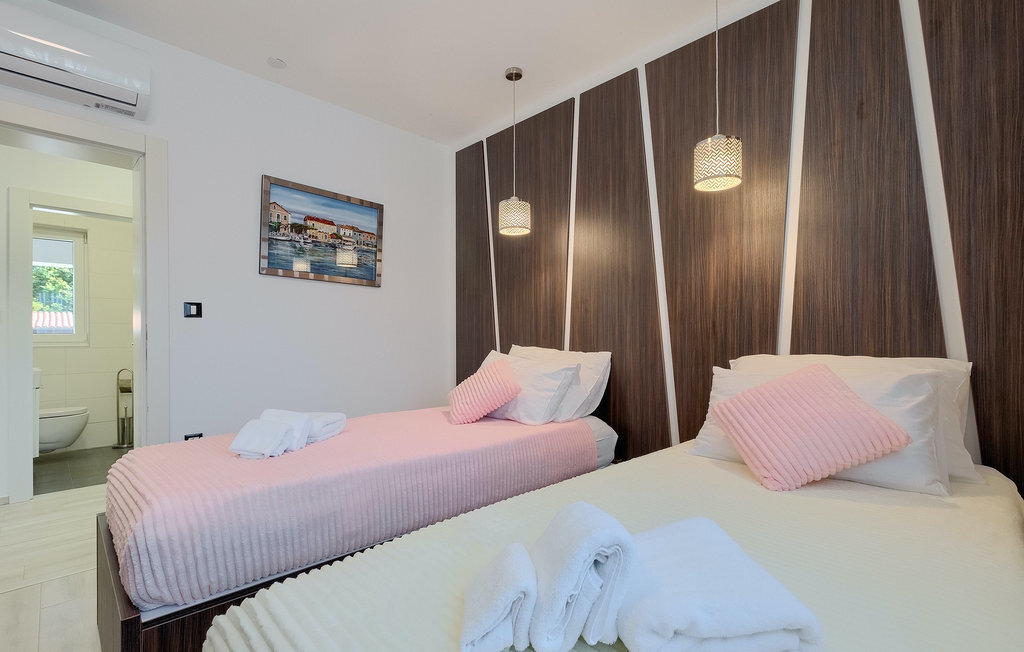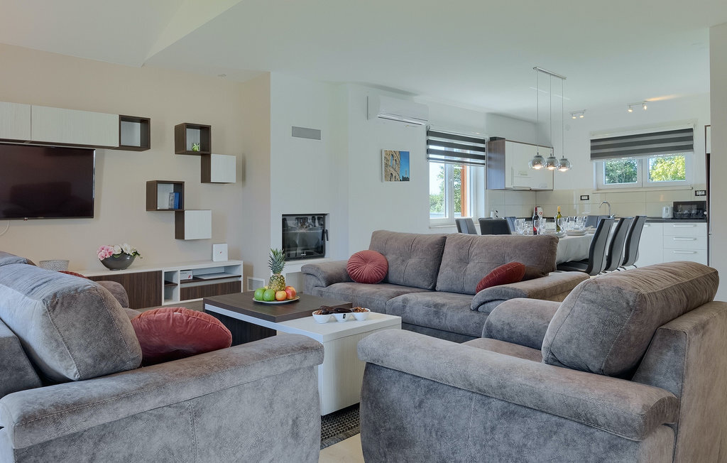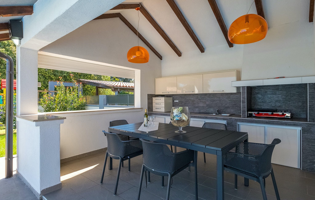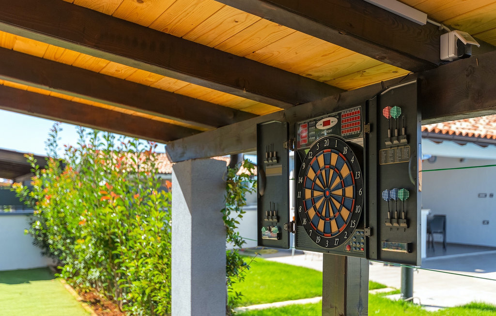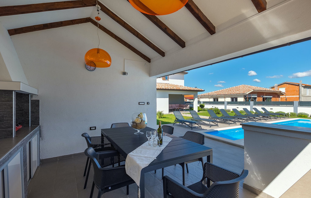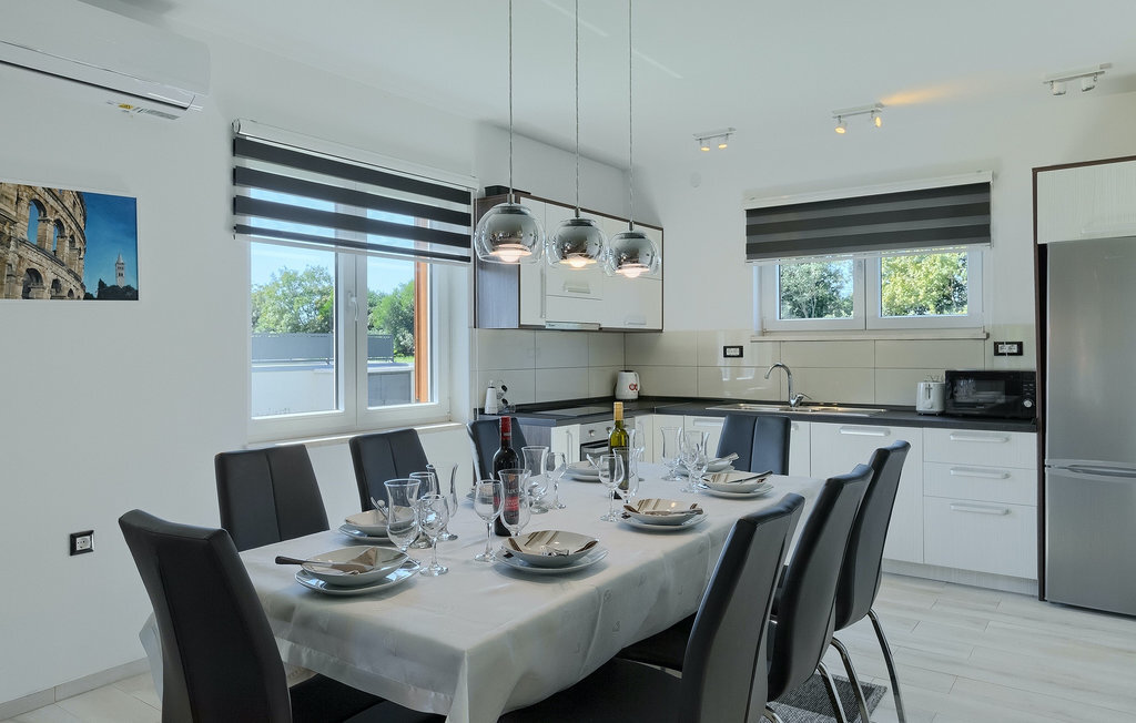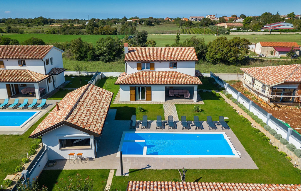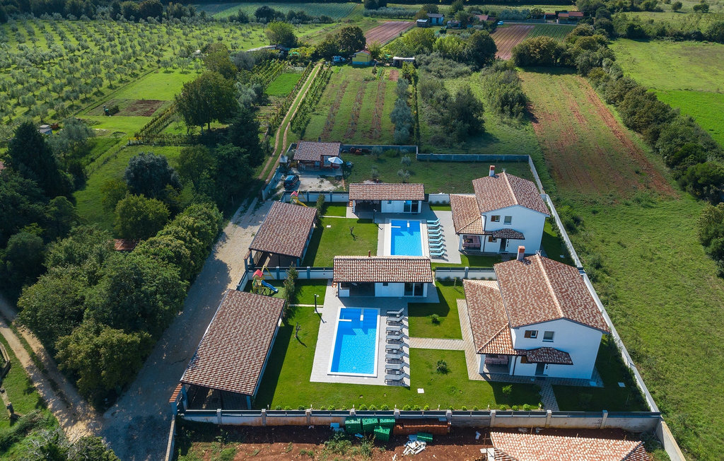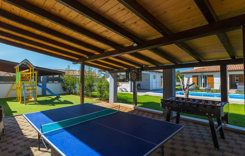 Cette magnifique villa Alba Rossa se trouve dans la petite ville de Sisan, près de la plus grande ville d'Istrie - Pula. Comme sa sœur Alba Bianca, cette villa vous offre tout ce dont vous avez besoin pour passer des vacances parfaites avec votre famille. La villa peut accueillir jusqu'à 8 personnes. Chaque villa est louée comme une unité séparée et chacune dispose de sa propre piscine, jacuzzi, spa, barbecue, aire de jeux, ping-pong et baby-foot. Les maisons sont reliées entre elles, de sorte qu'elles peuvent être louées ensemble par une grande famille et que vous pouvez tous vous détendre et profiter des bruits de la nature et de la belle ambiance que les deux villas ont à offrir. Comme la villa Alba Bianca, le rez-de-chaussée dispose d'une magnifique cuisine et d'une salle à manger, d'un salon confortable et accueillant et d'une chambre avec deux lits simples. Au premier étage, vous trouverez deux chambres doubles entièrement équipées avec télévision et climatisation, chacune avec sa propre salle de bain. Vous souhaitez passer la plupart de votre temps à l'extérieur, ce qui est une excellente combinaison, car vous avez une belle et grande cuisine d'été couverte où vous pouvez préparer de délicieux plats istriens ou vous rafraîchir et nager dans la piscine. Nous avons également pensé à vos petits, qui pourront s'amuser sur la mignonne aire de jeux, tandis que les adultes profiteront d'un jacuzzi ou d'un barbecue. Si vous voulez passer des vacances de rêve, réservez absolument Alba Bianca Villa ou Alba Rossa Villa, vous ne le regretterez pas.La Villa Alba Rossa se trouve dans la petite ville habitée de Sisan, dans la commune de Liznjan, dans le comté d'Istrie, à proximité de la plus grande ville istrienne, Pula. À seulement 1,5 km de la villa, vous trouverez de magnifiques plages de galets et de sable. Si vous êtes intéressé par les vacances actives et l'adrénaline, il existe différentes installations telles que la voile, le golf, le vélo, l'équitation, le parc d'adrénaline, etc. Dans cette partie de l'Istrie, il y a de nombreux sites historiques et culturels à visiter. Les spécialités de cette partie de l'Istrie sont les merveilleux délices istriens à base de poisson de l'Adriatique et la "malvazija" faite maison qui accompagne presque tous les plats de poisson. Un élément incontournable de Pula est le plus célèbre amphithéâtre du premier siècle, même le sixième plus grand du monde appelé Arena, qui est encore utilisé aujourd'hui pour divers remèdes culturels ainsi que pour des festivals de cinéma et d'été. La ville a une longue tradition dans la viticulture, la pêche, la construction navale et le tourisme.