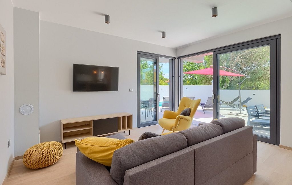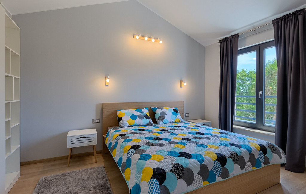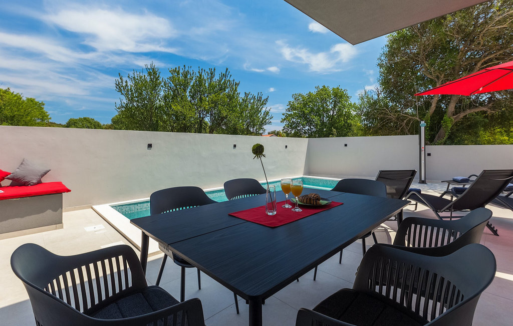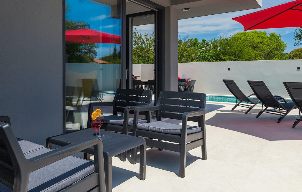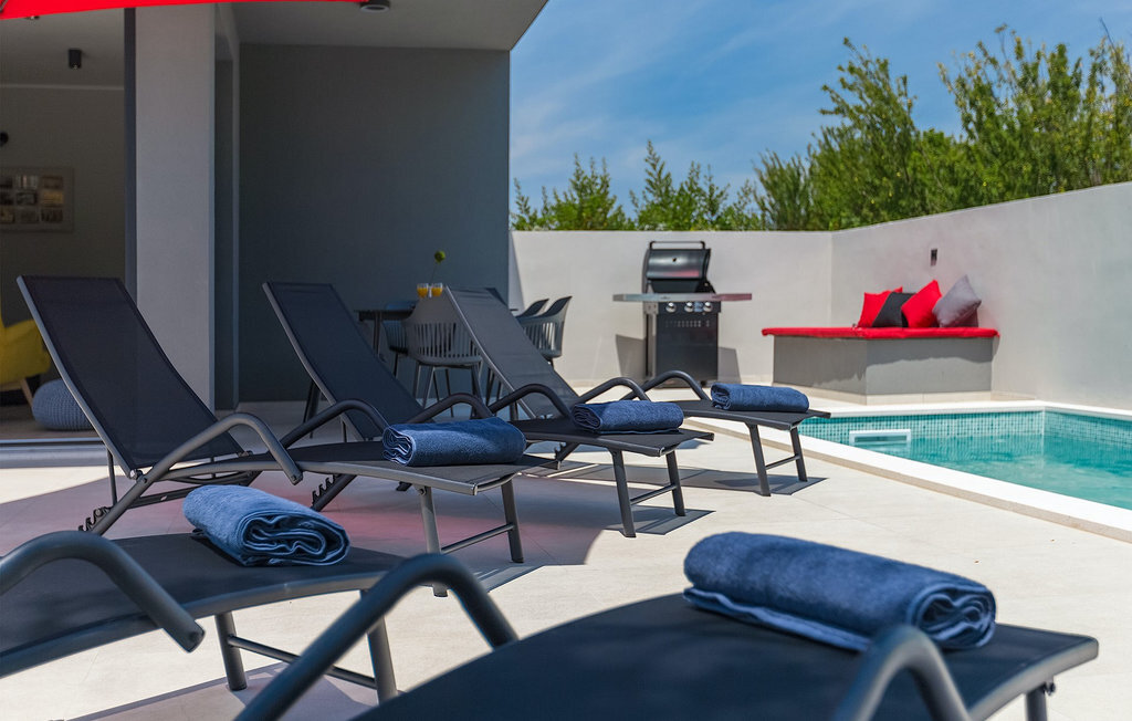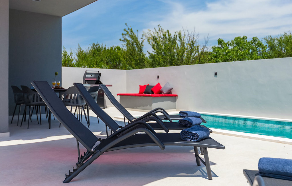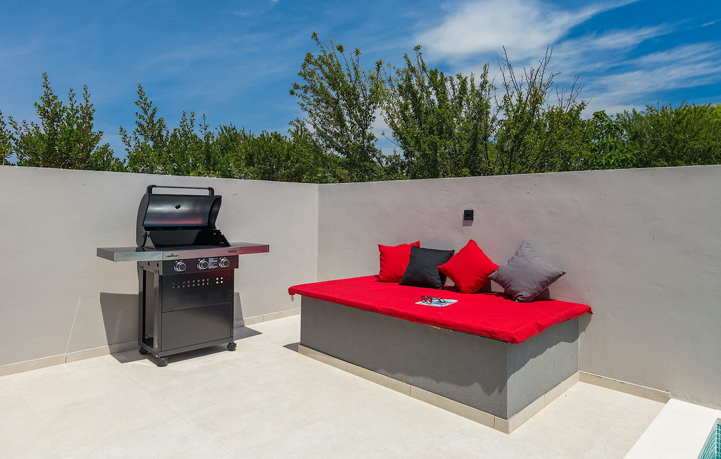 La villa moderne Gabriel se trouve dans le petit village de Banjole, près de Pula. Grâce à son emplacement parfait, les plages, les restaurants et les cafés sont facilement accessibles à pied. Le rez-de-chaussée se compose d'un salon, d'une salle à manger et d'une cuisine ouverts, ainsi que d'une salle de bain. L'ameublement a été choisi dans des couleurs sobres qui ont un effet apaisant, mais vous remarquerez de temps en temps quelques taches de couleur excitantes. La cuisine entièrement équipée offre beaucoup de place pour préparer de délicieuses spécialités et passer ensuite le temps ensemble autour de la table à manger. Pendant que vous vous reposez après le déjeuner, vous pouvez profiter de la vue sur la piscine extérieure privée depuis le salon confortable, ce qui est parfait pour se rafraîchir pendant les chaudes journées d'été. Des chaises longues et un parasol sont à votre disposition autour de la piscine. Depuis le salon, vous accédez à la terrasse sur laquelle se trouvent un coin repas et un barbecue à gaz qui promettent des soirées barbecue inoubliables. Au premier étage de la villa se trouvent deux chambres agréables avec leur propre salle de bain. La villa est entièrement climatisée et un parking privé ainsi qu'un accès à Internet sont également disponibles. Le terrain est entièrement clôturé. La Villa Gabriel, située près de la plage, est le choix parfait pour échapper à votre quotidien et passer des vacances de rêve.La Villa Gabriel est située dans un petit village de vacances à Banjole, à quelques pas de la plage.