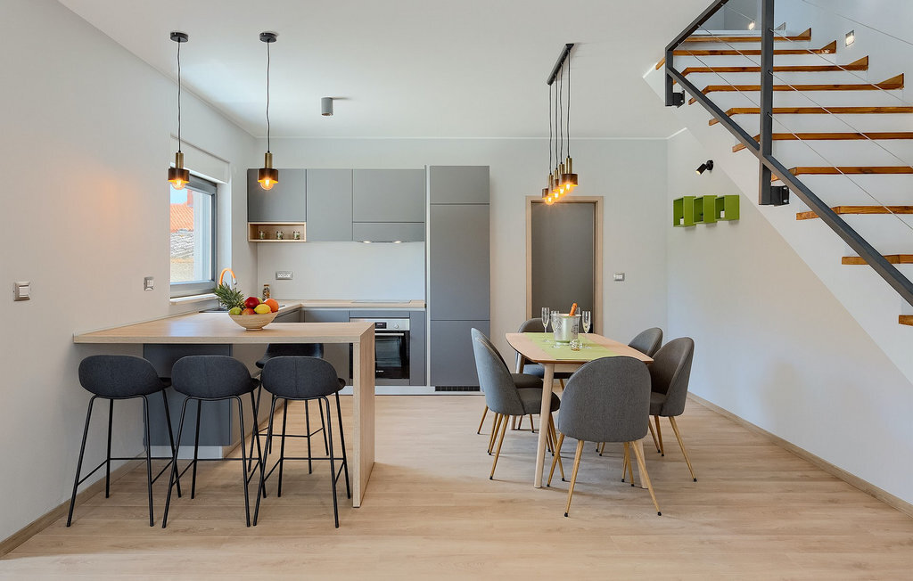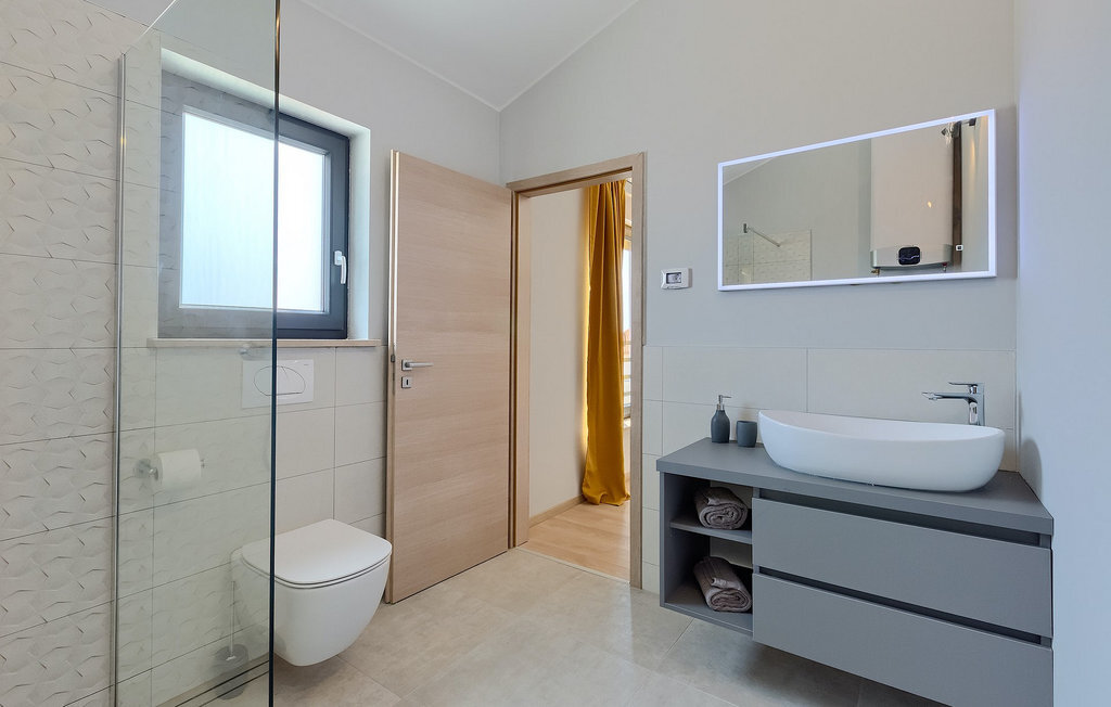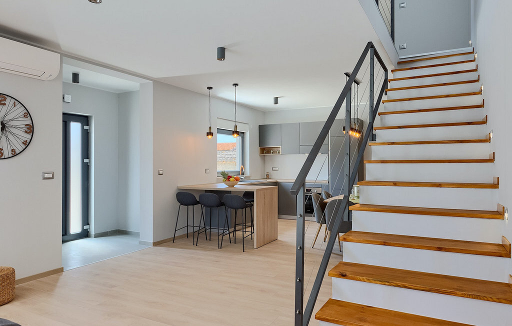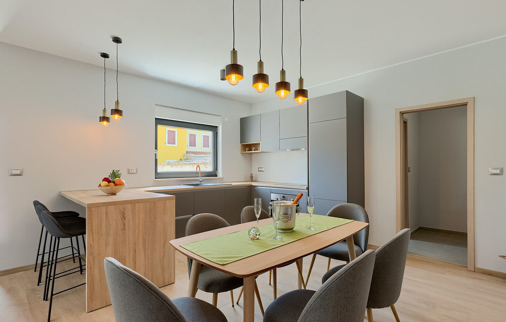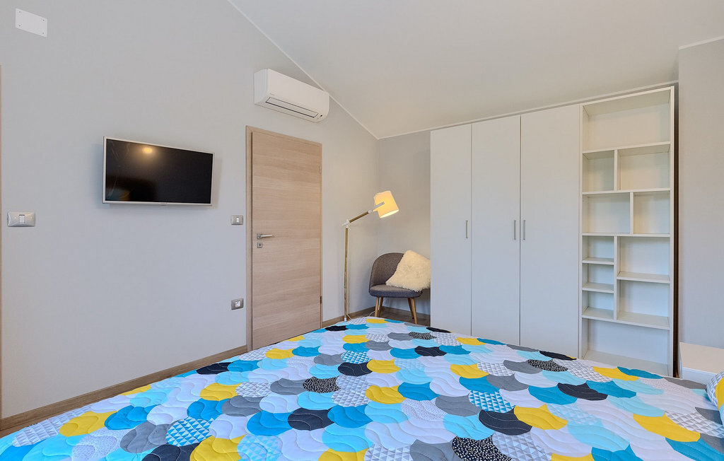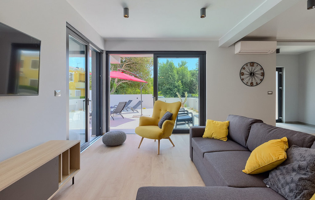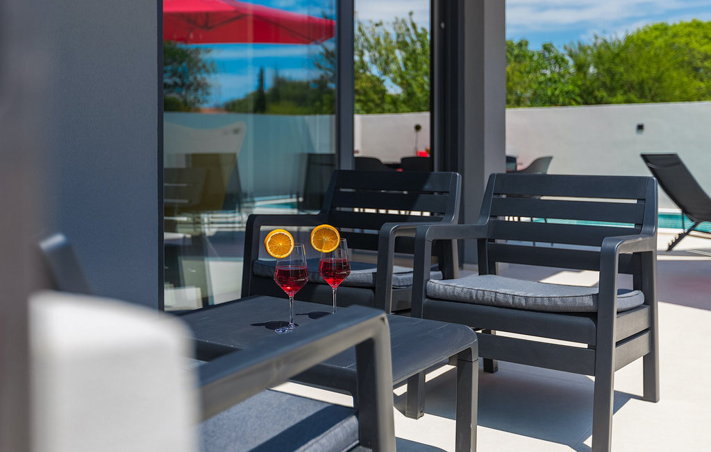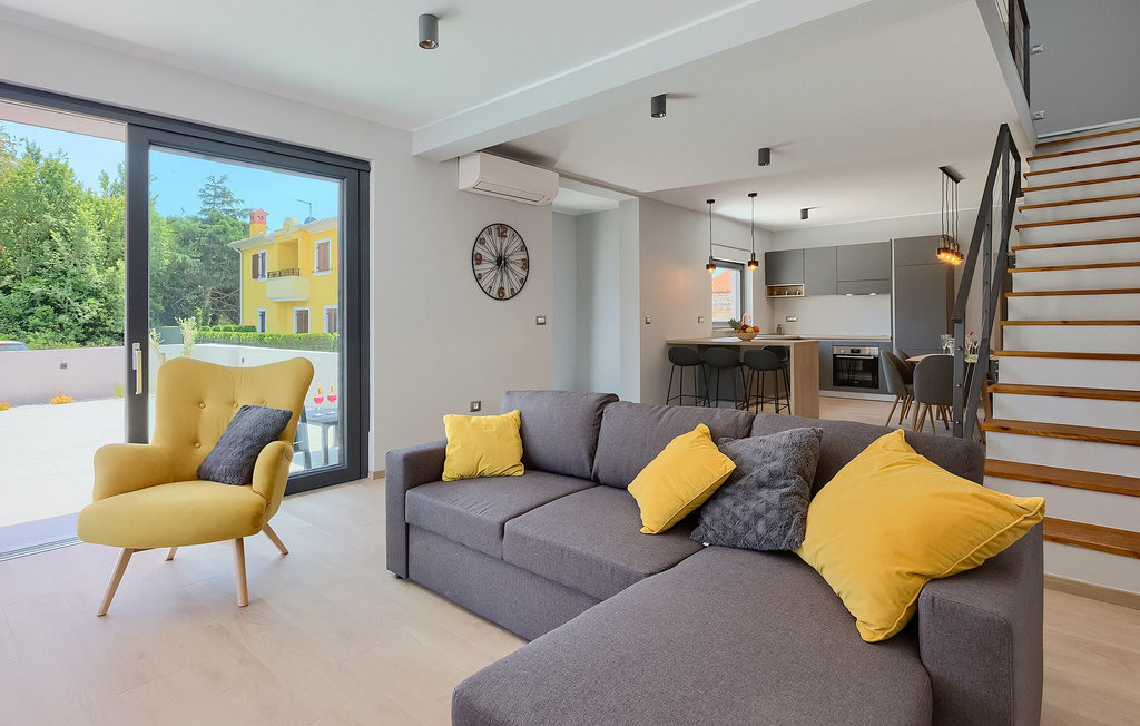 La villa moderne Gabriel se trouve dans le petit village de Banjole, près de Pula. Grâce à son emplacement parfait, les plages, les restaurants et les cafés sont facilement accessibles à pied. Le rez-de-chaussée se compose d'un salon, d'une salle à manger et d'une cuisine ouverts, ainsi que d'une salle de bain. L'ameublement a été choisi dans des couleurs sobres qui ont un effet apaisant, mais vous remarquerez de temps en temps quelques taches de couleur excitantes. La cuisine entièrement équipée offre beaucoup de place pour préparer de délicieuses spécialités et passer ensuite le temps ensemble autour de la table à manger. Pendant que vous vous reposez après le déjeuner, vous pouvez profiter de la vue sur la piscine extérieure privée depuis le salon confortable, ce qui est parfait pour se rafraîchir pendant les chaudes journées d'été. Des chaises longues et un parasol sont à votre disposition autour de la piscine. Depuis le salon, vous accédez à la terrasse sur laquelle se trouvent un coin repas et un barbecue à gaz qui promettent des soirées barbecue inoubliables. Au premier étage de la villa se trouvent deux chambres agréables avec leur propre salle de bain. La villa est entièrement climatisée et un parking privé ainsi qu'un accès à Internet sont également disponibles. Le terrain est entièrement clôturé. La Villa Gabriel, située près de la plage, est le choix parfait pour échapper à votre quotidien et passer des vacances de rêve.La Villa Gabriel est située dans un petit village de vacances à Banjole, à quelques pas de la plage.