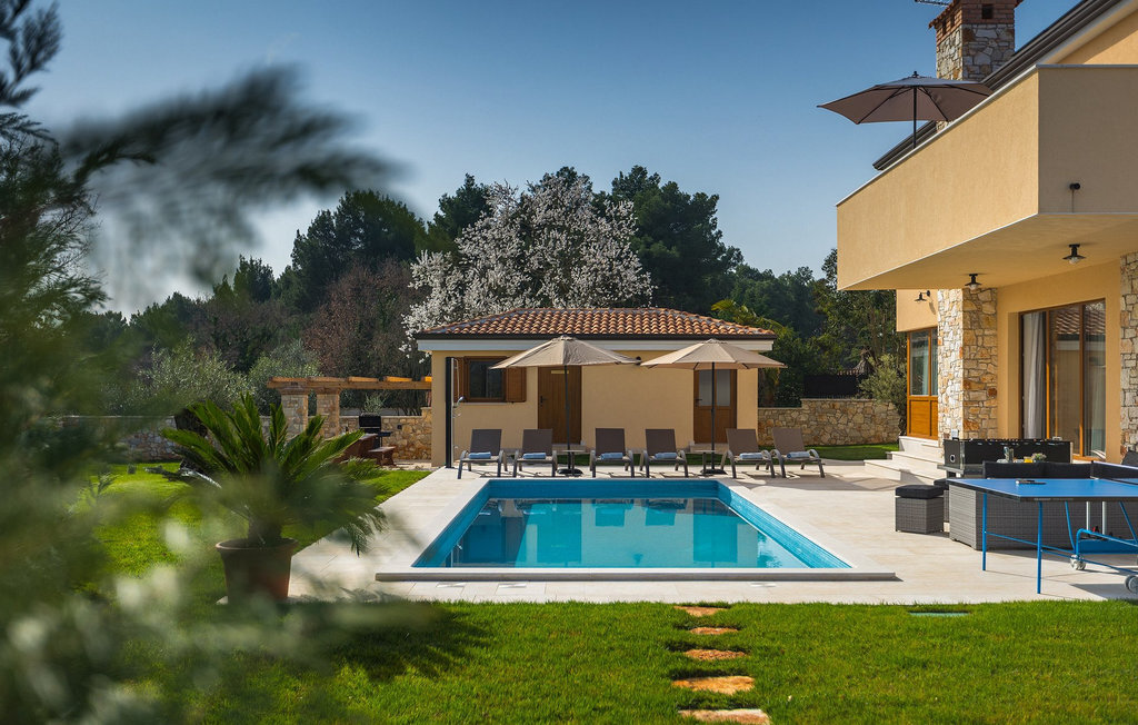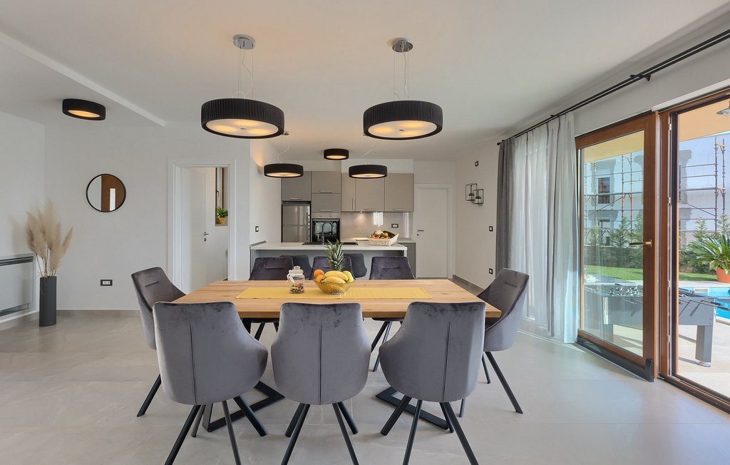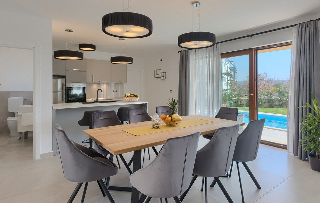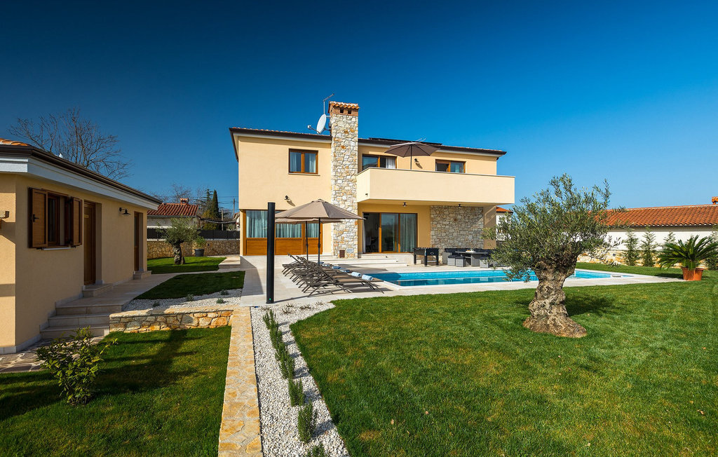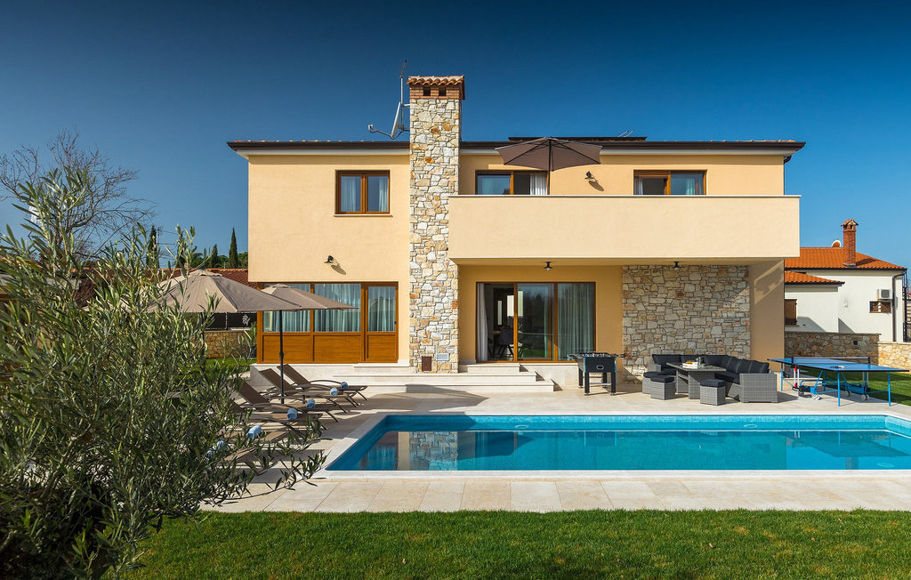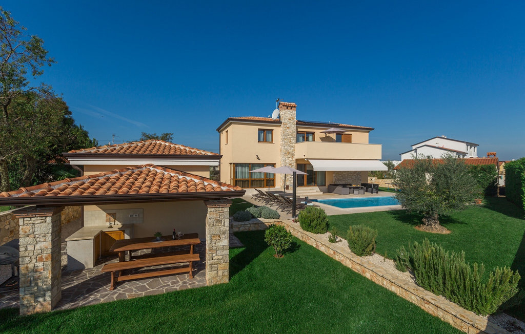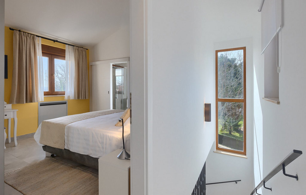 À l'intérieur, vous vous sentirez comme chez vous grâce aux détails d'équipement soigneusement choisis et à l'aménagement confortable. Le rez-de-chaussée a un concept ouvert et se compose d'une cuisine entièrement équipée, d'une salle à manger et d'un salon avec télévision par satellite. Le rez-de-chaussée a également un accès direct à la piscine, ce qui est super pratique. Au premier étage, il y a 3 chambres : une avec une salle de bain privée et 2 chambres qui partagent une autre salle de bain. Ici, il y a aussi 2 terrasses, dont une est couverte. Savourez votre premier café de la journée sur la terrasse avec une belle vue sur les environs - vous ne le regretterez pas.Tar est une charmante petite ville près de Novigrad sur la côte ouest de l'Istrie. Son emplacement vous permet d'aller à la plage sans faire un long trajet chaque jour, mais si vous aimeriez rester chez vous, Tar a tout ce dont vous pourriez avoir besoin en vacances - restaurants, magasins et la tranquillité d'une petite ville traditionnelle d'Istrie. Ici, vous pouvez profiter pleinement de la nature. Promenez-vous dans les oliveraies, visitez les caves à vin locales et goûtez au moins quelques produits locaux. Si vous aimez la pêche, vous apprendrez quelque chose de nouveau ici, car à Tar, l'eau douce se mélange à l'eau de mer et les poissons sont pêchés d'une manière particulière.